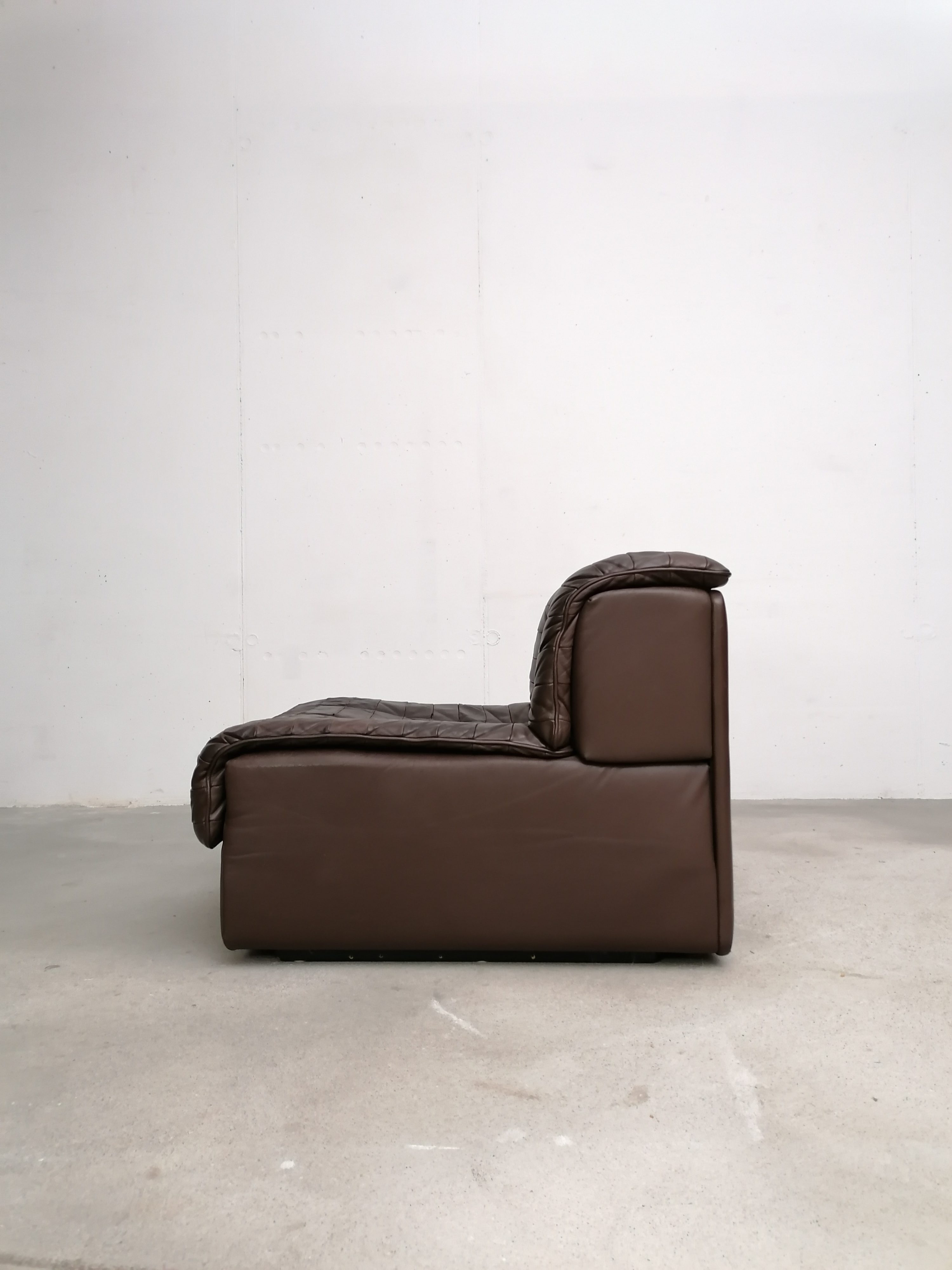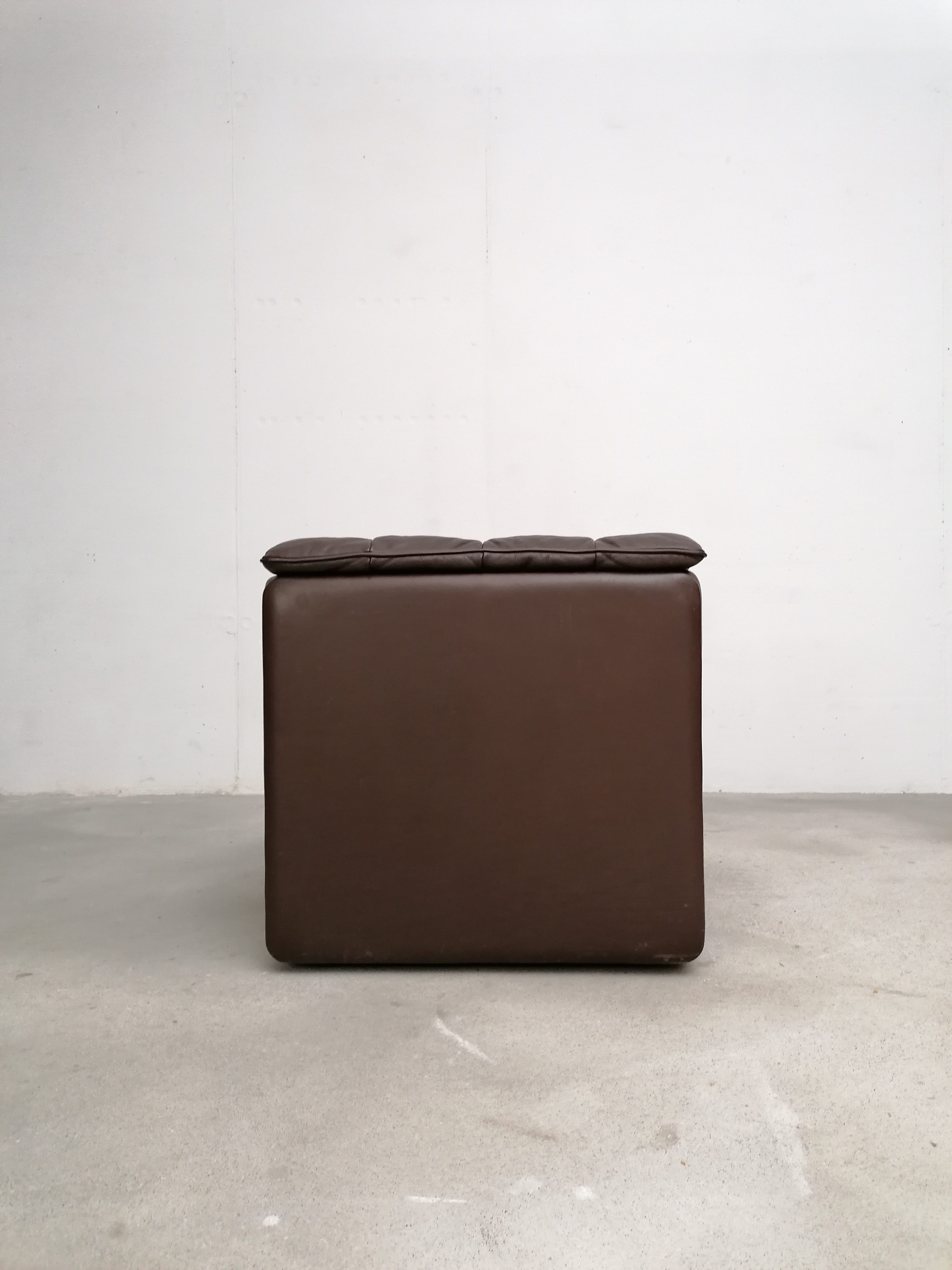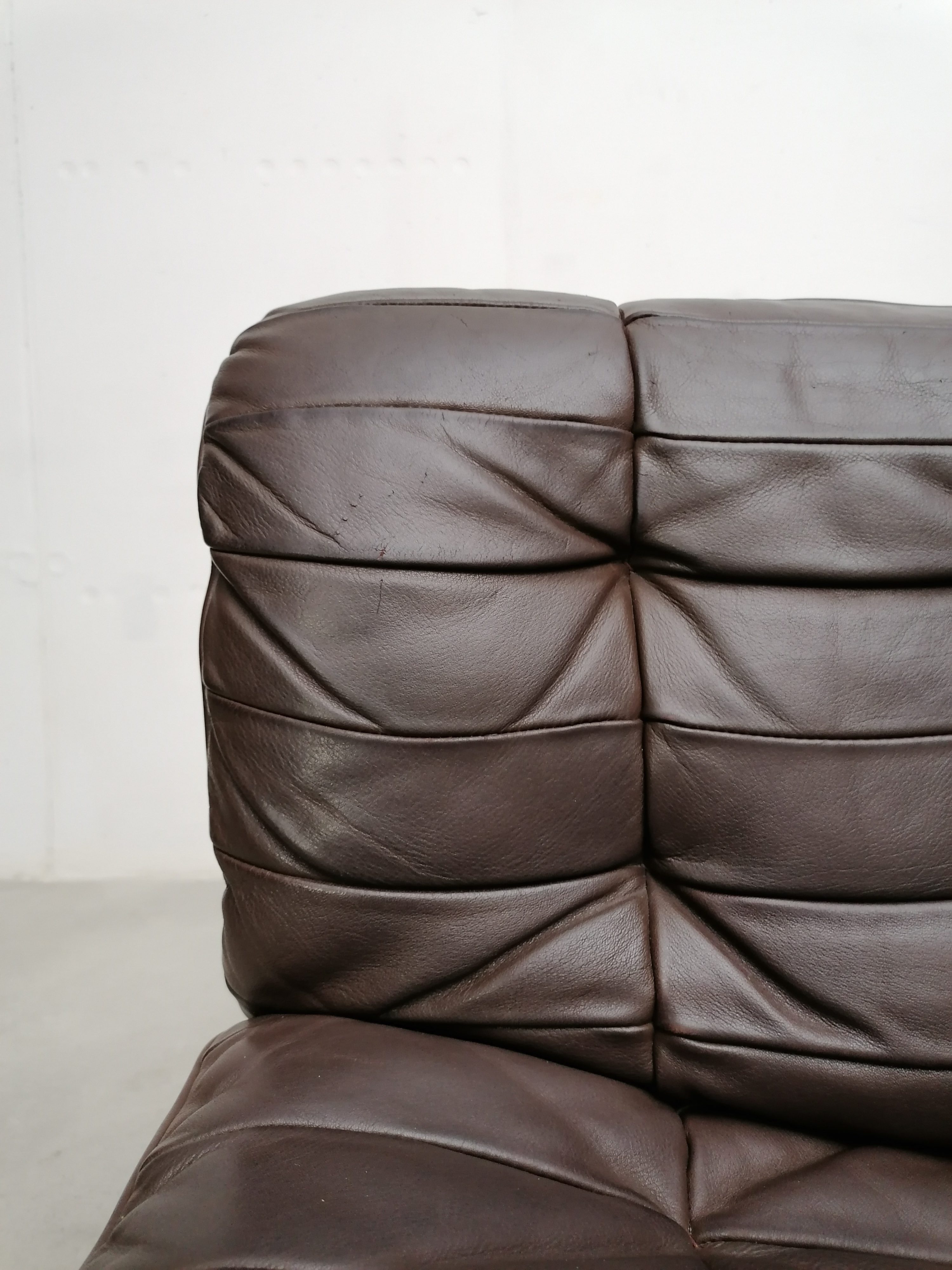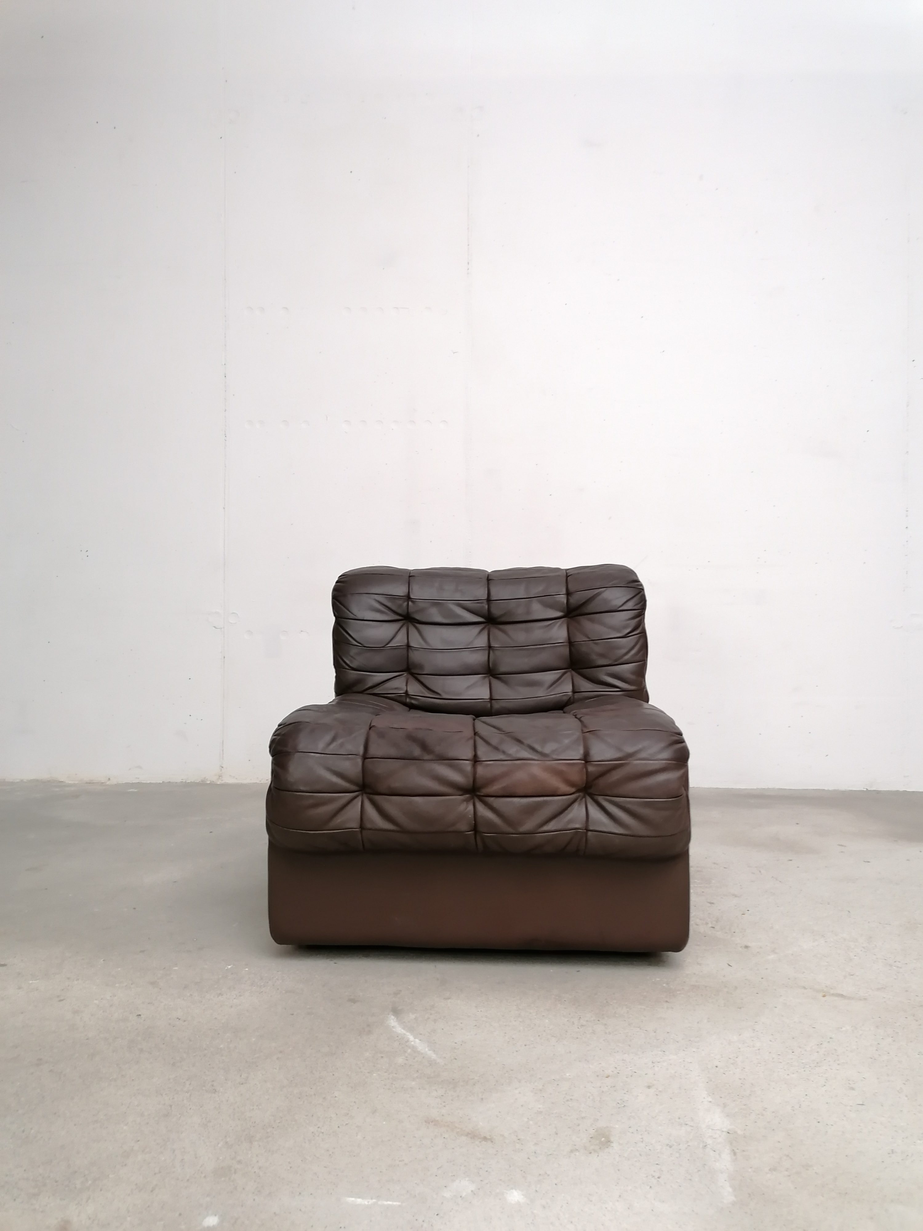 Produit venduFauteuil vintage De Sede, modèle DS11 en cuir marron. Quelques traces d’usure et des très petites déchirures visibles sur les photos. Le cuir a une très belle patine vintage, l’assise toujours confortable. Hauteur de l’assise: 36 cm.