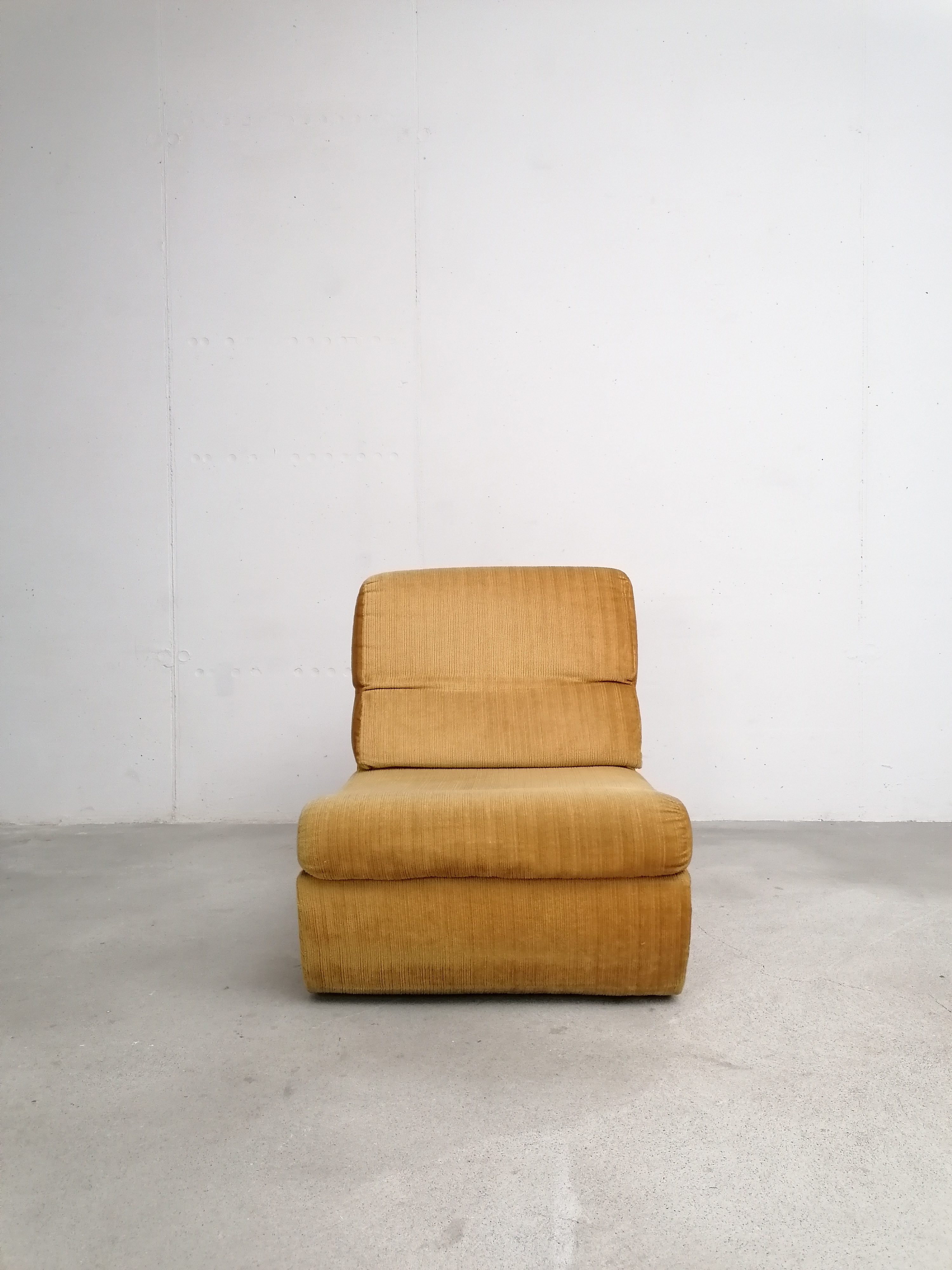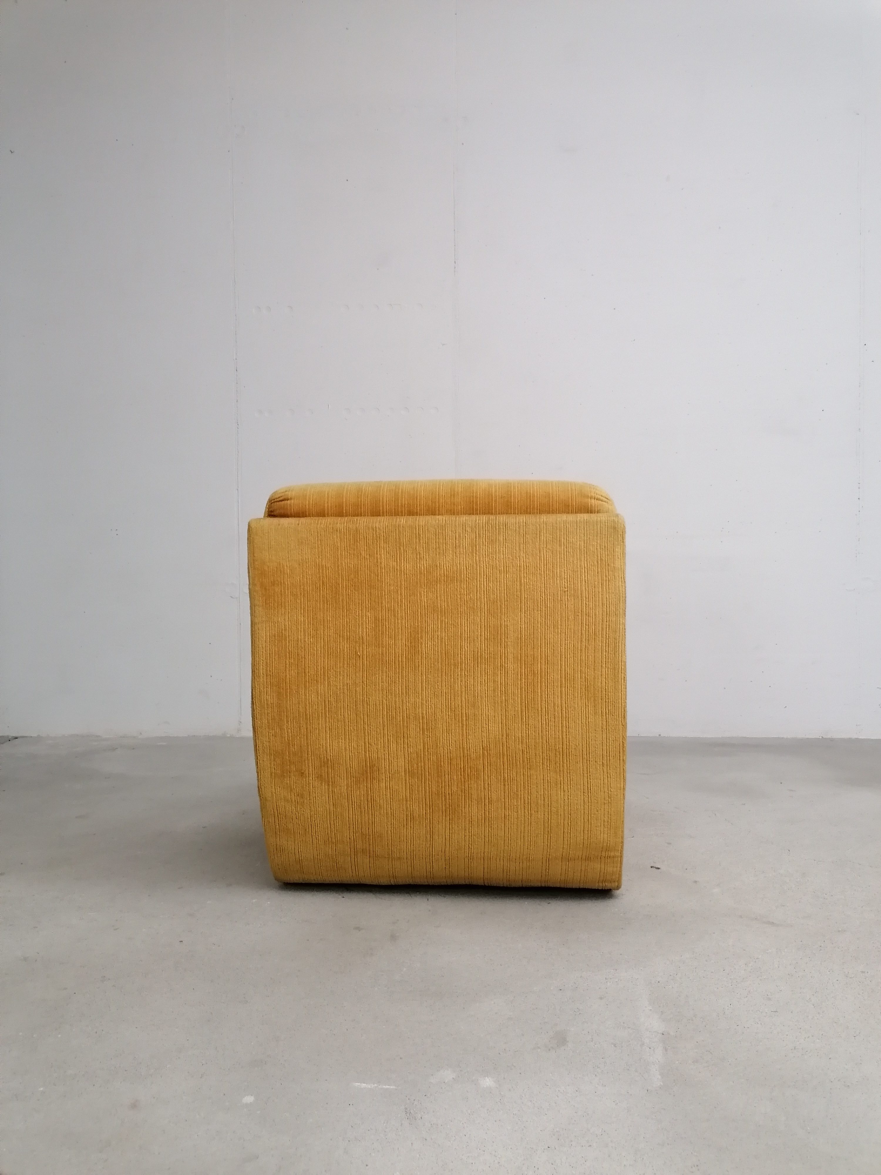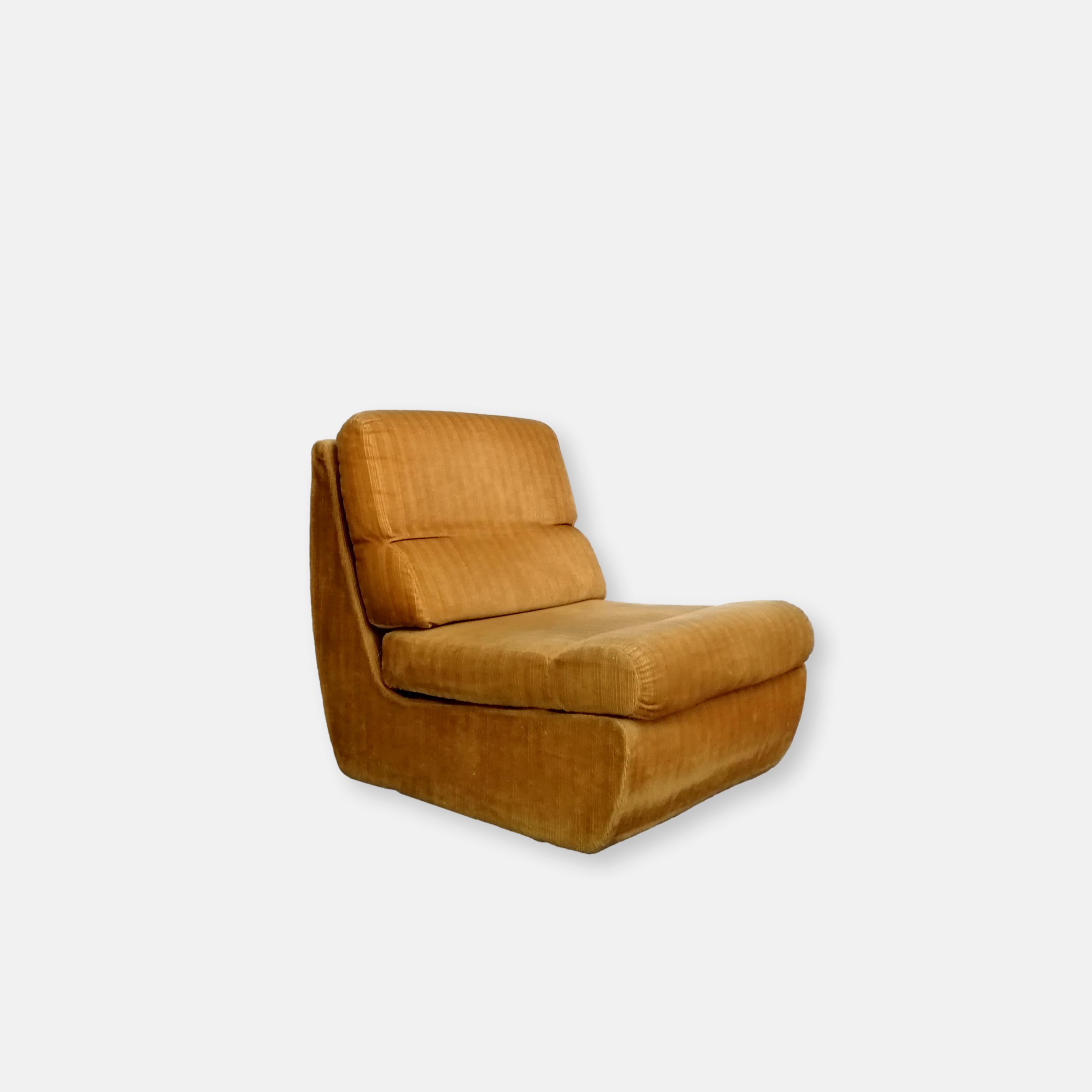 Produit venduFauteuil des années 60 en tissu avec roulettes. L’assise et le dossier sont déhoussables. Quelques légères traces d’usure (voir photos). Hauteur de l’assise: 36 cm