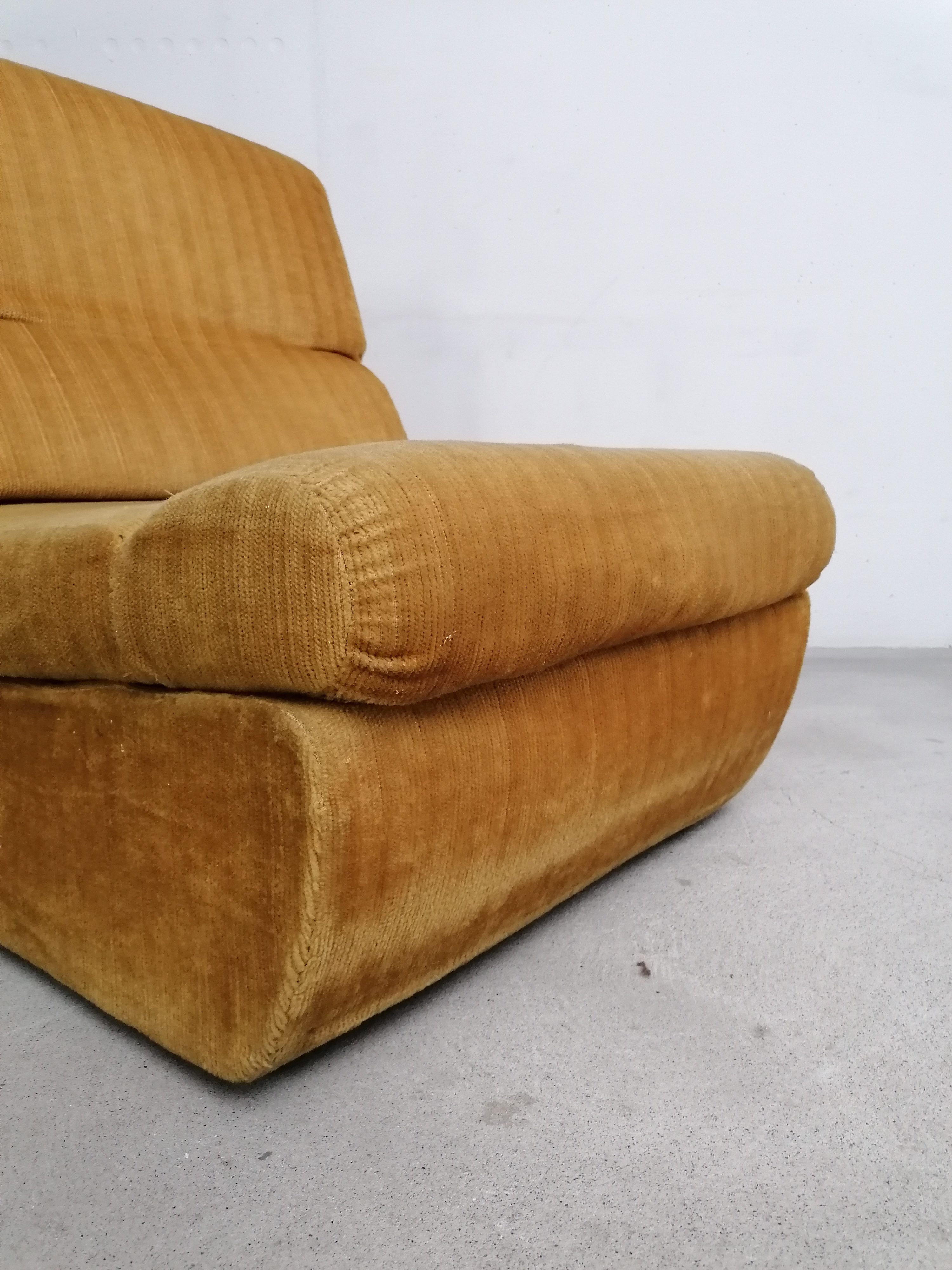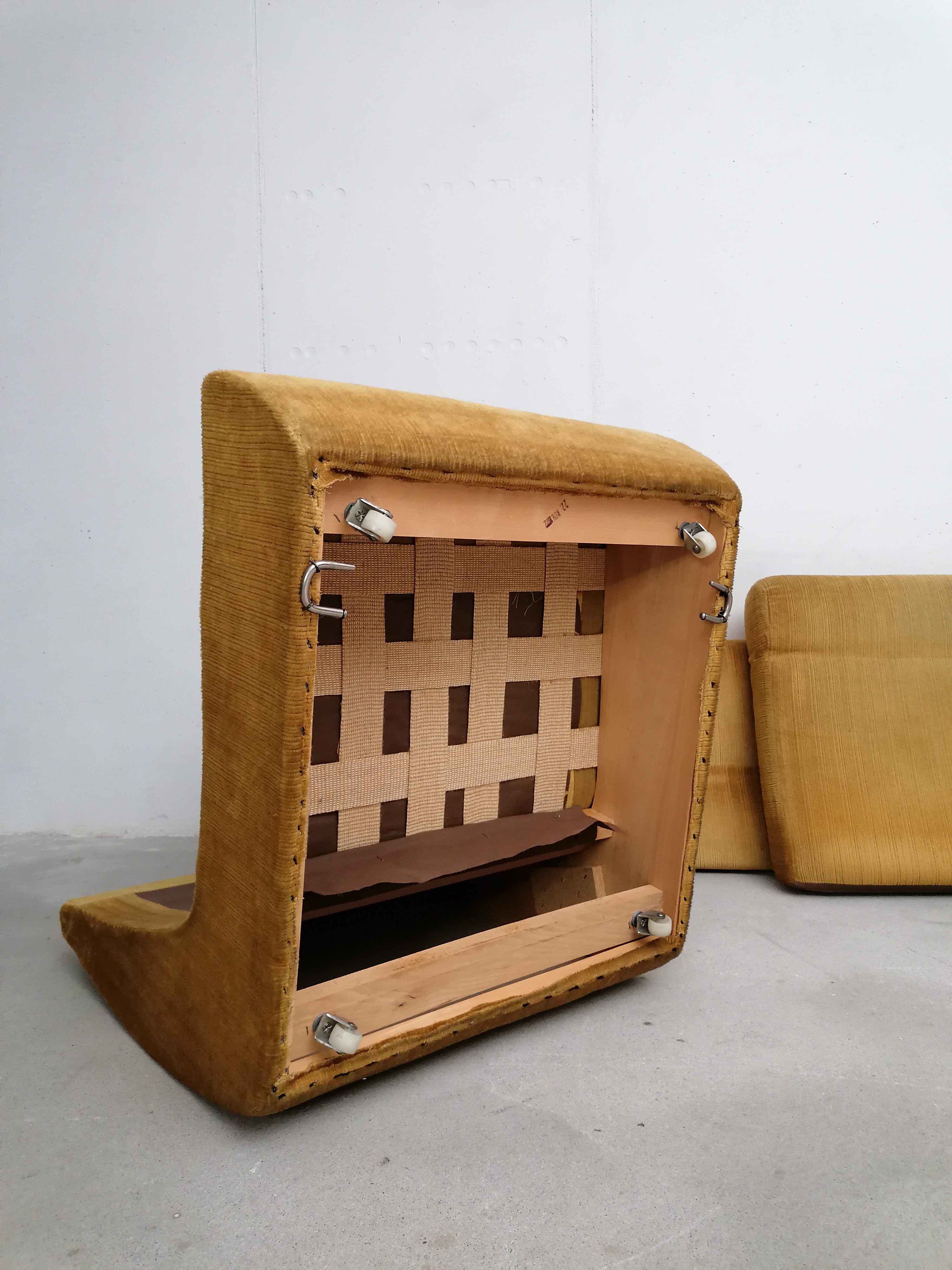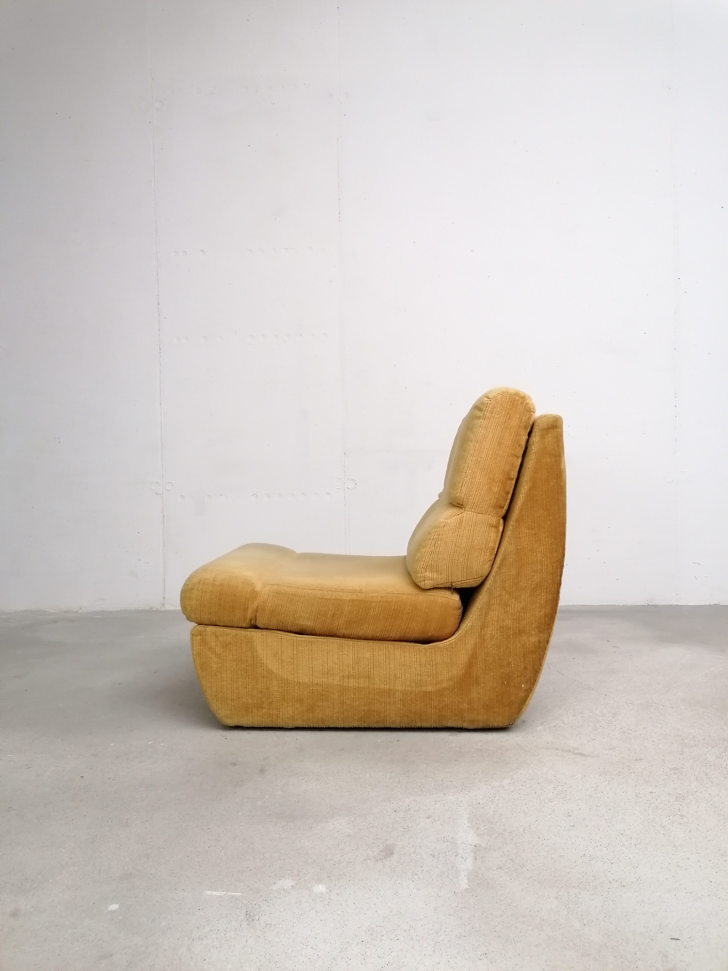 Produit venduFauteuil des années 60 en tissu avec roulettes. L’assise et le dossier sont déhoussables. Quelques légères traces d’usure (voir photos). Hauteur de l’assise: 36 cm