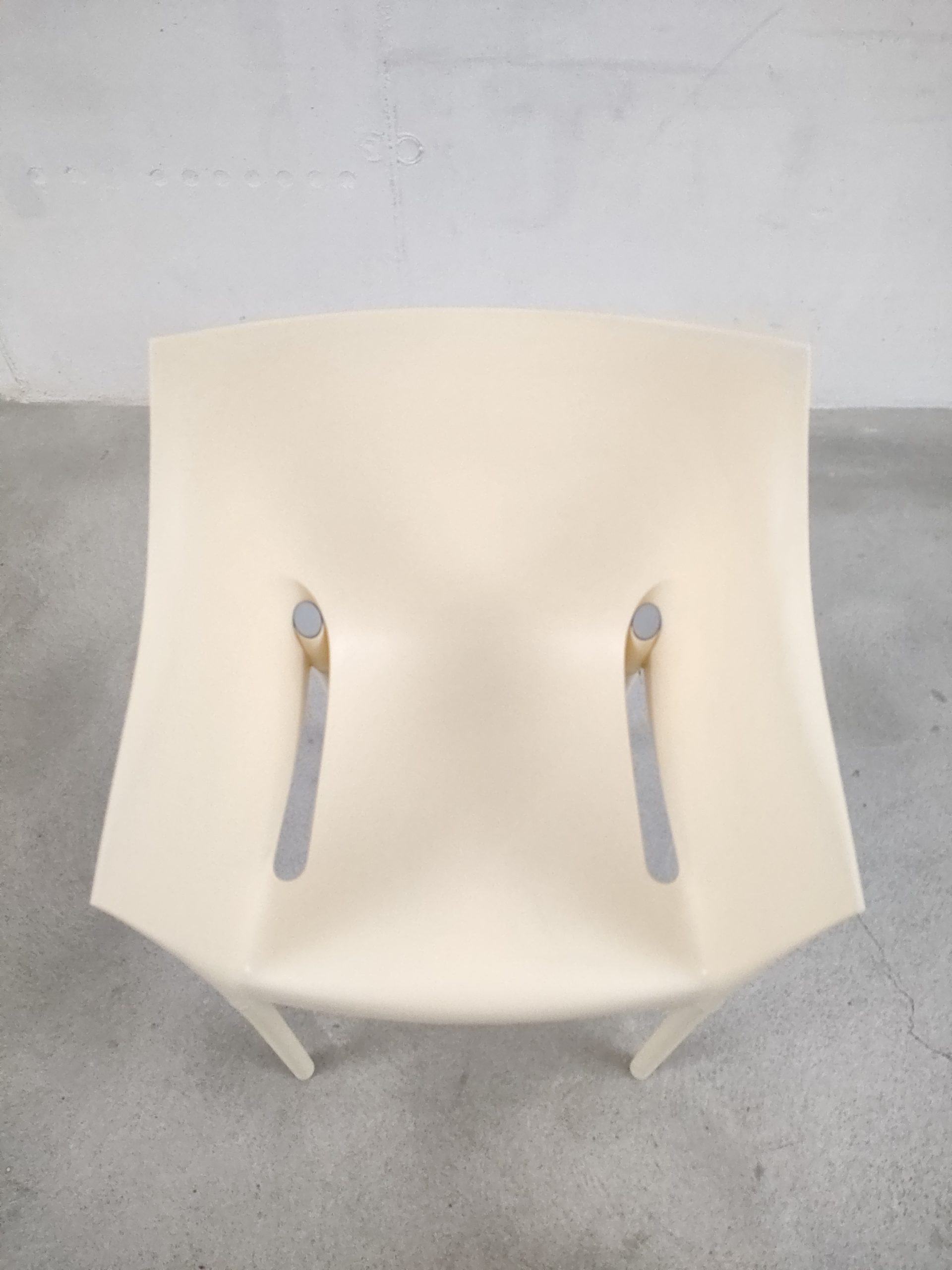 Produit venduFauteuil modèle Dr. No conçu par le designer Philippe Starck pour Kartell. Piètement en aluminium et assise en Polypropylène. Quelques traces d’usure sur les pieds (voir photos). Parfaitement stable et solide et très élégant.
