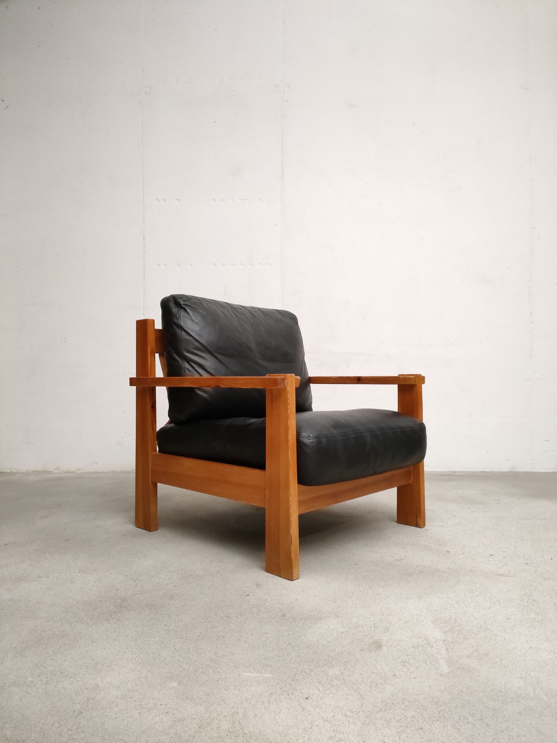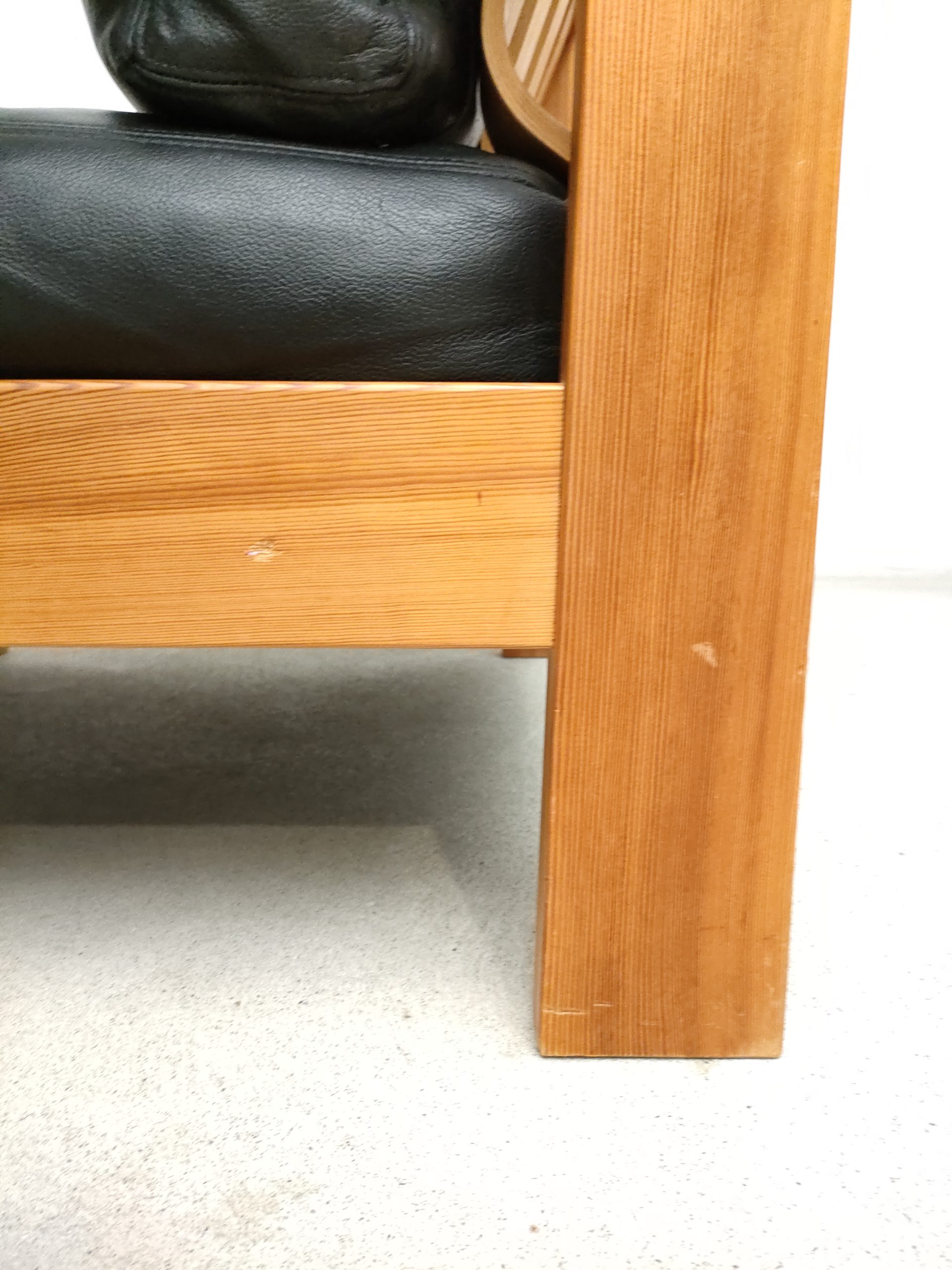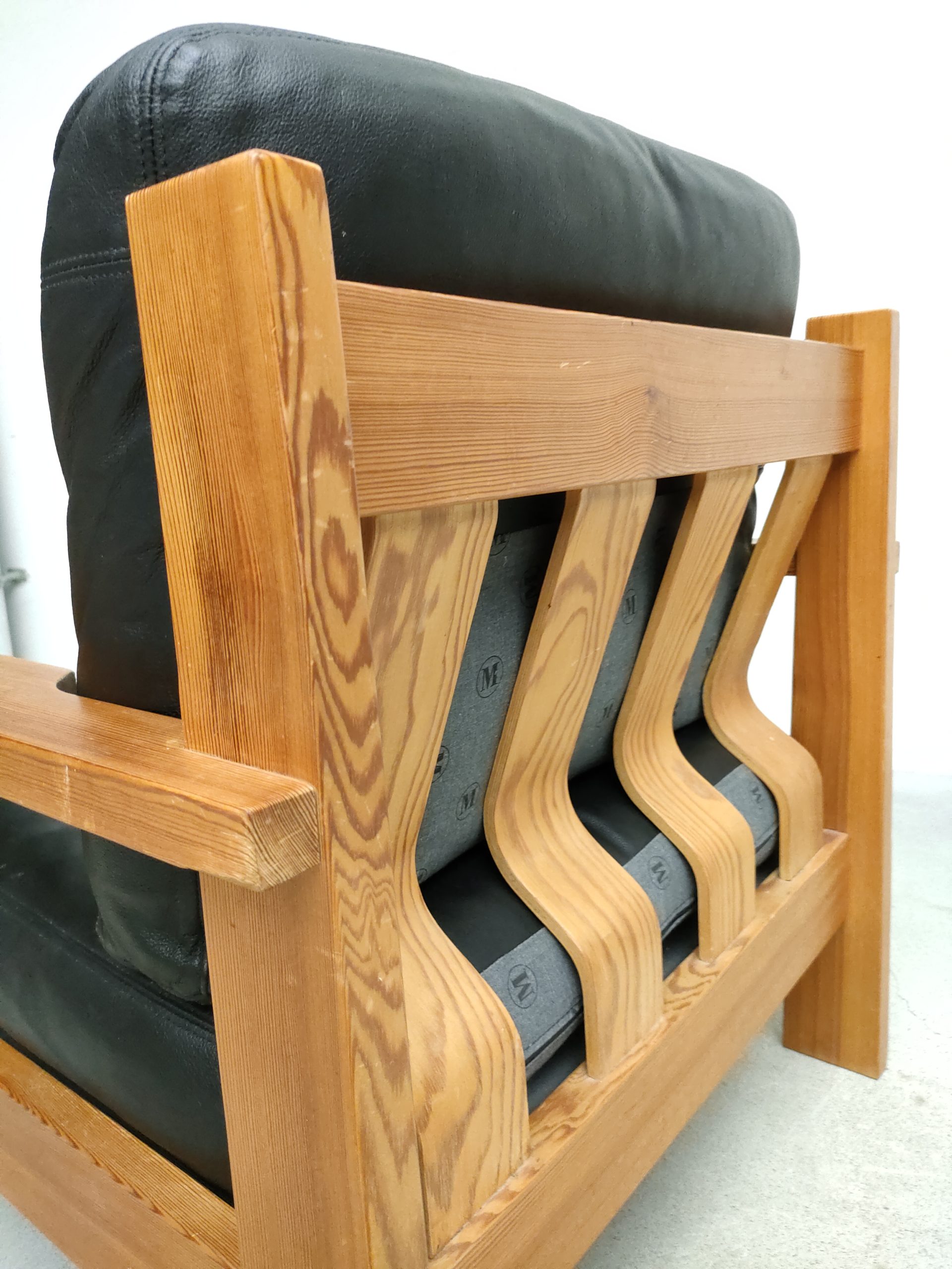 Produit venduFauteuil vintage avec structure en bois et assise et dossier en cuir. Des traces d’usure et des réparations sont présentes sur la structure en bois. Le fauteuil est stable et solide et parfaitement fonctionnel. Le cuir ainsi que la mousse à l’intérieur sont en bon état. La posture du fauteuil est plutôt rigide et ne permet pas un confort extraordinaire. Hauteur de l’assise: 42 cm.