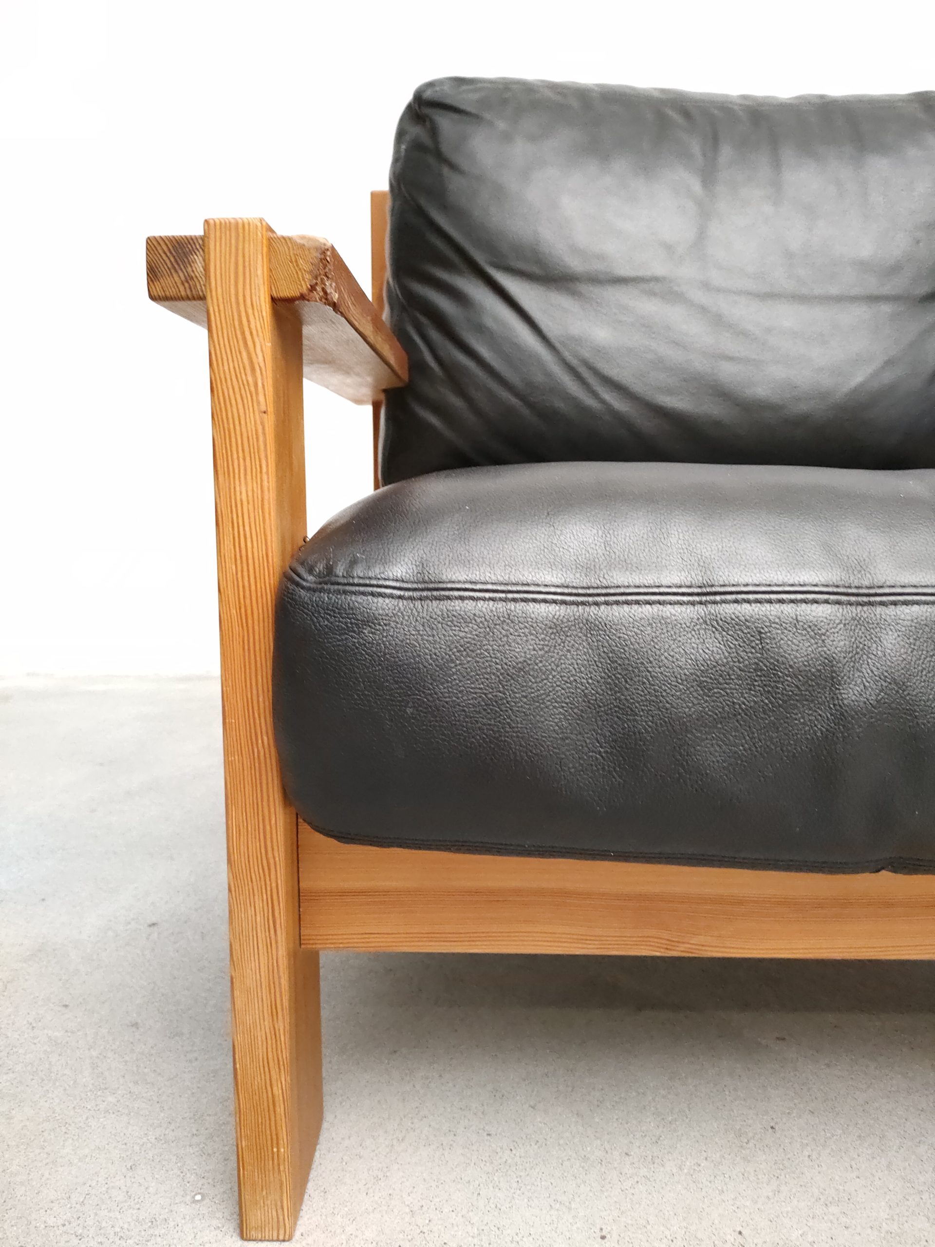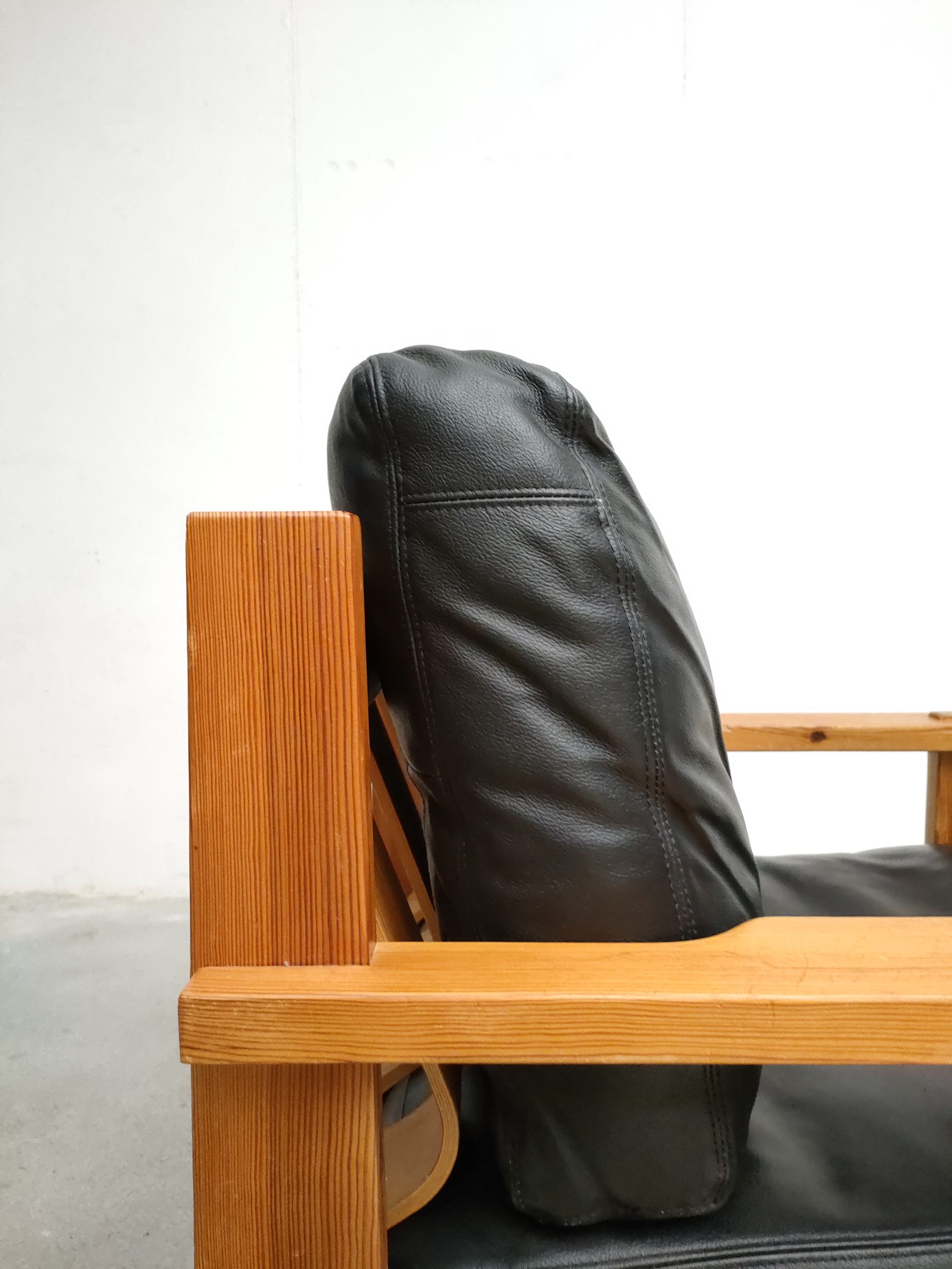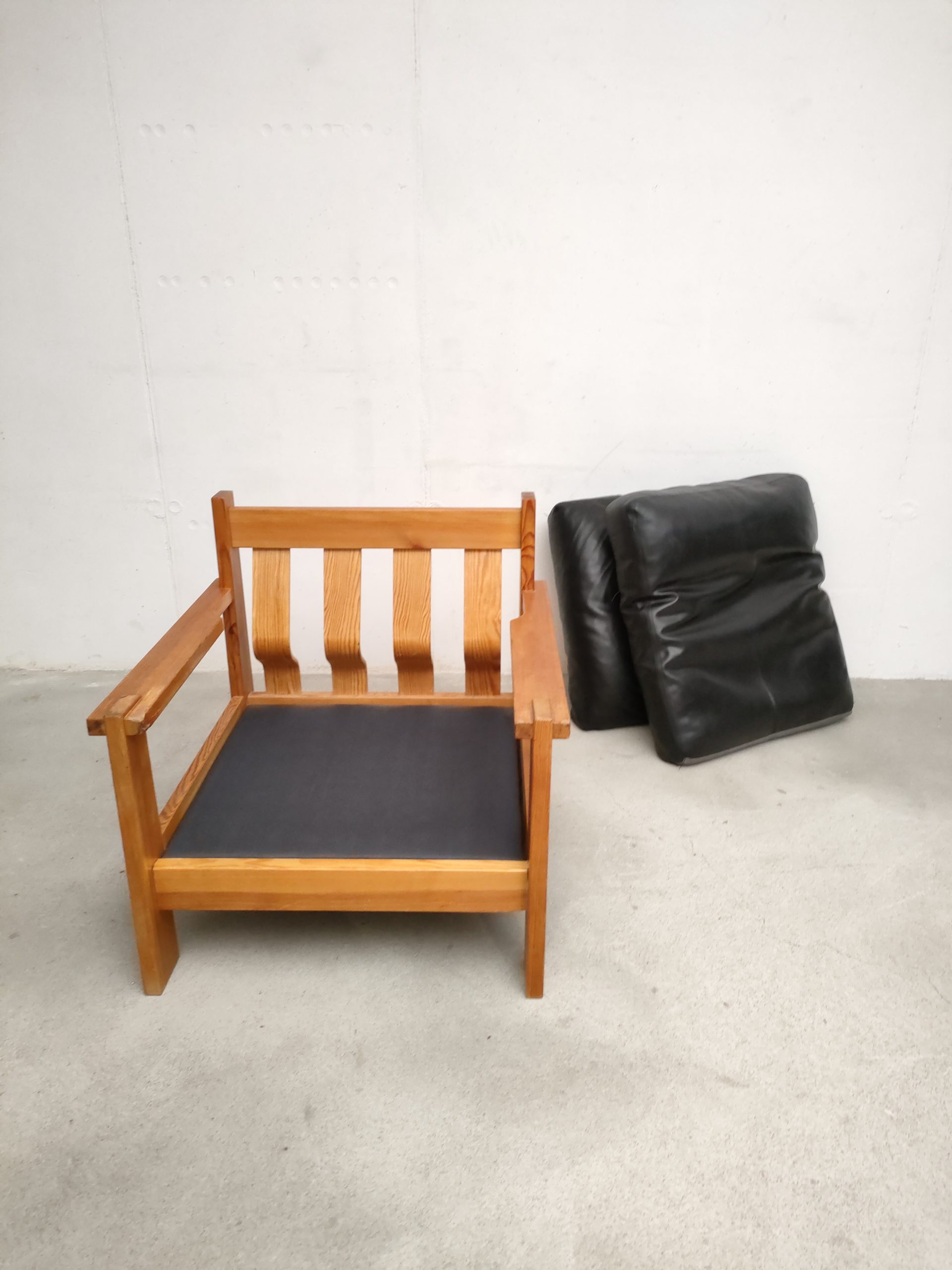 Produit venduFauteuil vintage avec structure en bois et assise et dossier en cuir. Des traces d’usure et des réparations sont présentes sur la structure en bois. Le fauteuil est stable et solide et parfaitement fonctionnel. Le cuir ainsi que la mousse à l’intérieur sont en bon état. La posture du fauteuil est plutôt rigide et ne permet pas un confort extraordinaire. Hauteur de l’assise: 42 cm.