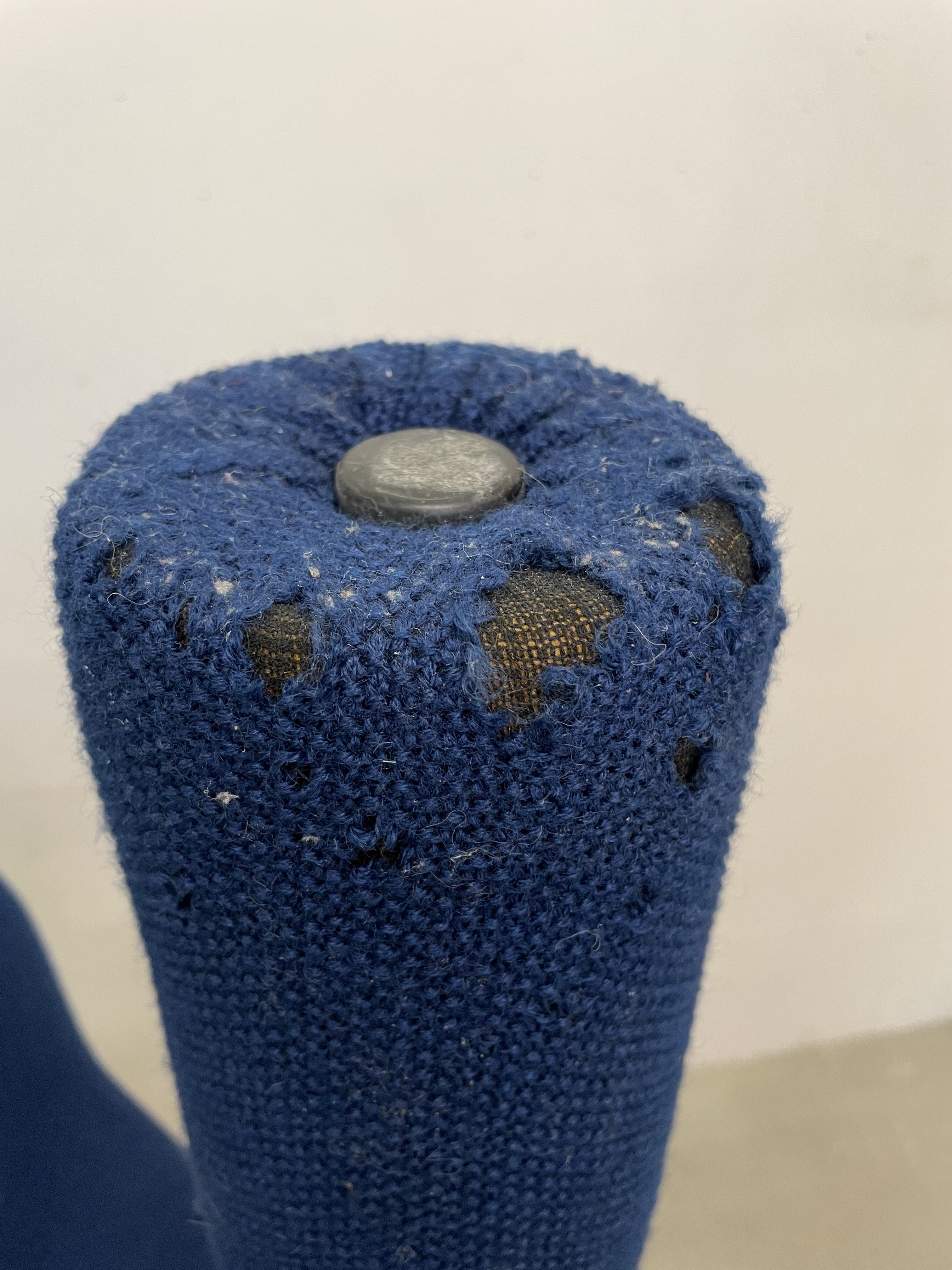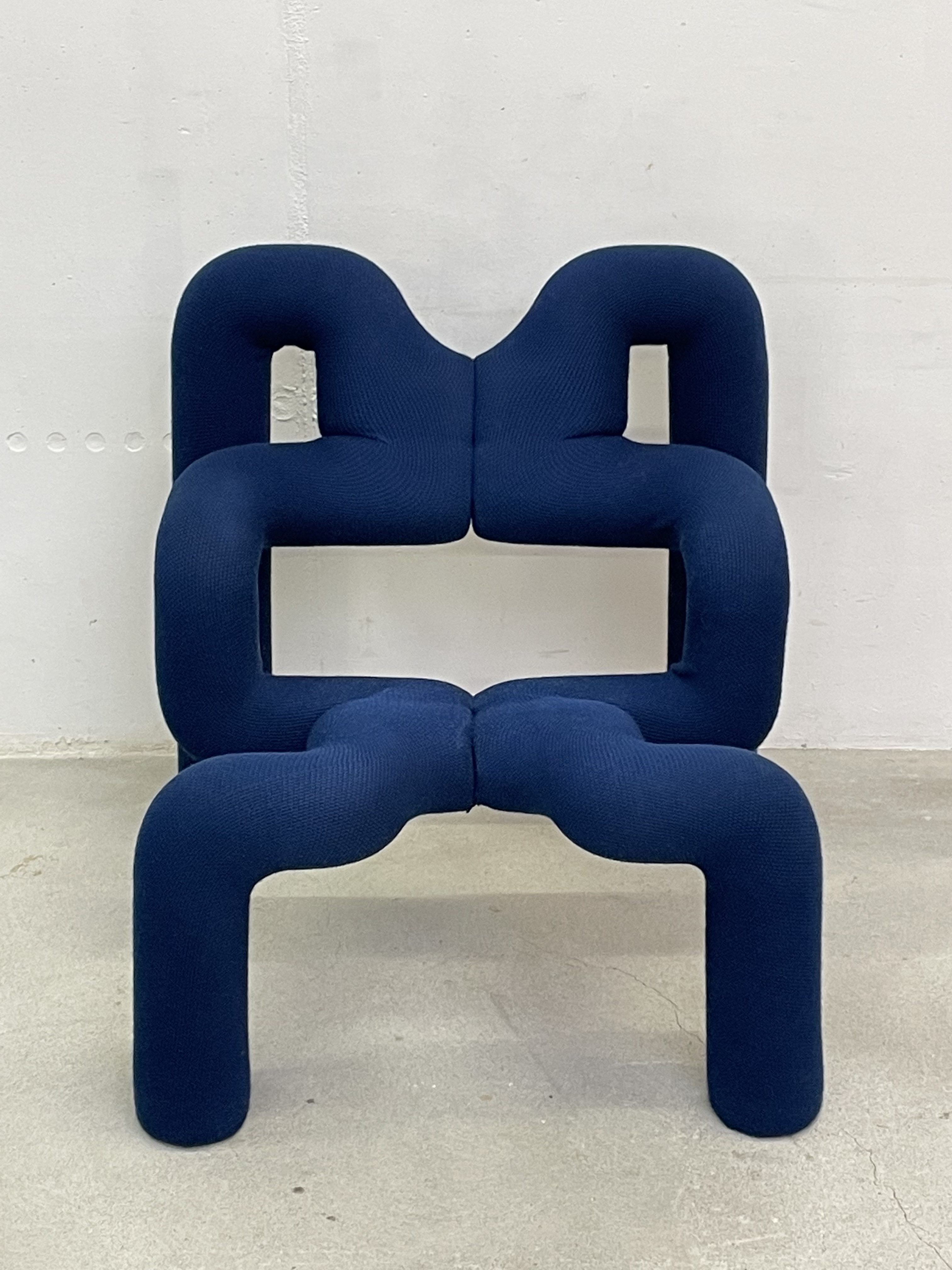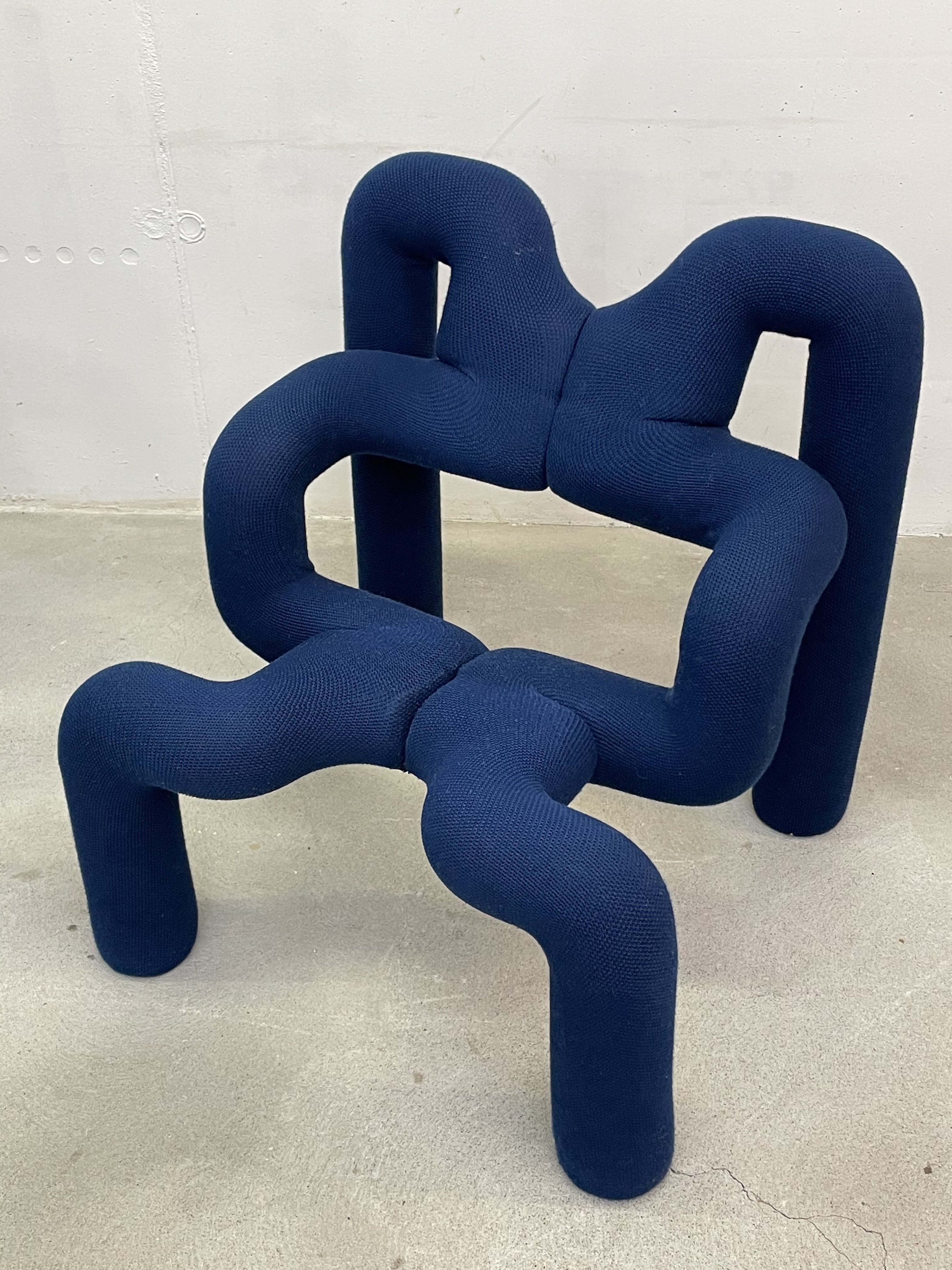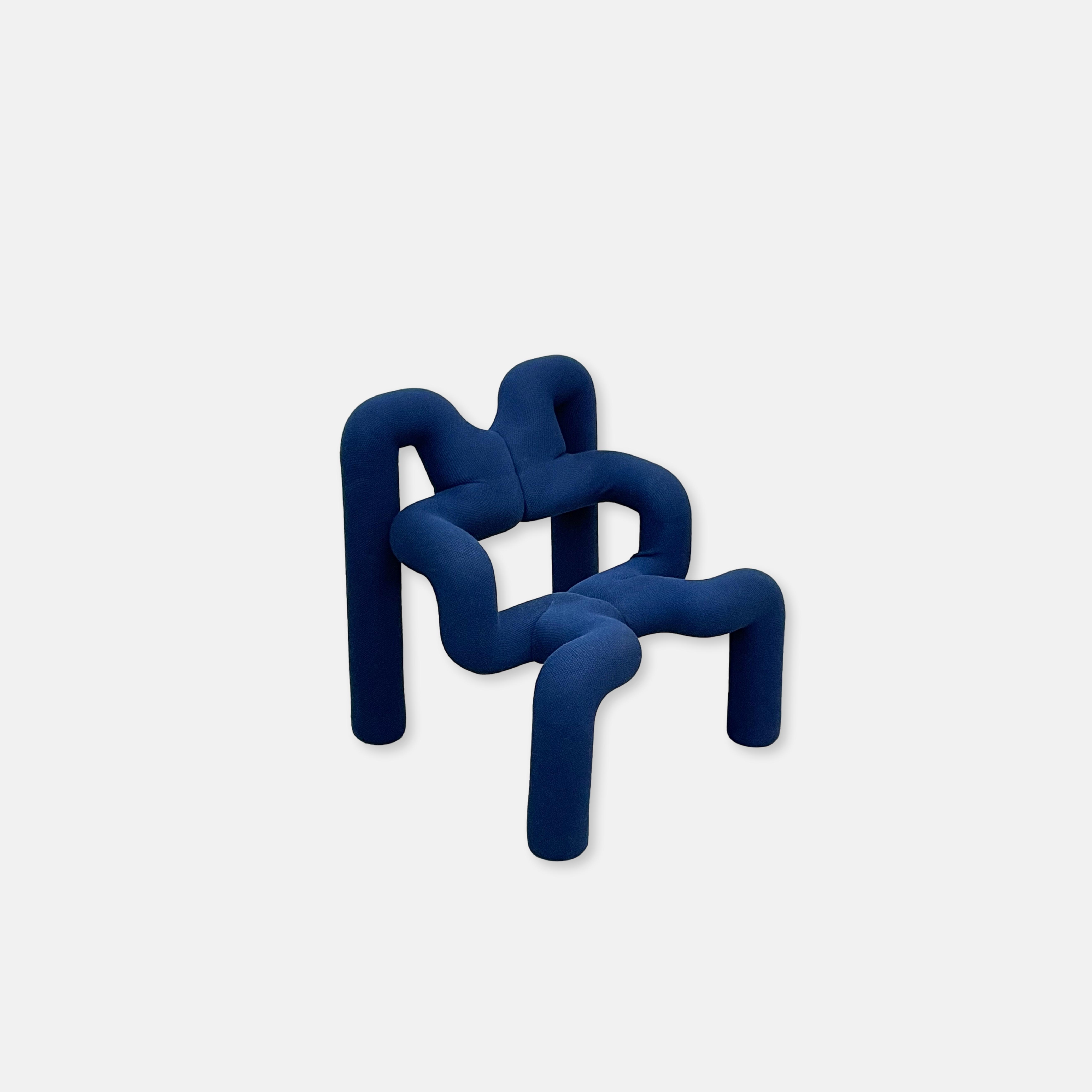 Produit venduFauteuil dessiné en 1984 par Terje Ekstrom pour Stokke. La structure est entièrement recouverte de mousse (en bon état) entourée d’un tricot élastique bleu.