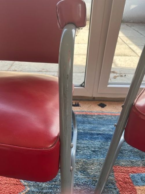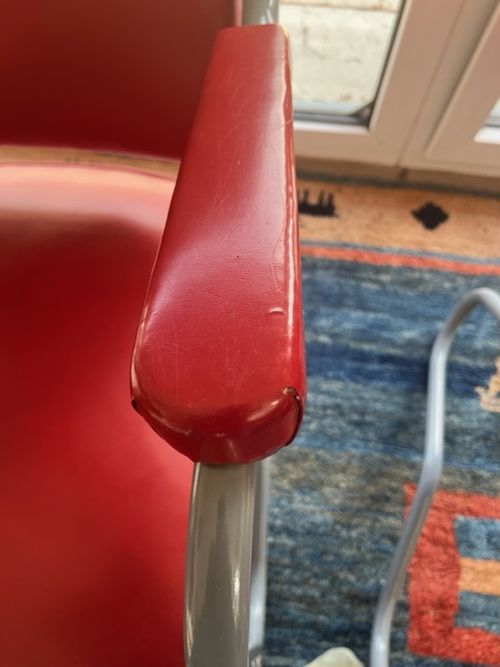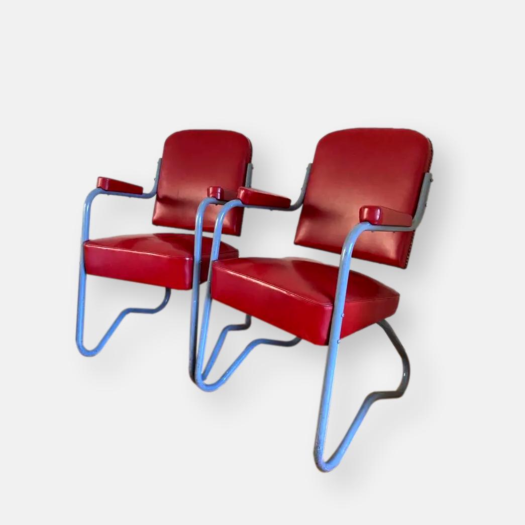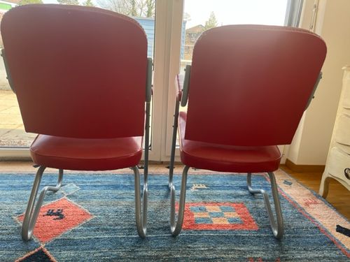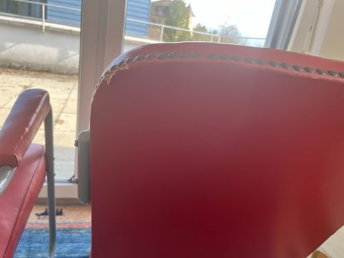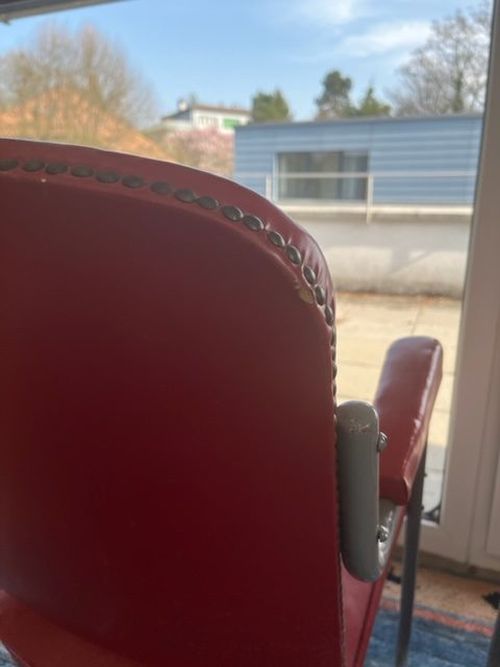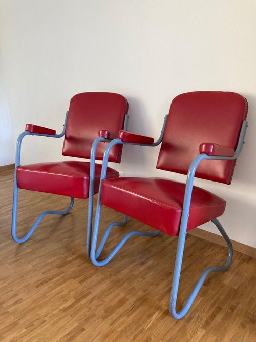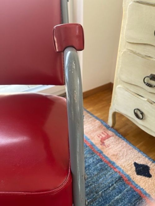 Produit venduCette paire de fauteuils en skaï rouge et tube laqué gris, date des années 60. Ils sont en très bon état. Des traces d’usure conformes à l’âge (cf photos). L’assise est en excellent état. Ils ont été très peu utilisés car restés dans une chambre.