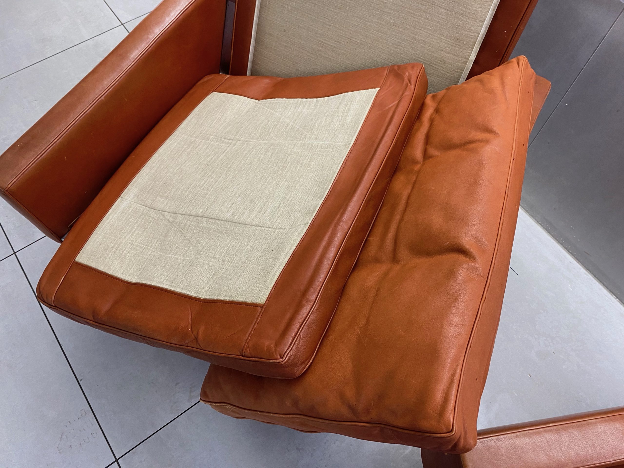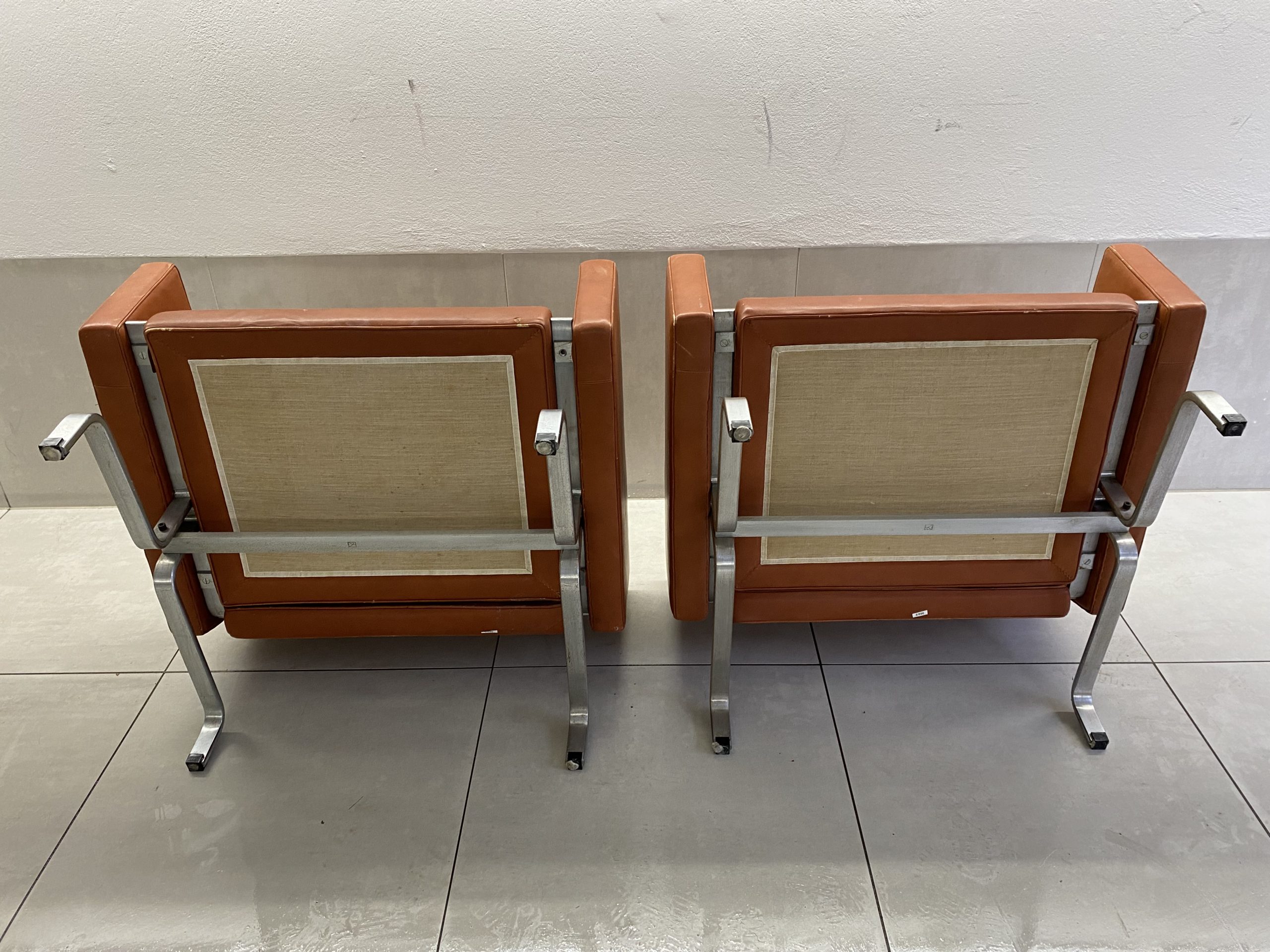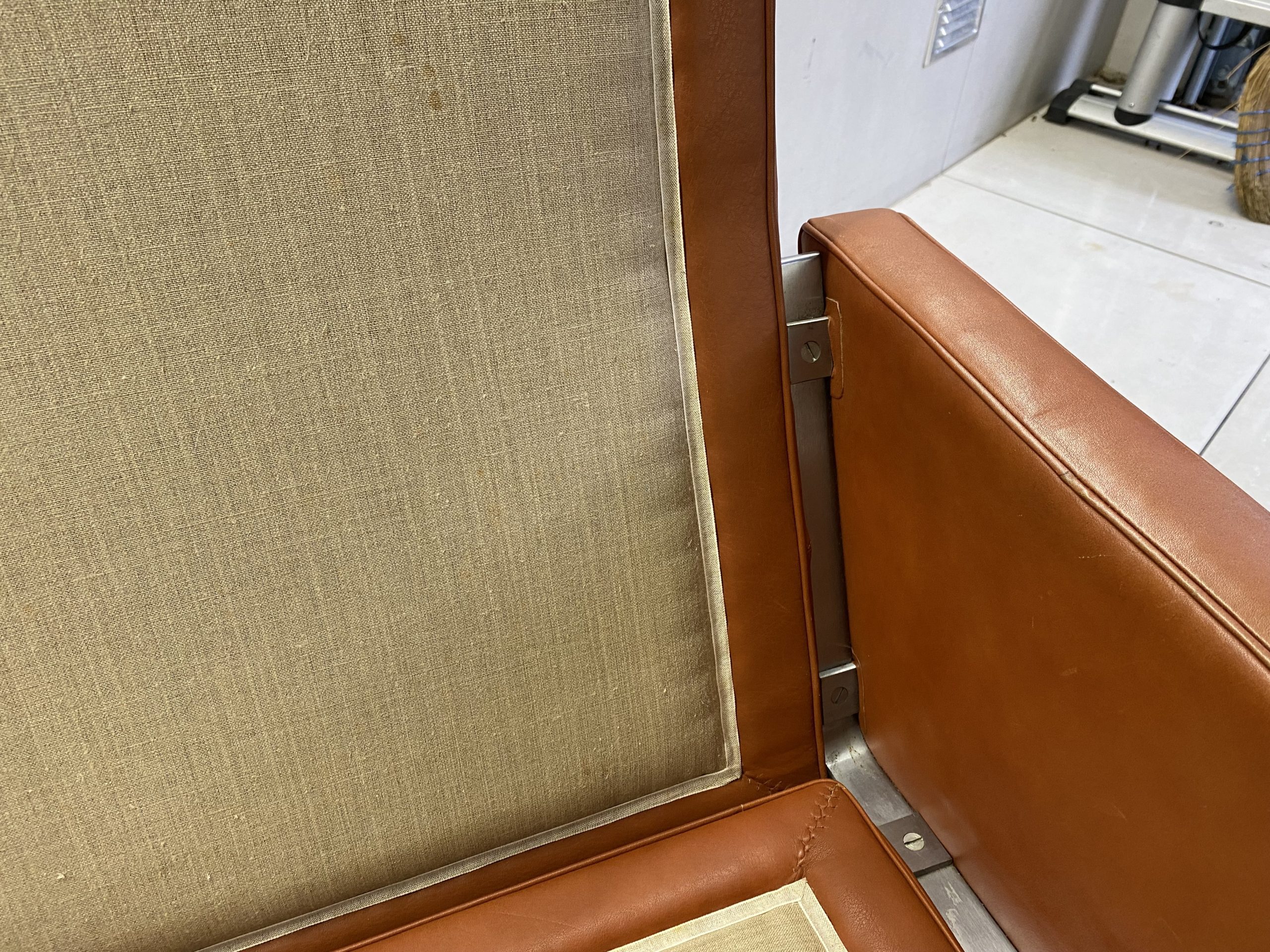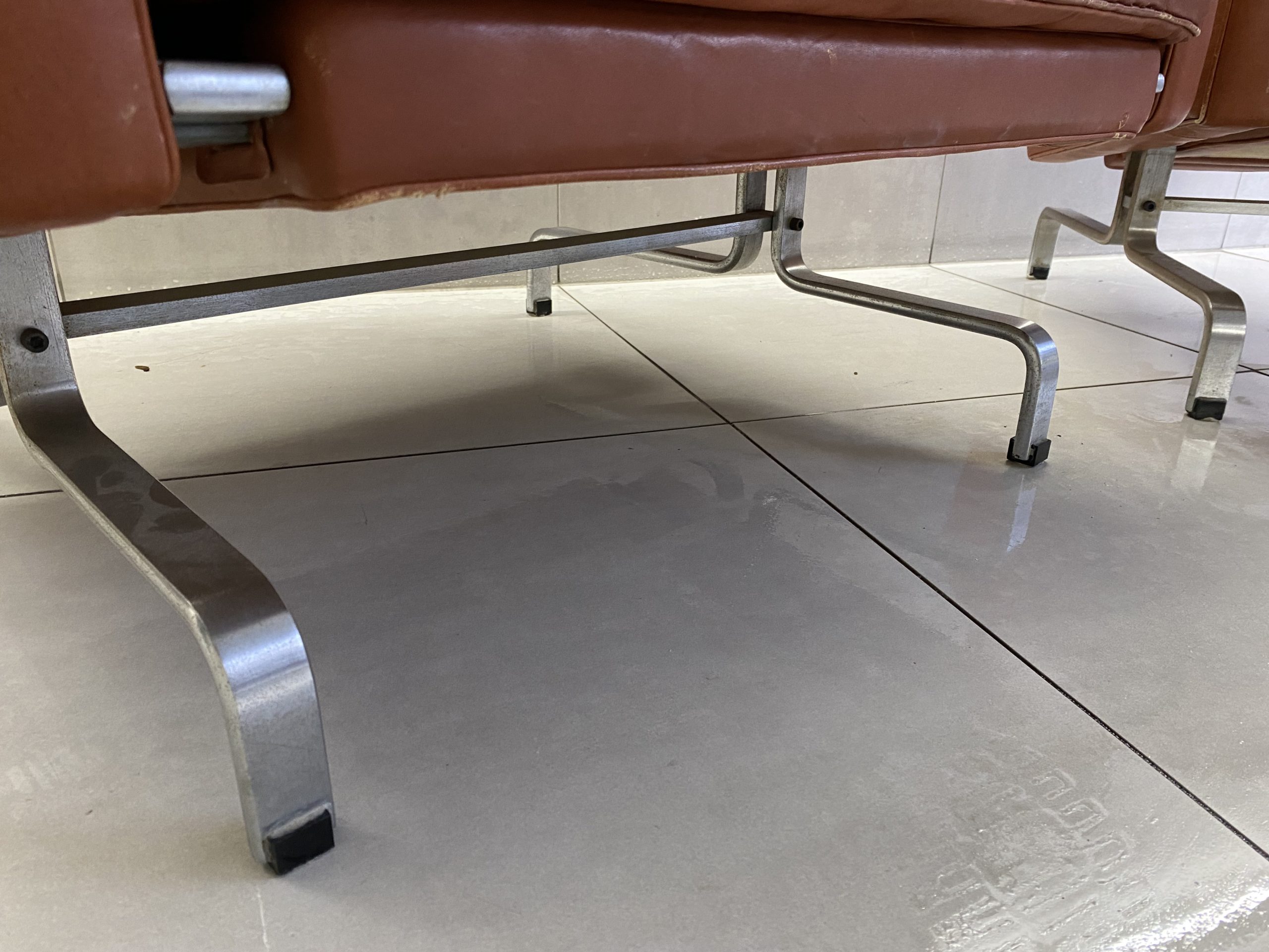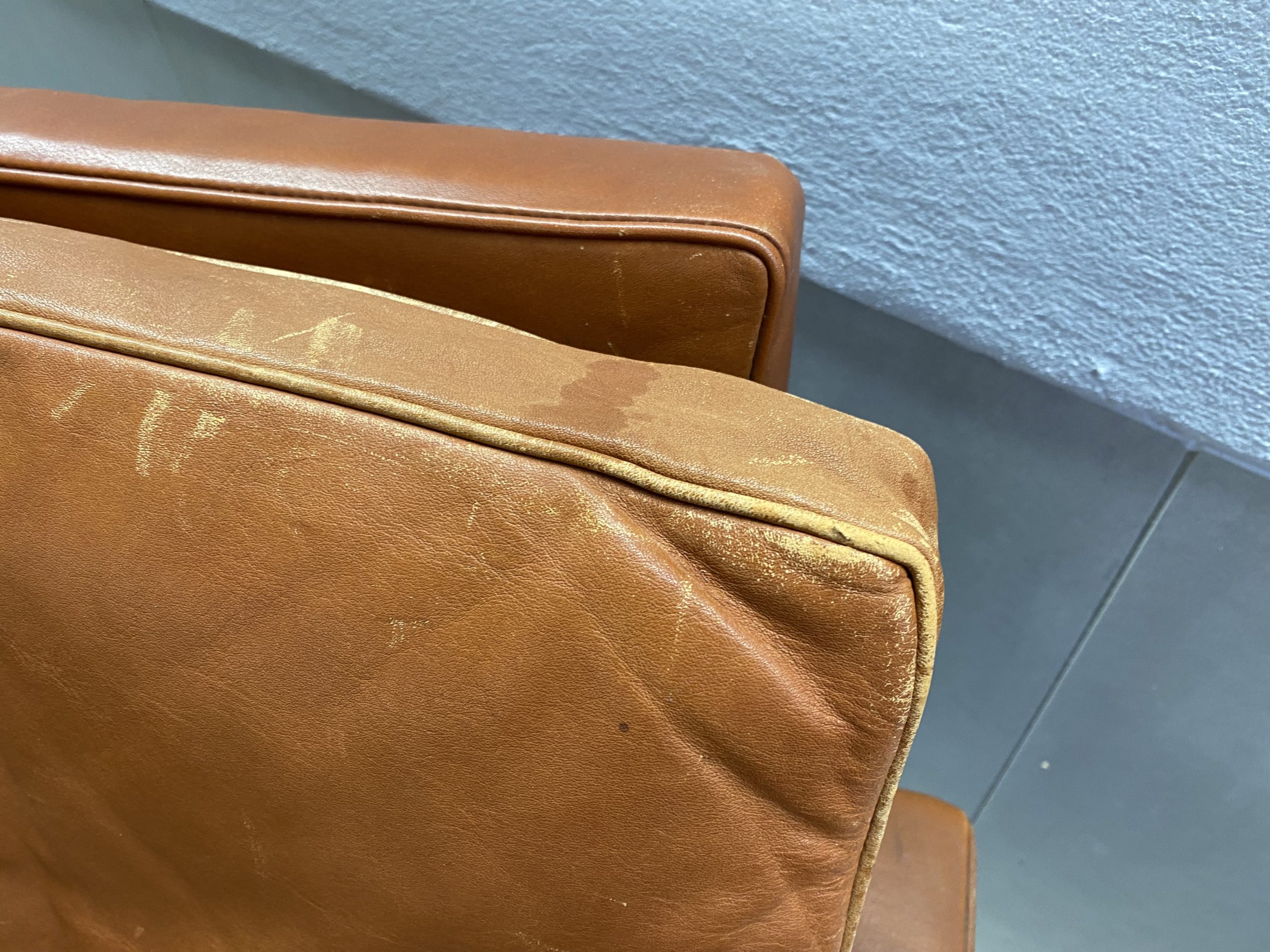 Paire de fauteuils PK31 Poul Kjaerholm. Très belles pièces, cuir dans son jus, métal en bon état avec gravé Denmark sous chaque fauteuil. Vente en paire uniquement.