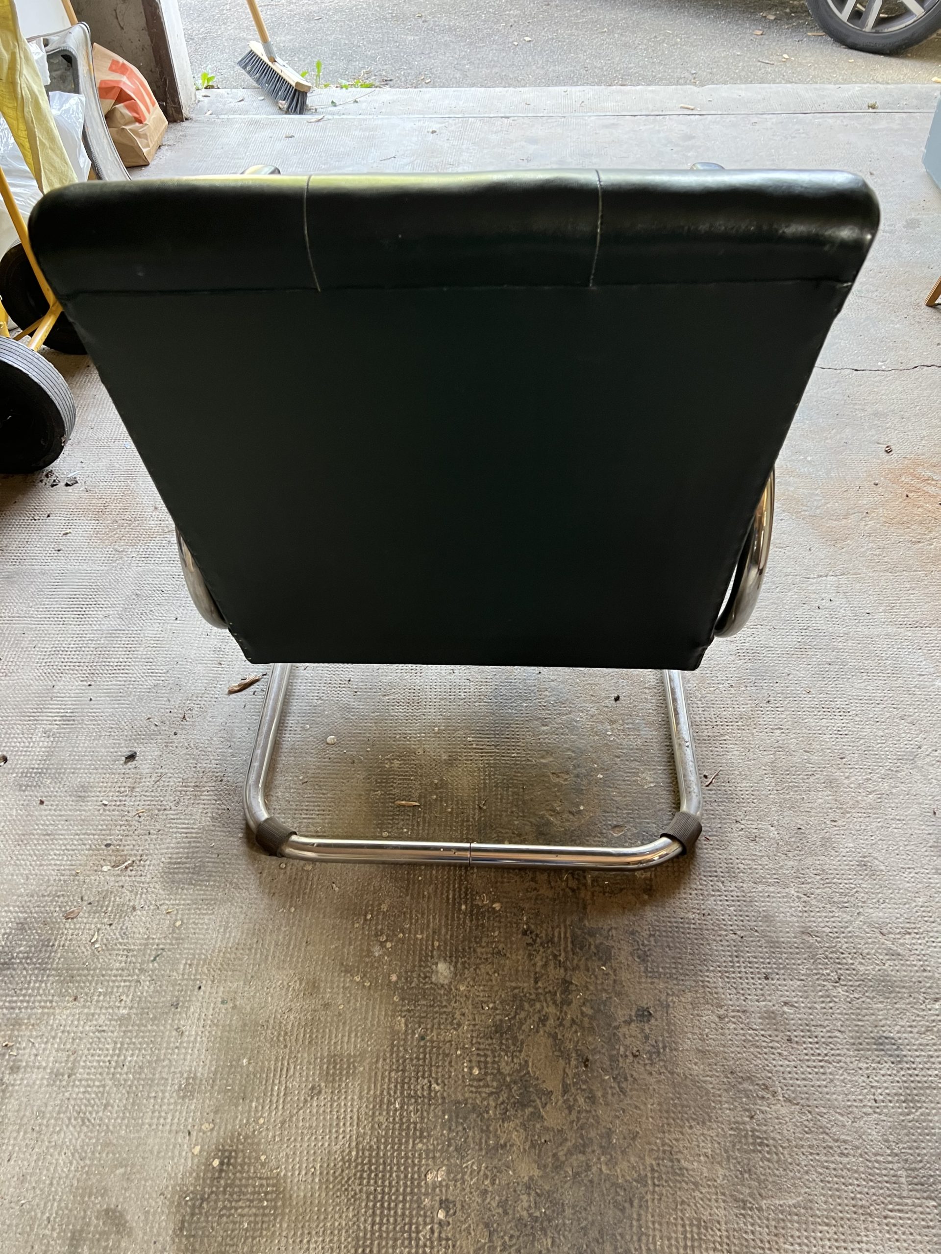 Avec une structure en tube d’acier, les deux fauteuils à bascule libre sont de production française. Ils sont dans la lignée des meubles de Marcel Breuer, dans la tendance Bauhaus, sont d’une grande élégance, et quasi des pièces de collection.