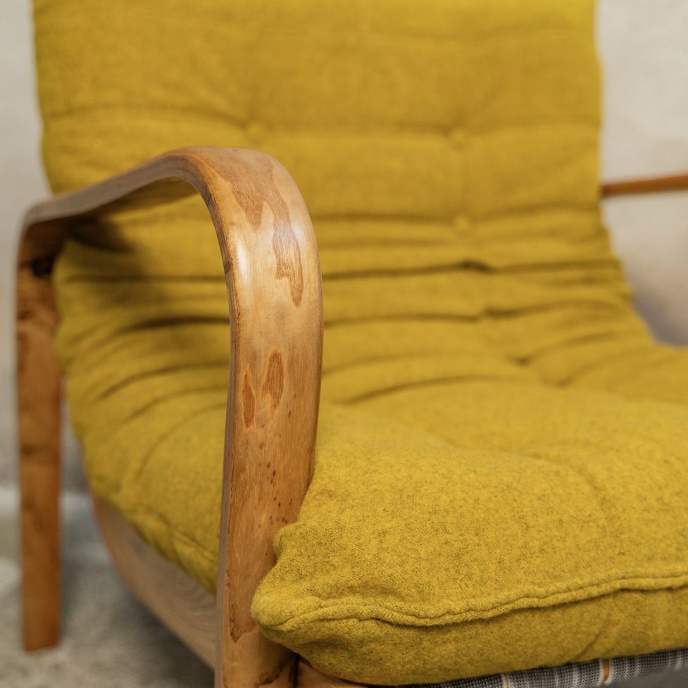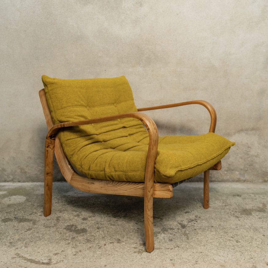 Ce modèle, de couleur moutarde, a été vendu et les deux autres fauteuils disponibles peuvent êtres commandés, sur devis, dans la couleur de votre choix.