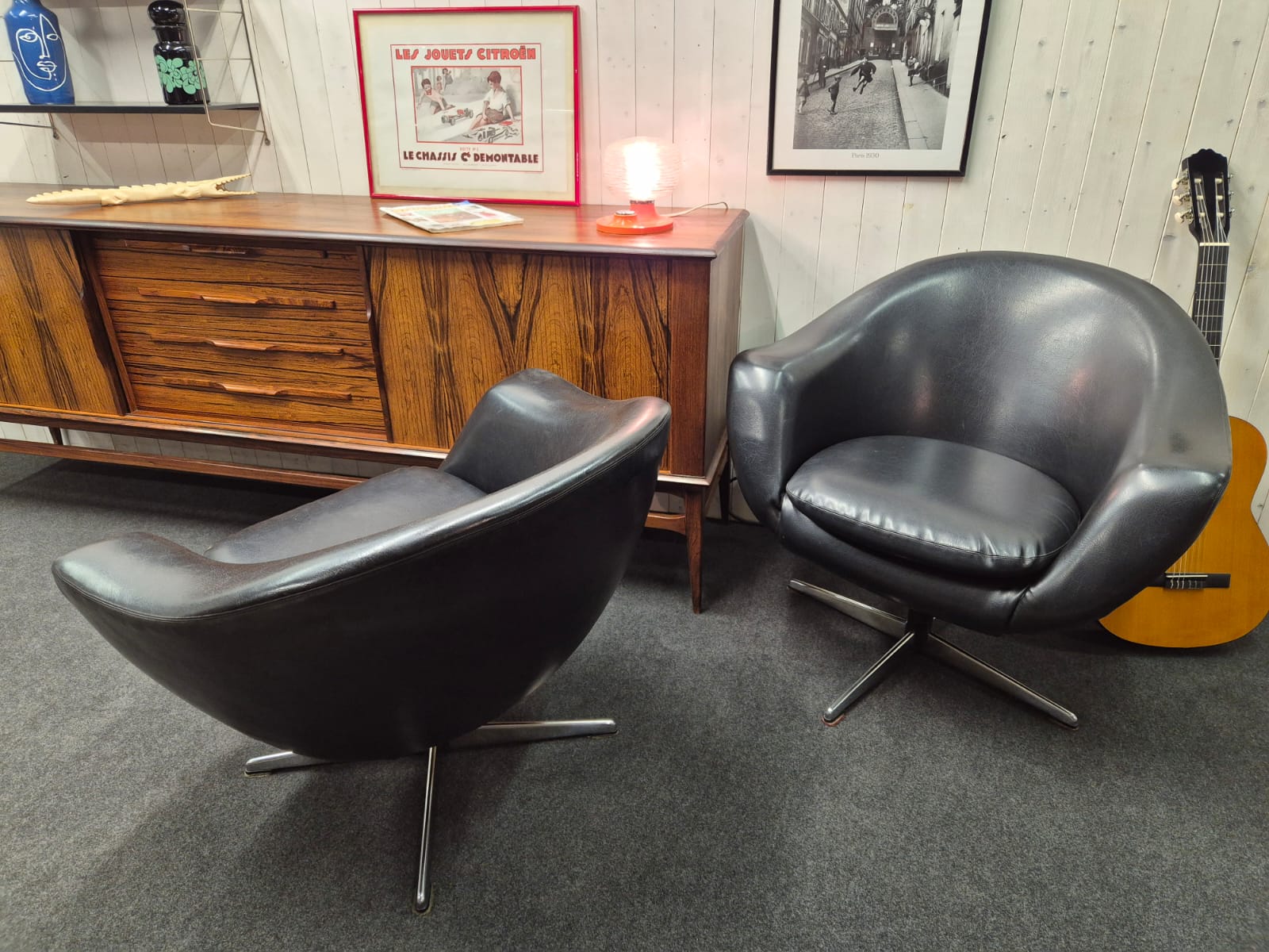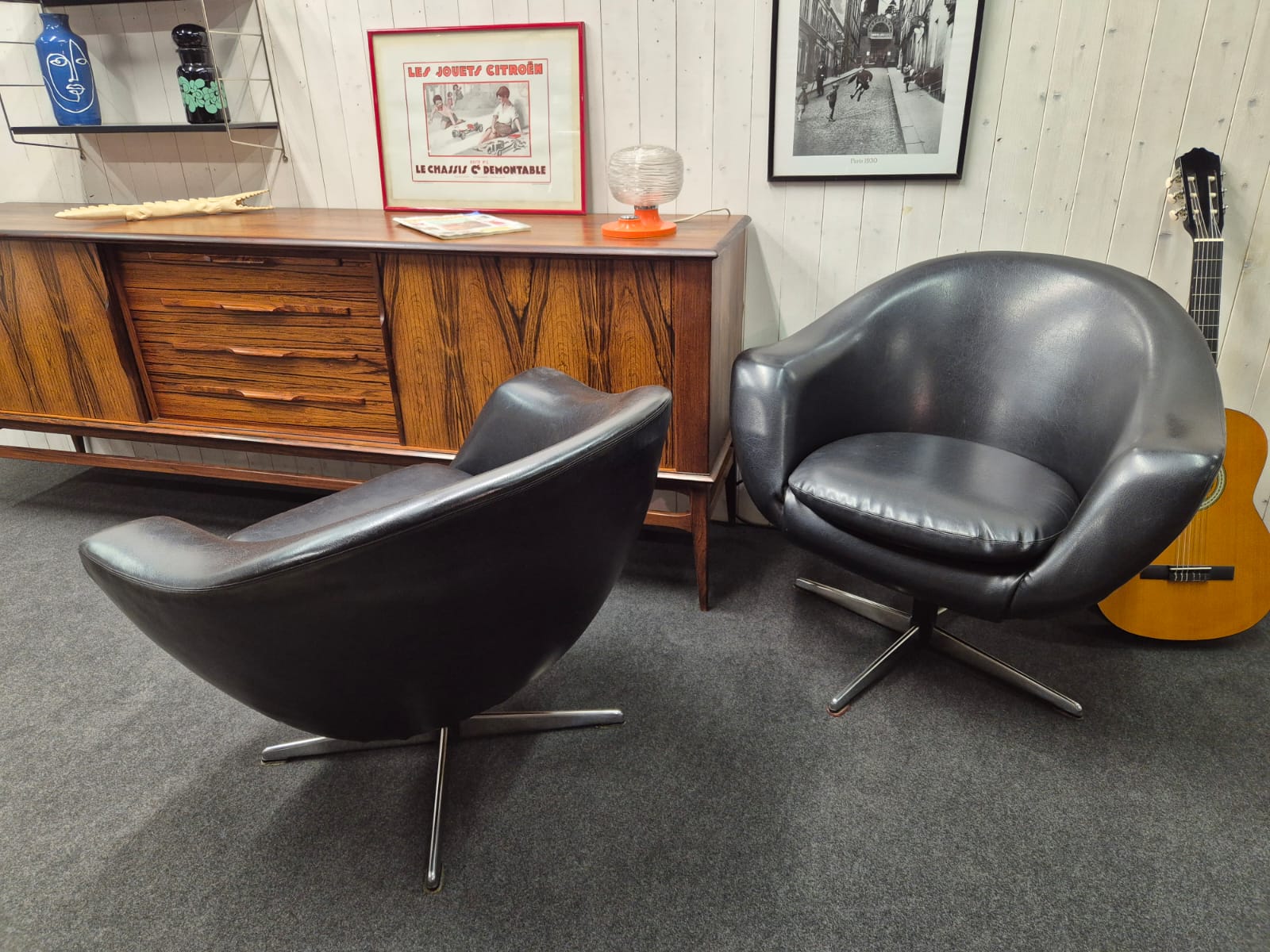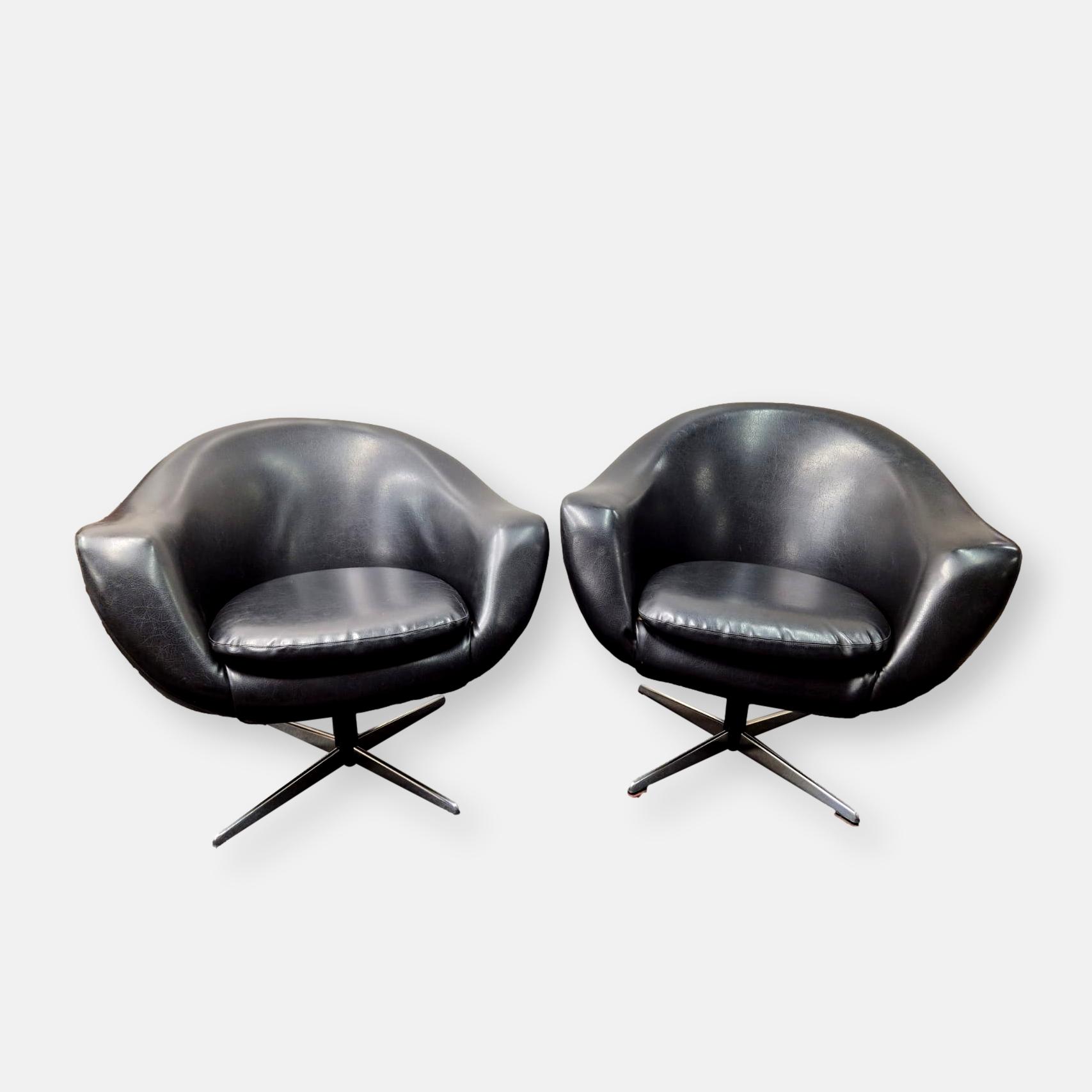joli duo de fauteuils Coquille Ballon pivotant, années 60/70, design scandinave dans le goût de Karl Eric Klote pour Overman.