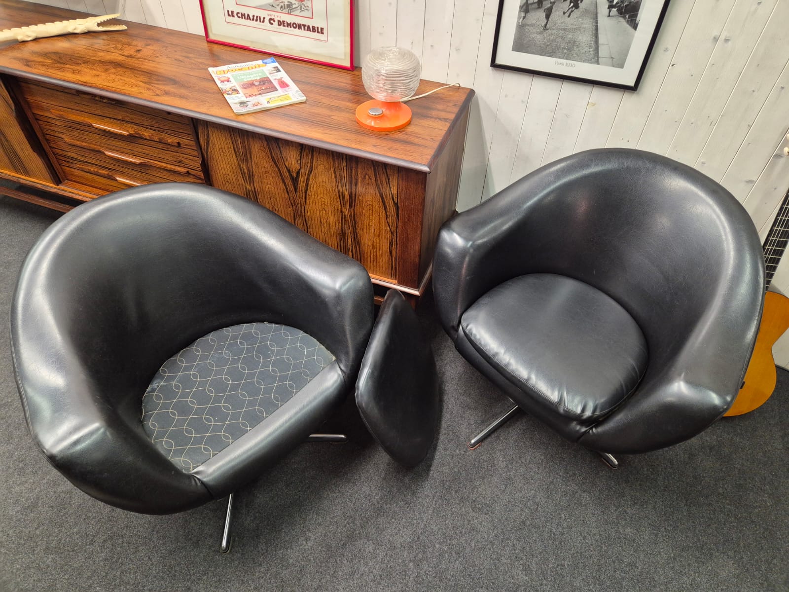 Les deux fauteuils sont en bon état général (skaï et piètement chrome )