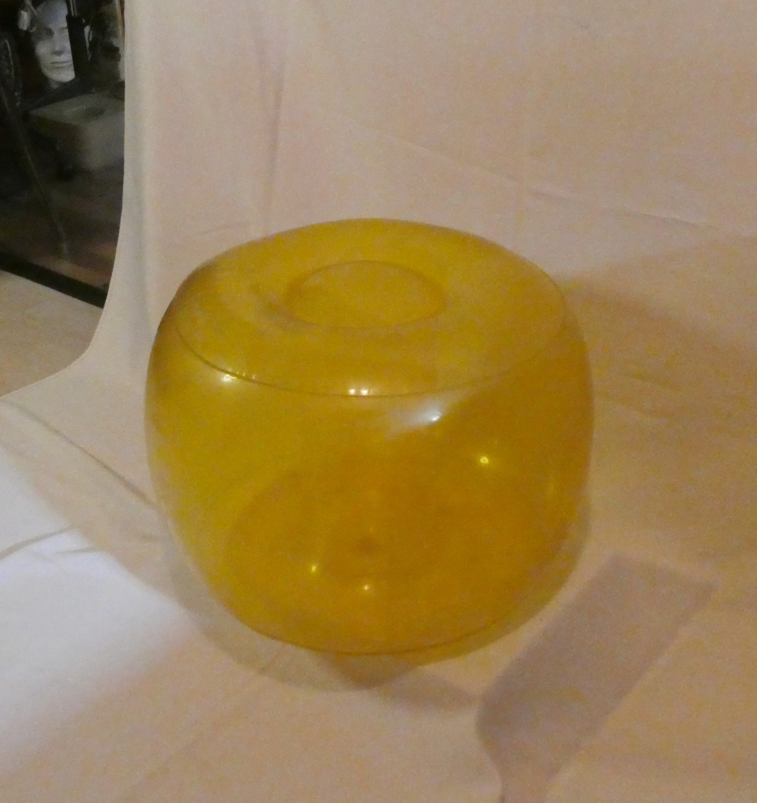 Superbe pouf gonflable en PVC translucide jaune, édité par Plasteco Milano Italie dans les années 1970.