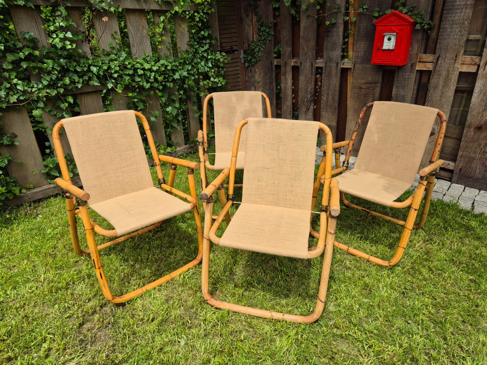 Exceptionnel ensemble Dal Vera (made in Italia 🇮🇹) des années 60 composé de 4 chaises et d’une table en bambou, le tout pliant.