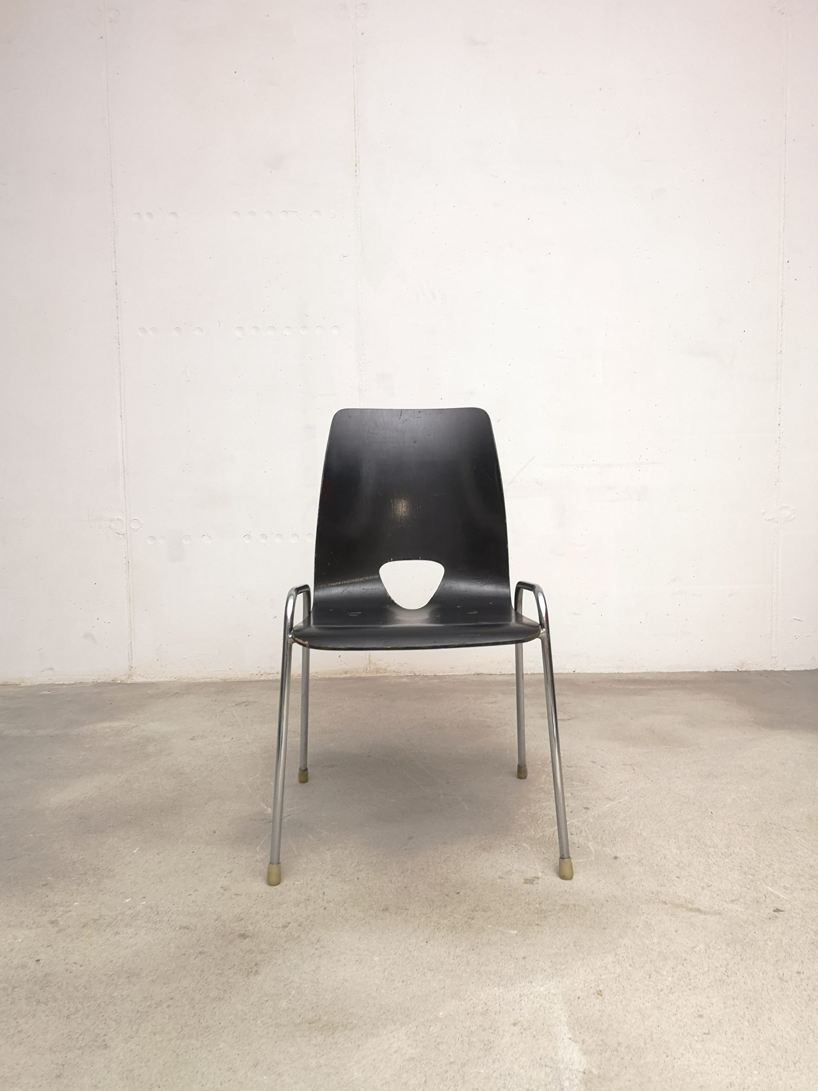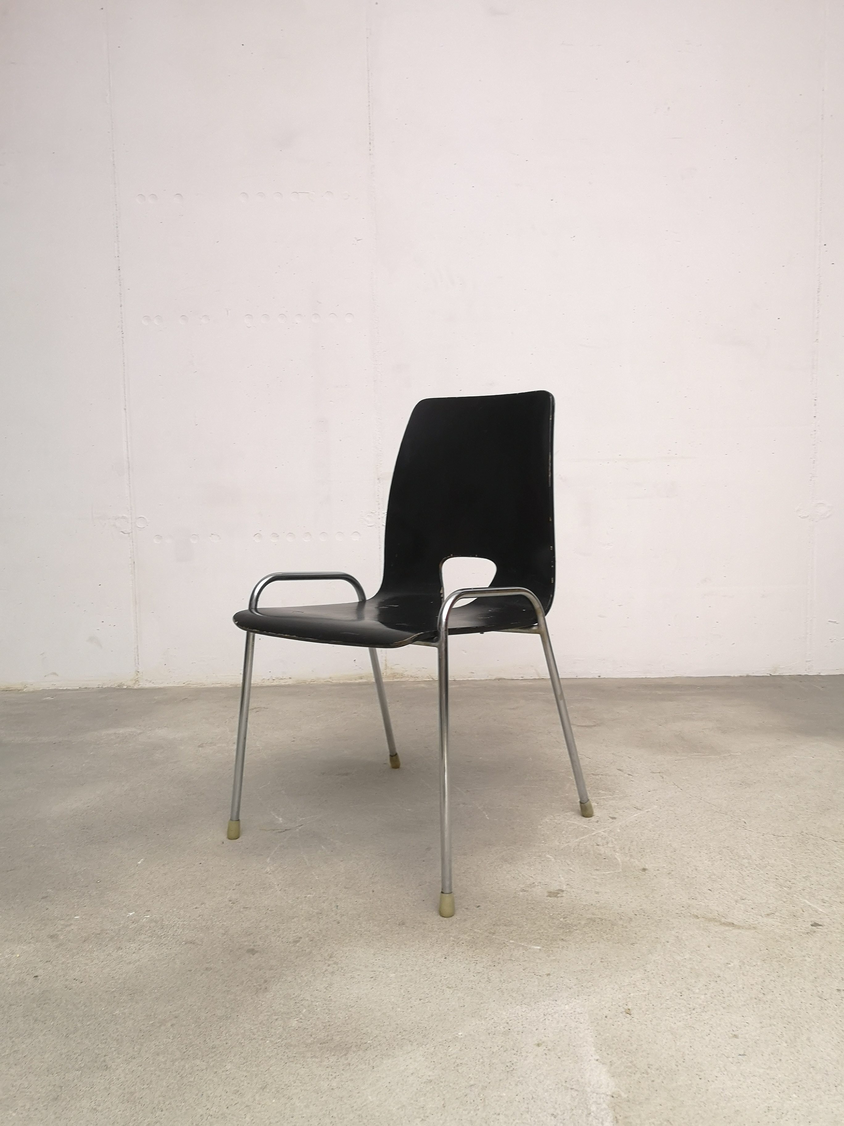 Produit venduChaise noire en bois et métal dans le style de Hans Bellmann.