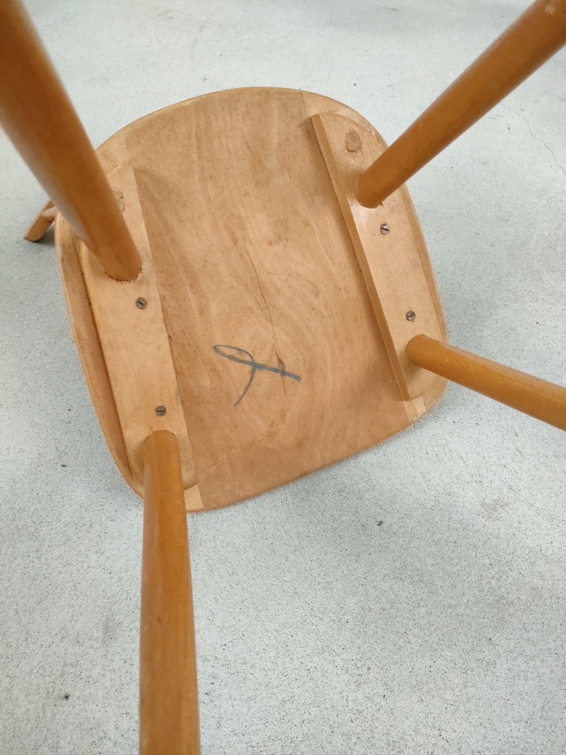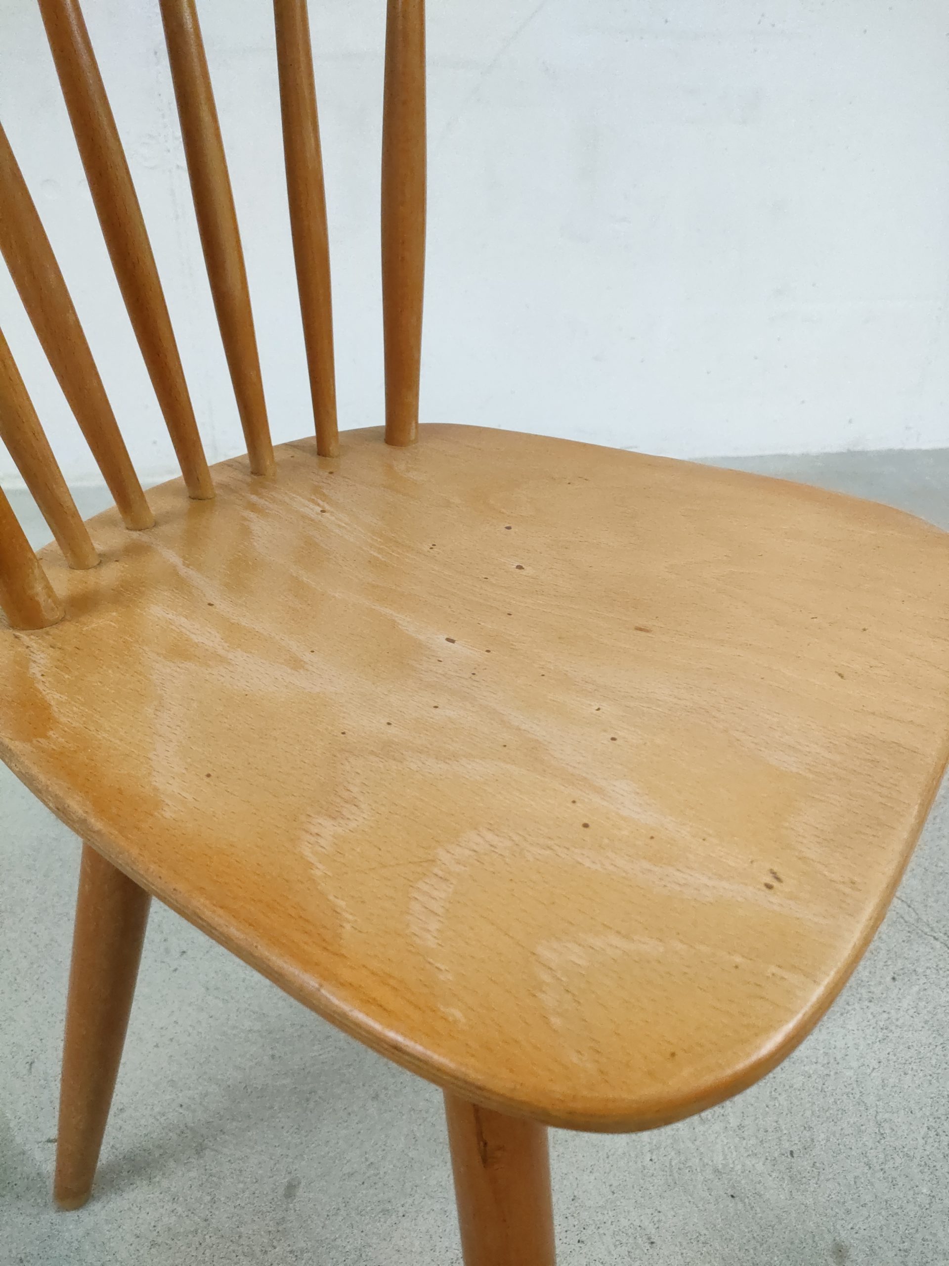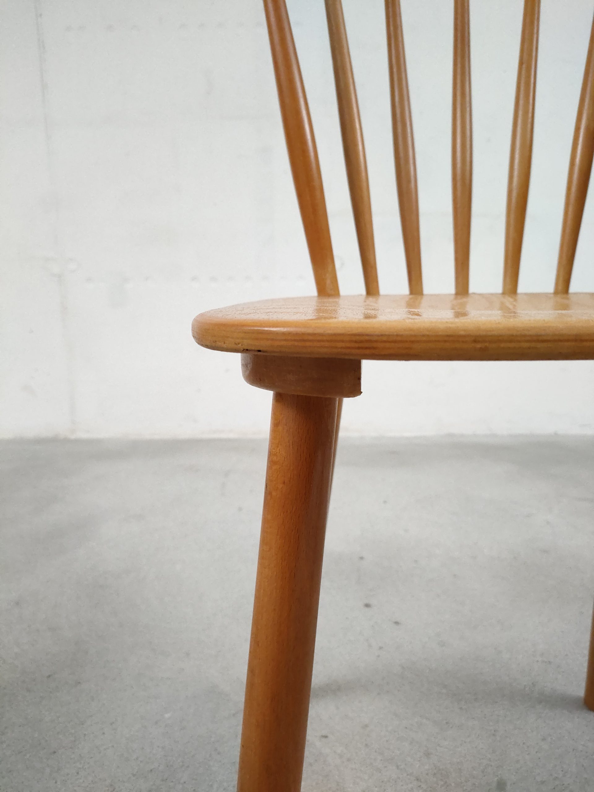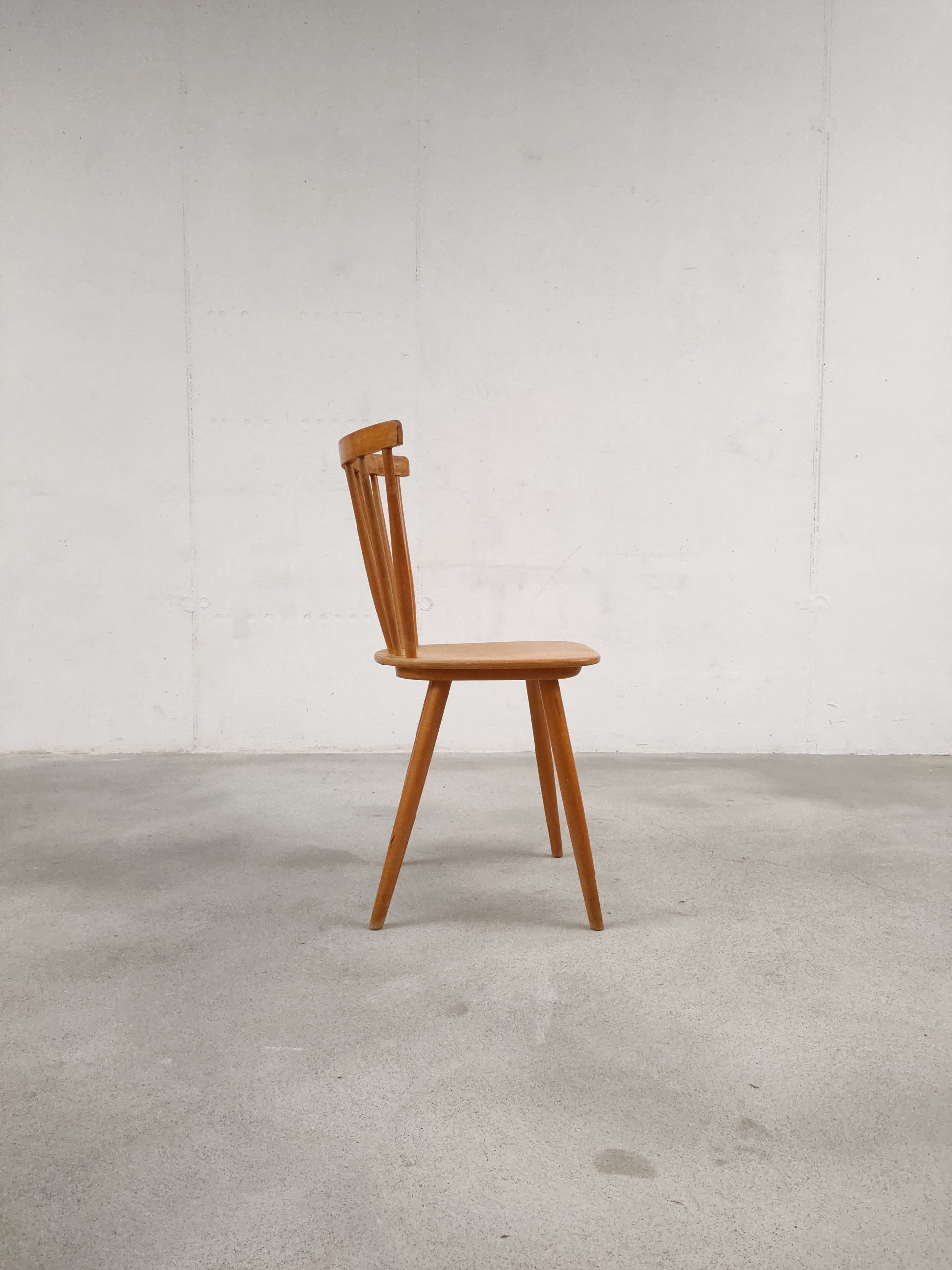 Produit venduChaise à barreaux vintage en bois avec des traces d’usure en particulier sur la partie supérieure du dossier et sur l’assise. La chaise est stable et solide. Hauteur de l’assise: 45 cm.