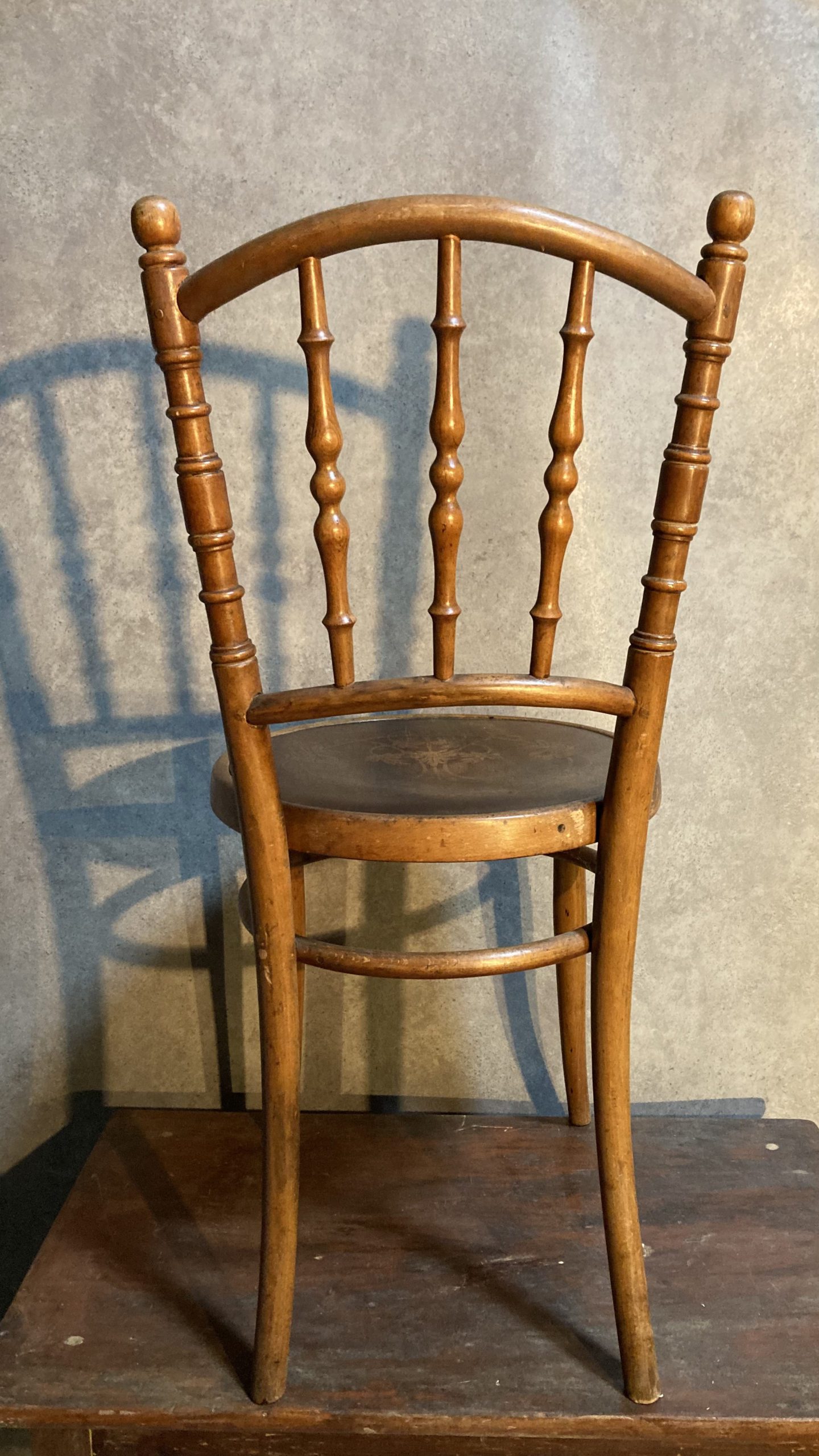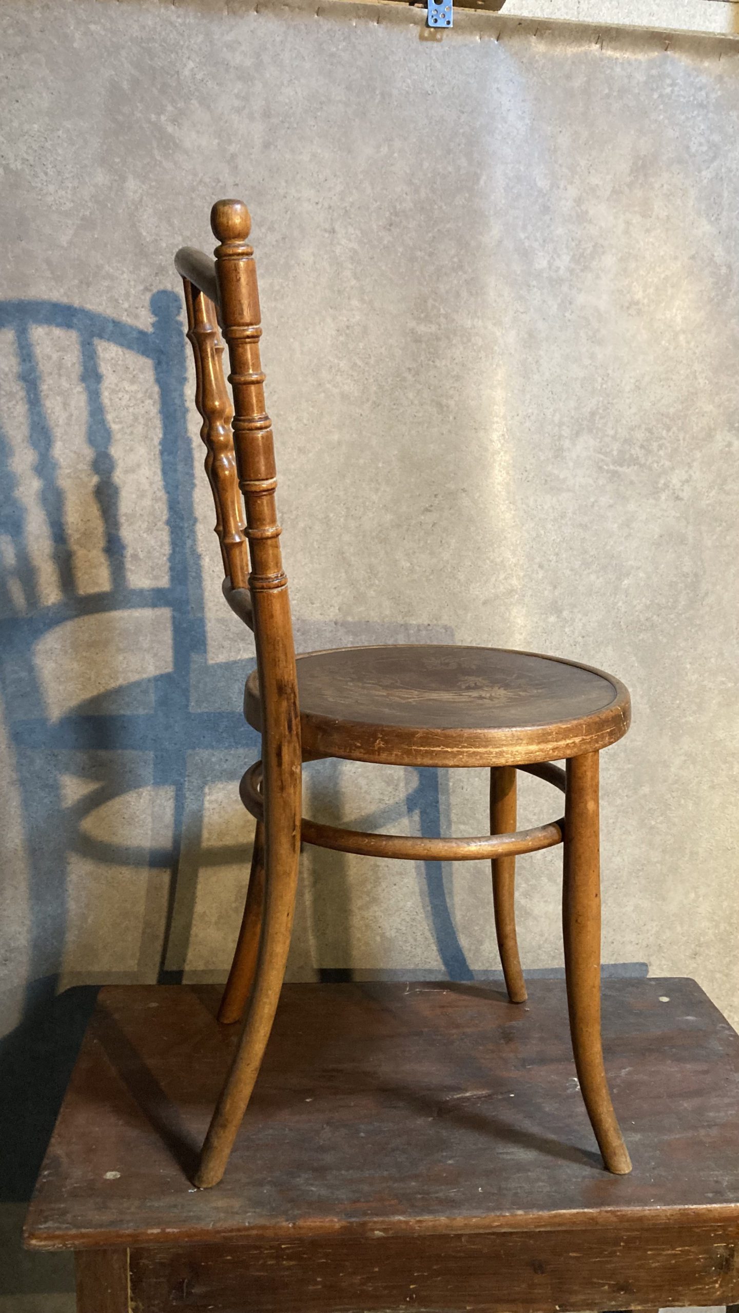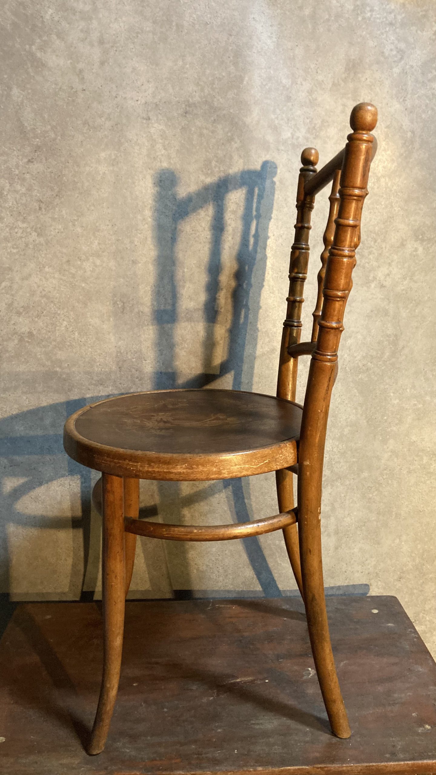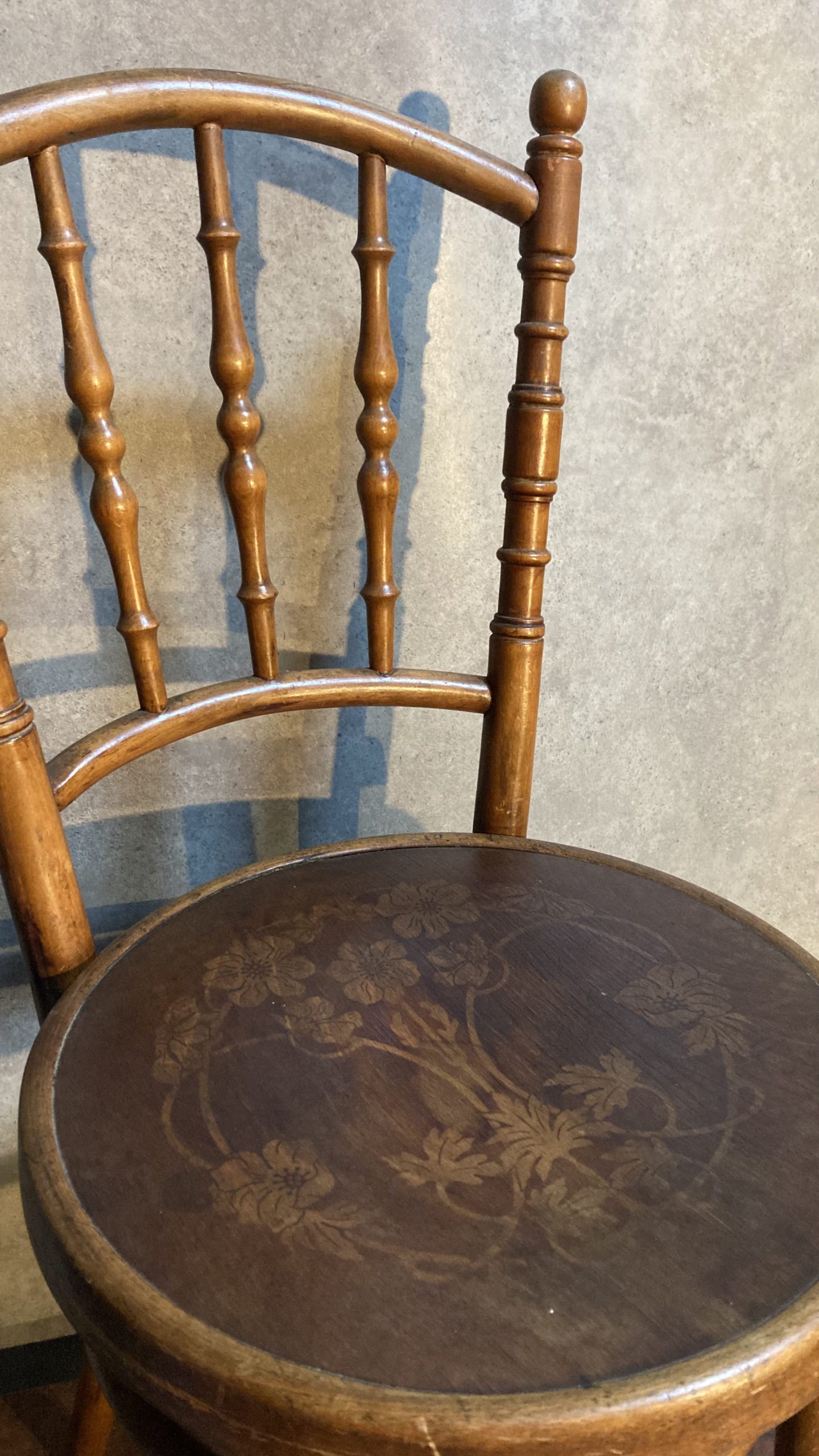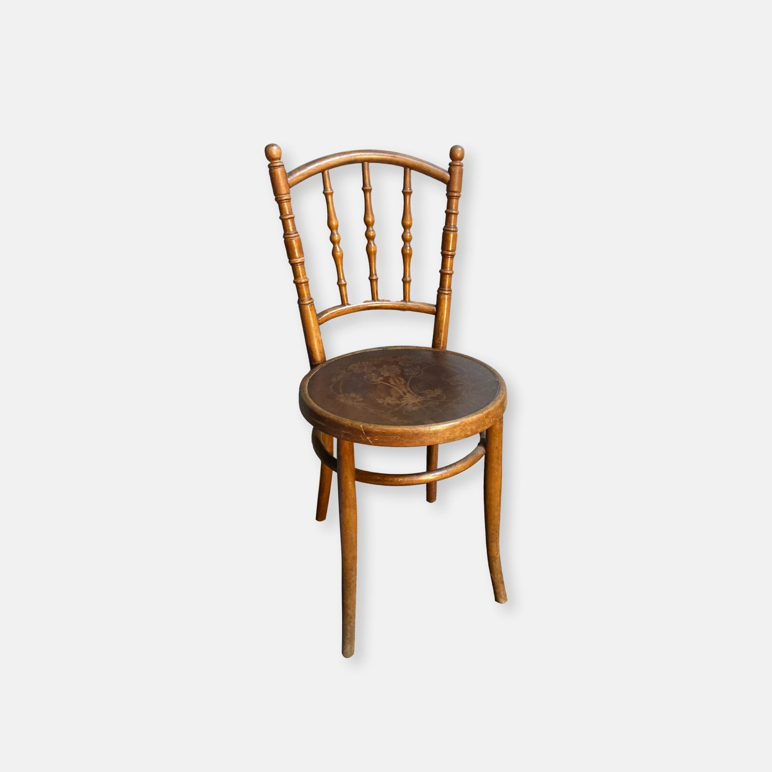 Produit venduTrès jolie chaise de bistro originale. Avec superbe motif floral au placet.