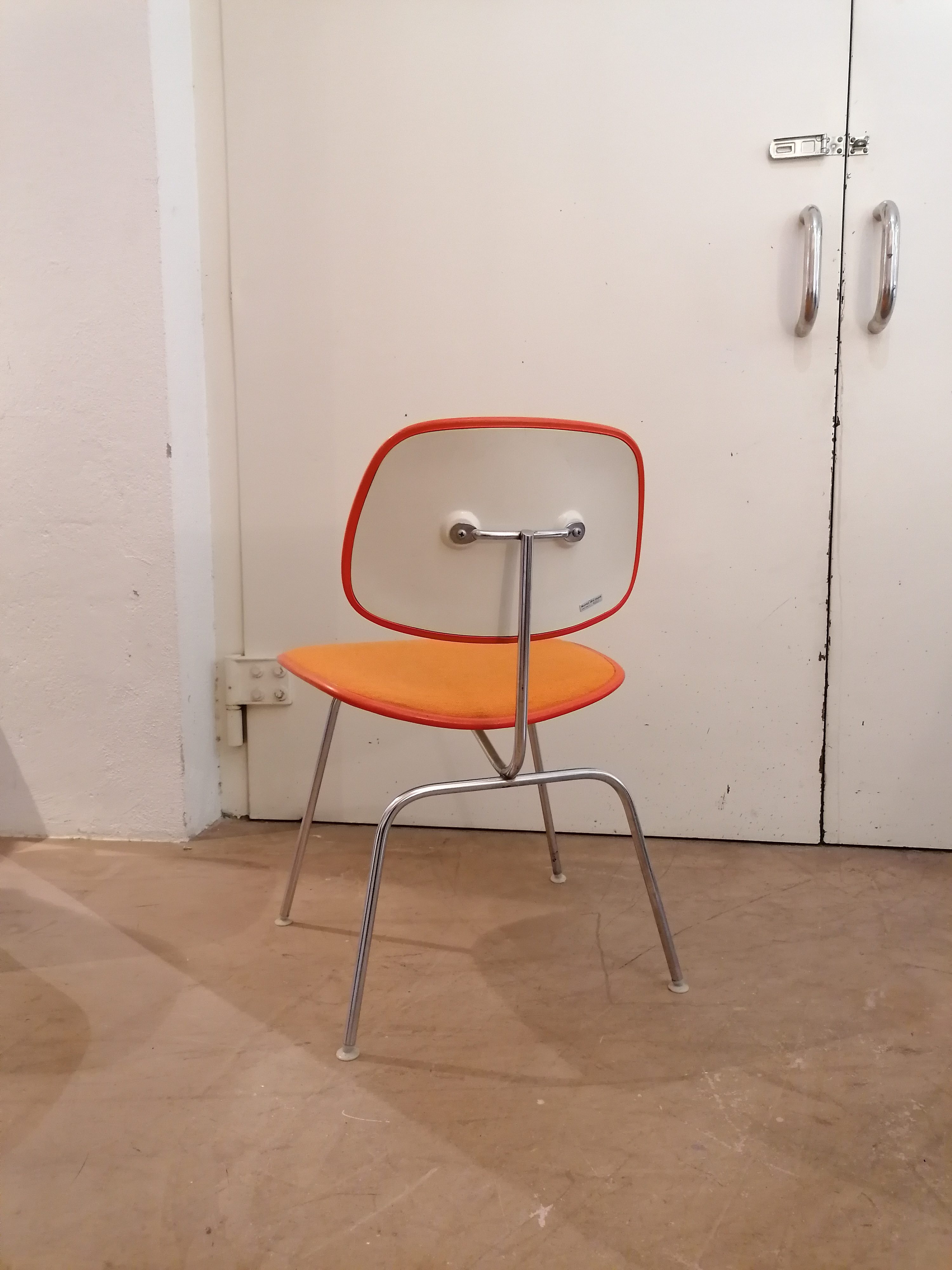 Produit venduRare chaise Eames DCMU – Dining Height (D) Chair (C) on Metal (M) Rod Base & Upholstered (U) de Charles et Ray Eames produite par Herman Miller.