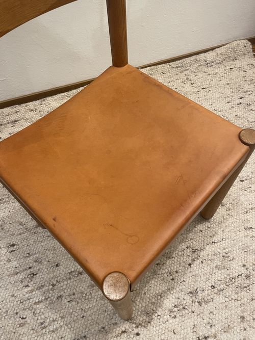La chaise présente quelques marques sur le cuir visible sur les photos. Le cuir a été nettoyé et nourri récemment.