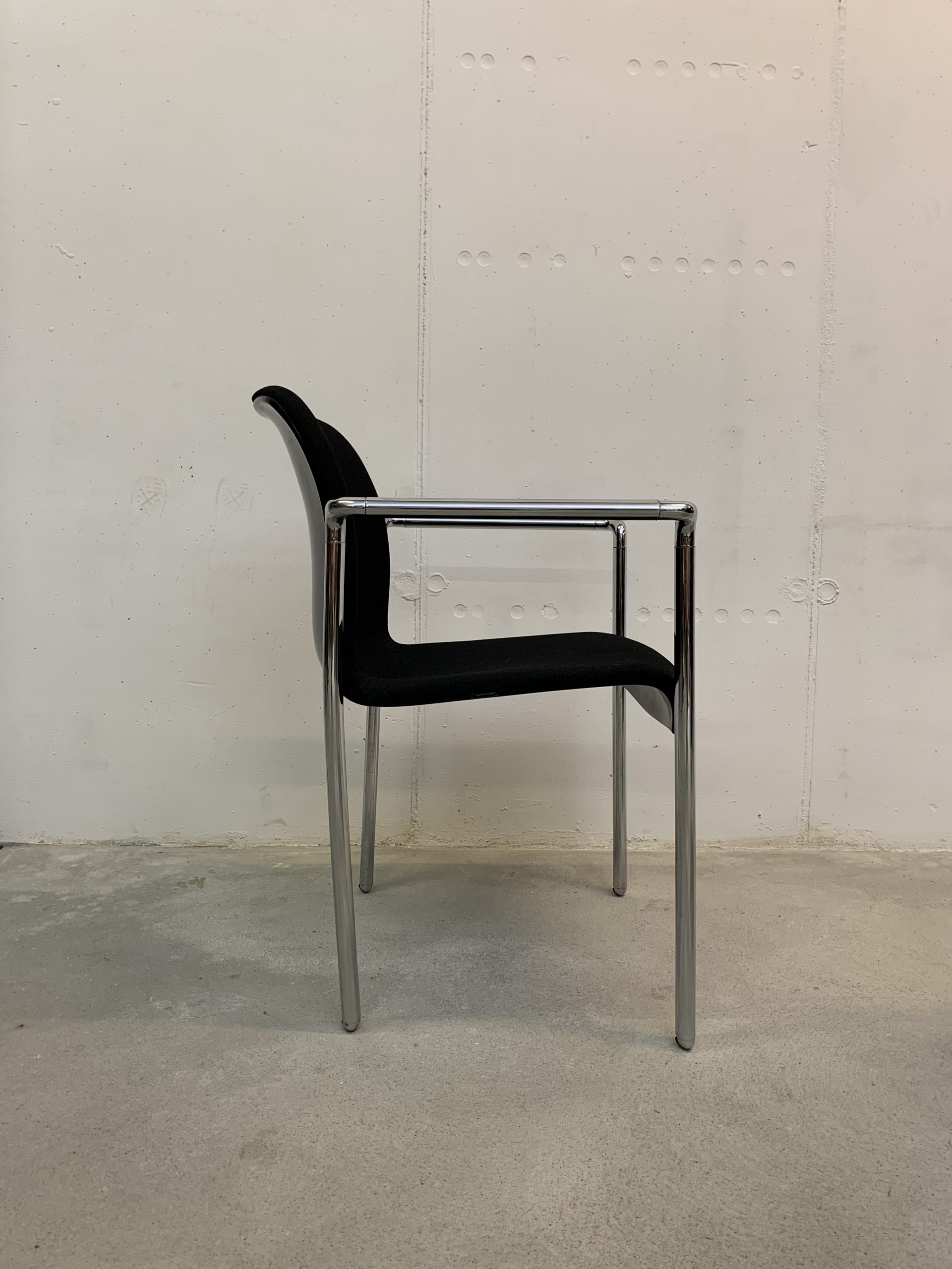 Produit venduChaise empilable Guest Dining Arm Chair produite aux USA par Herman Miller (logo sous l’assise). Ce modèle n’est actuellement plus produit.