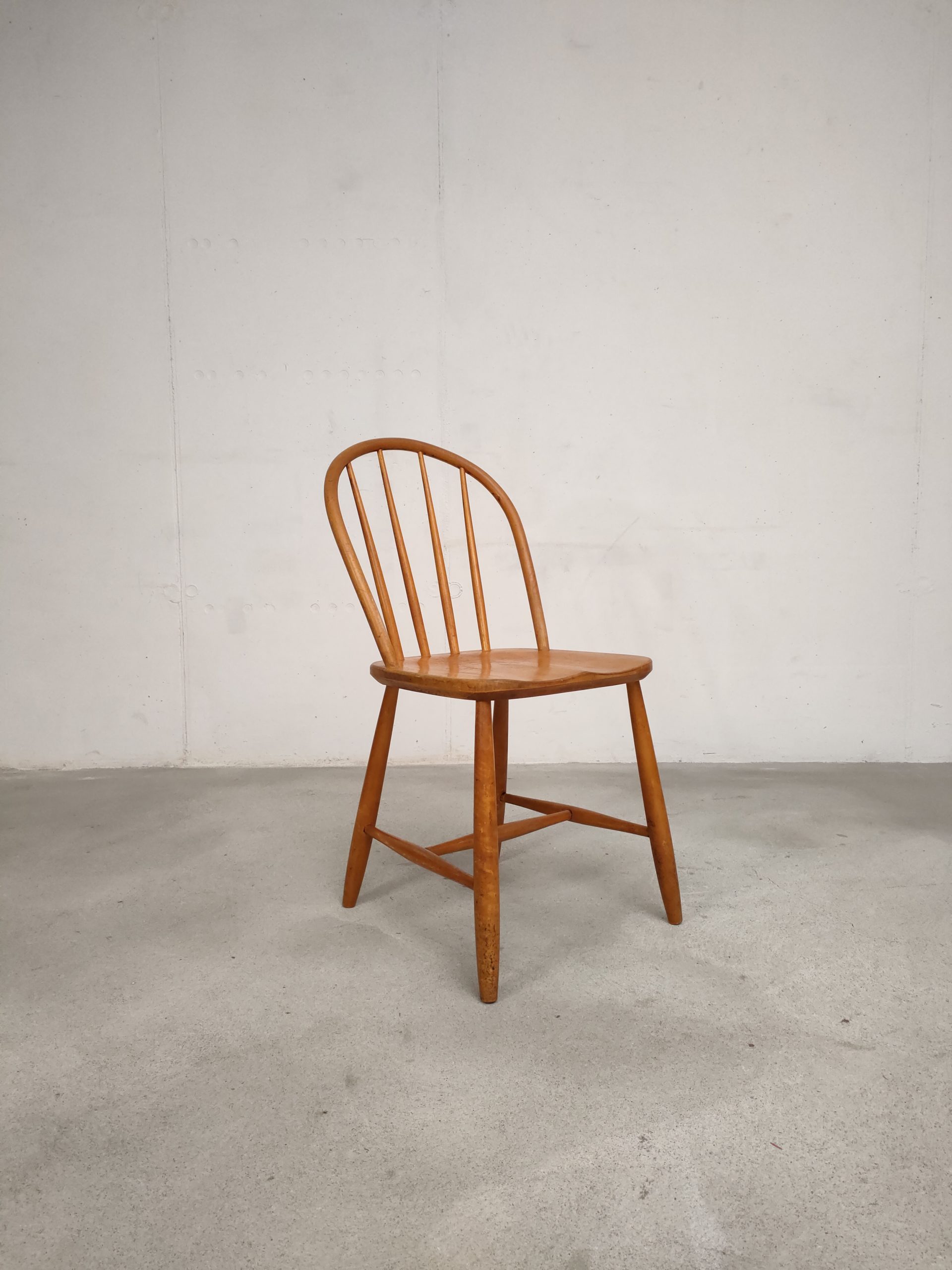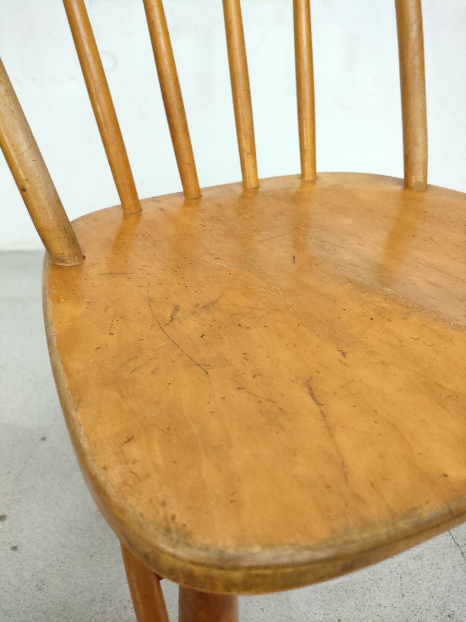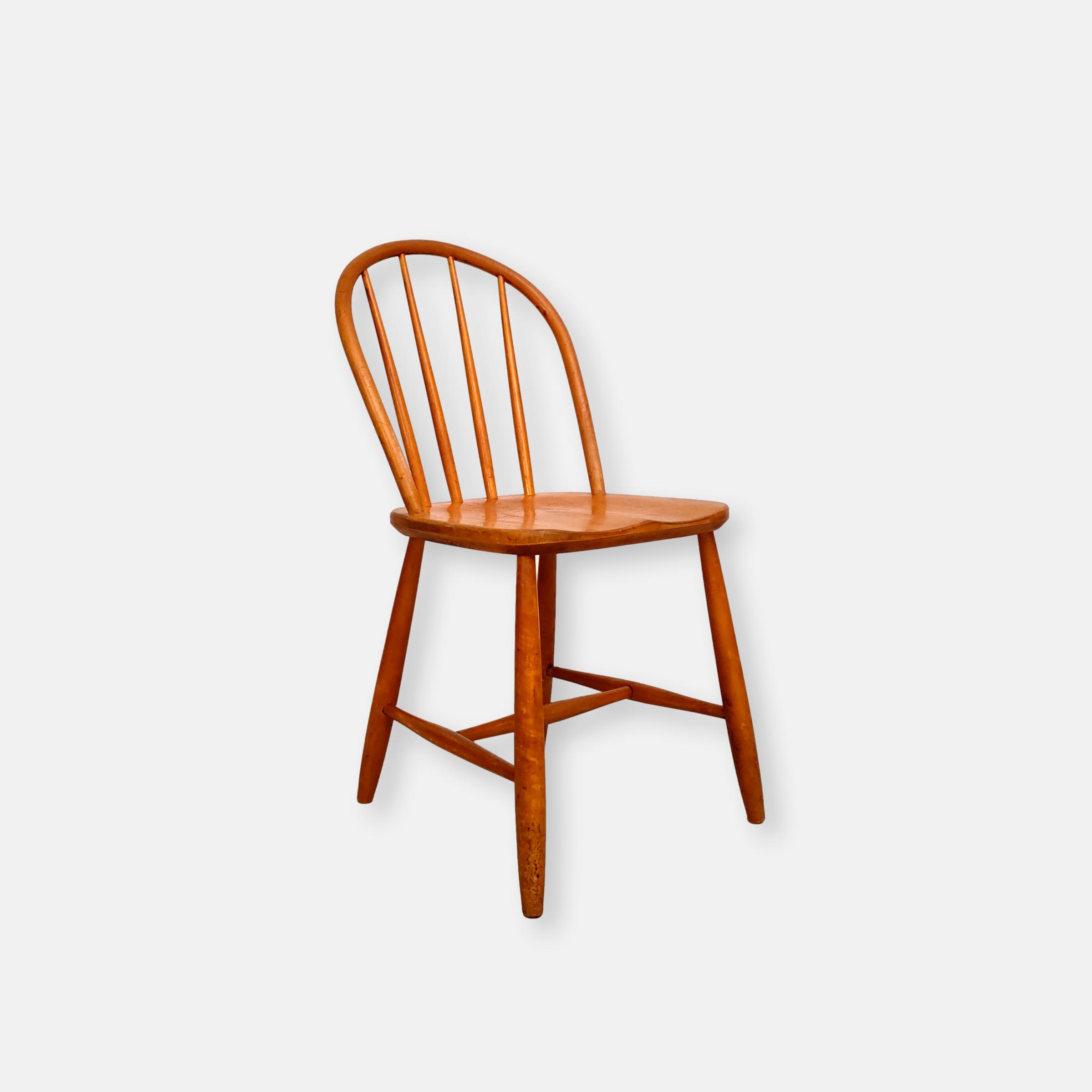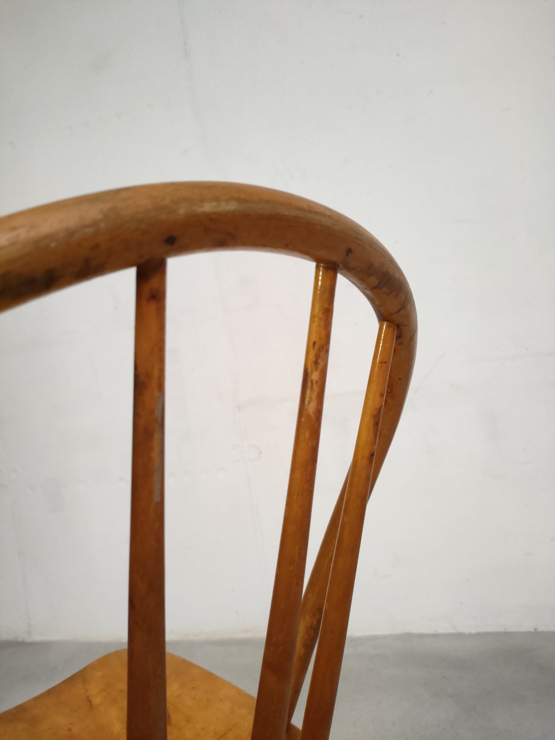 Produit venduChaise vintage en bois courbé de très belle facture. Très probablement d’origine suédoise des années 50. Des traces d’usure et des signes du passé sont présentes sur le bois. La chaise est non seulement stable et solide mais aussi très confortable et élégante. Hauteur de l’assise: 44 cm.