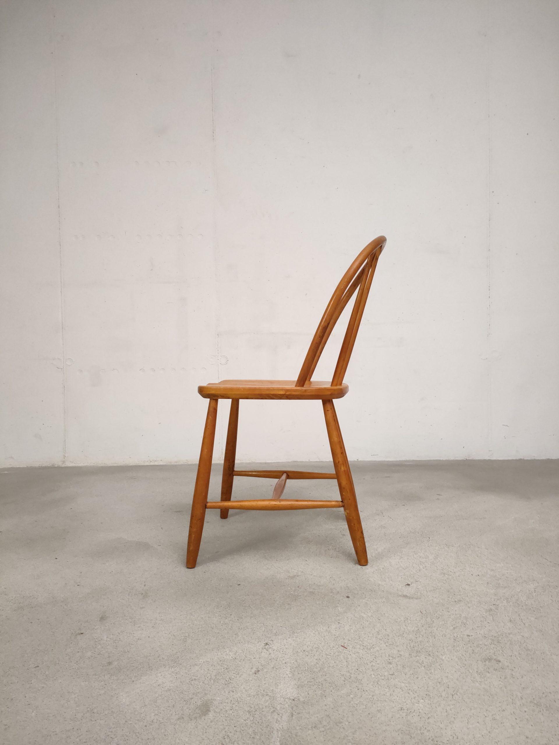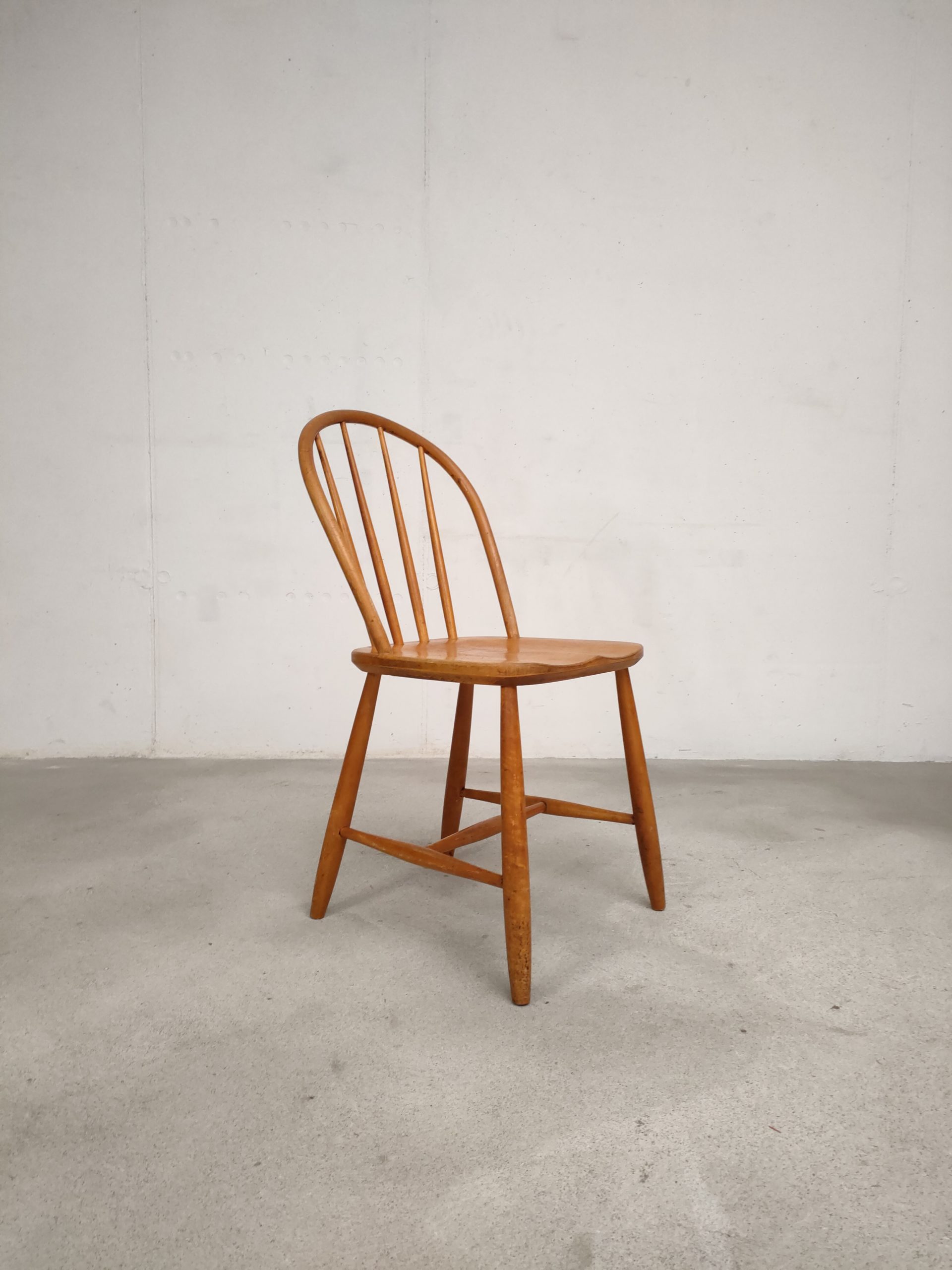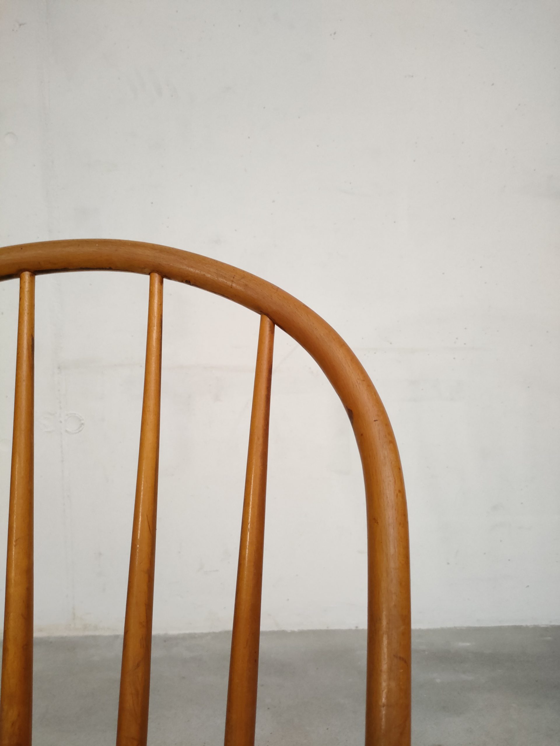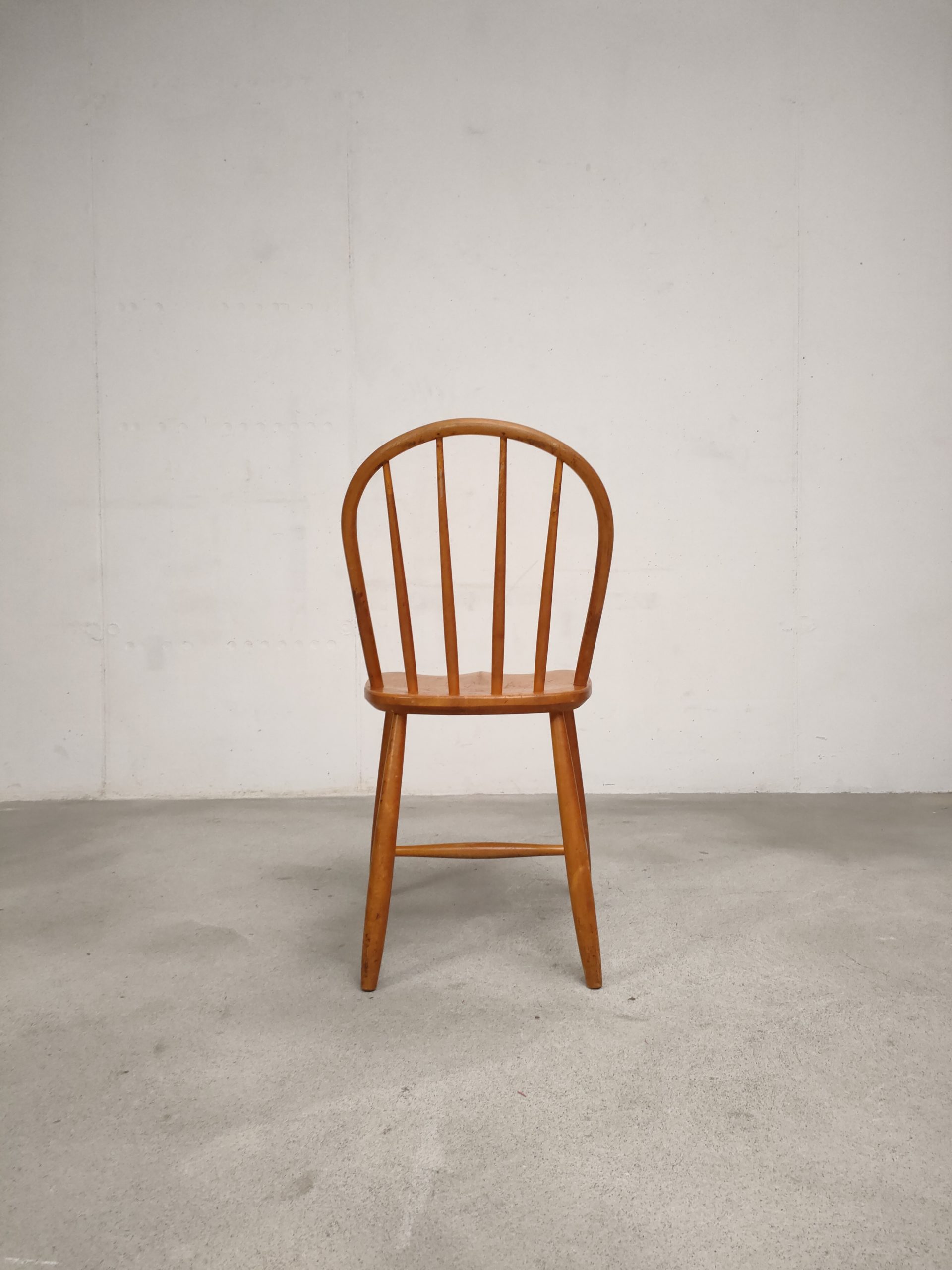 Produit venduChaise vintage en bois courbé de très belle facture. Très probablement d’origine suédoise des années 50. Des traces d’usure et des signes du passé sont présentes sur le bois. La chaise est non seulement stable et solide mais aussi très confortable et élégante. Hauteur de l’assise: 44 cm.