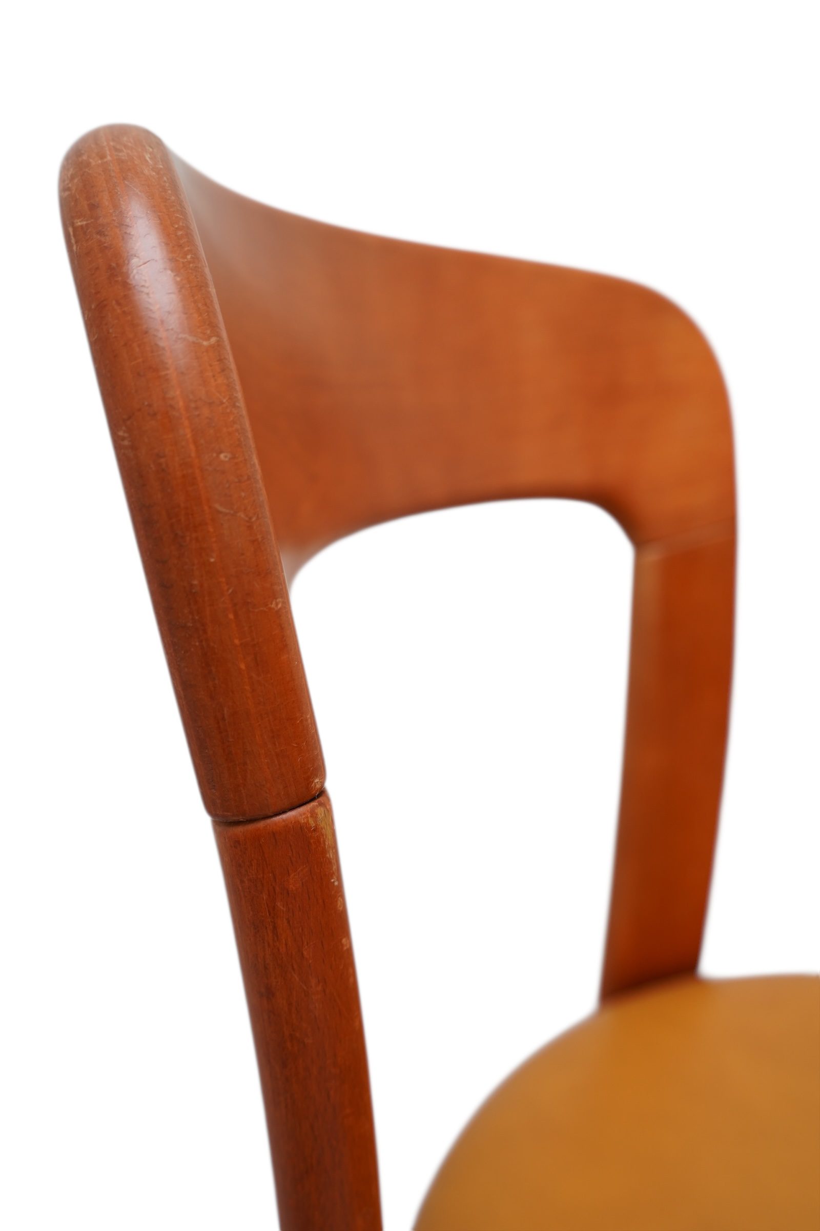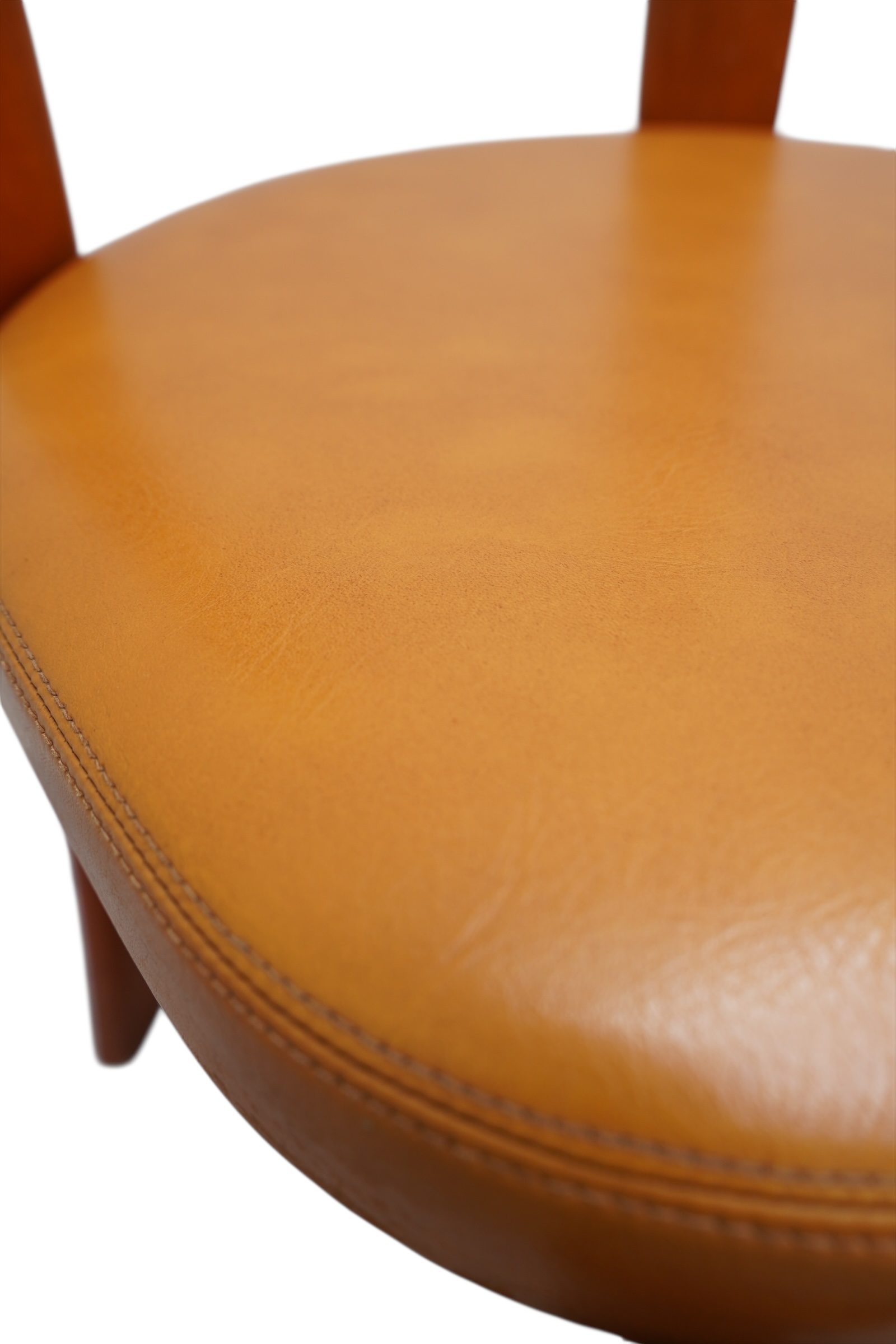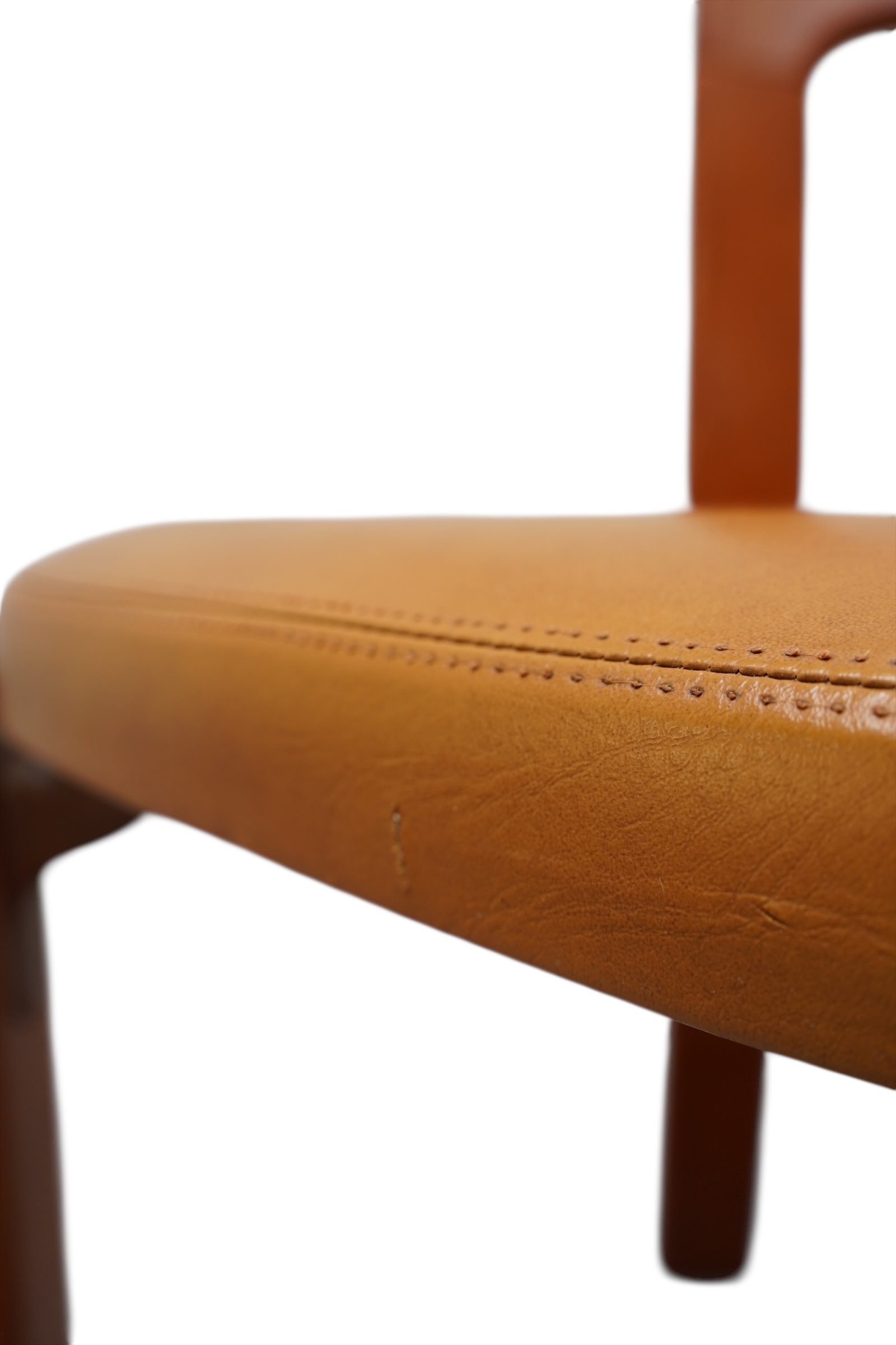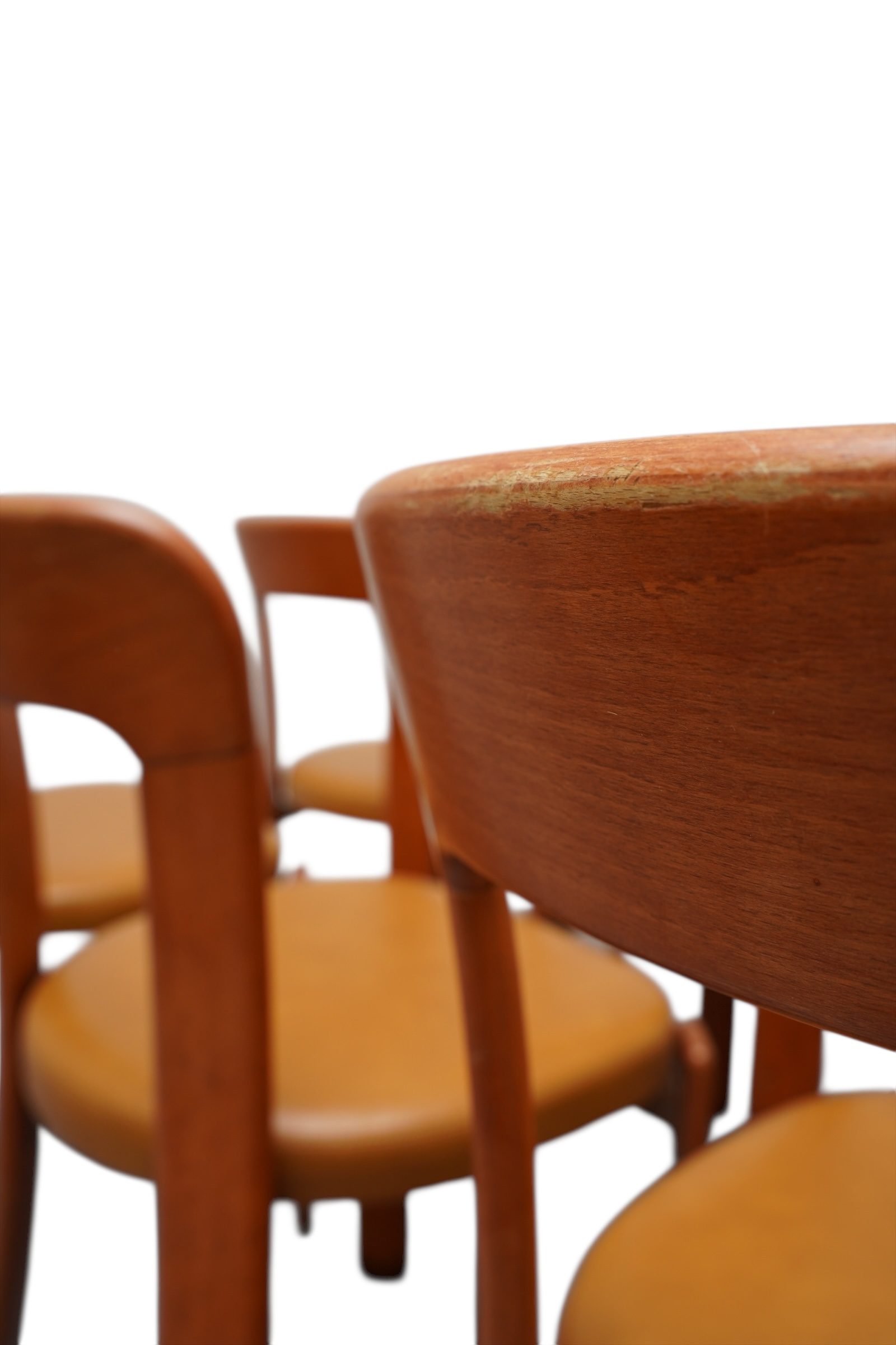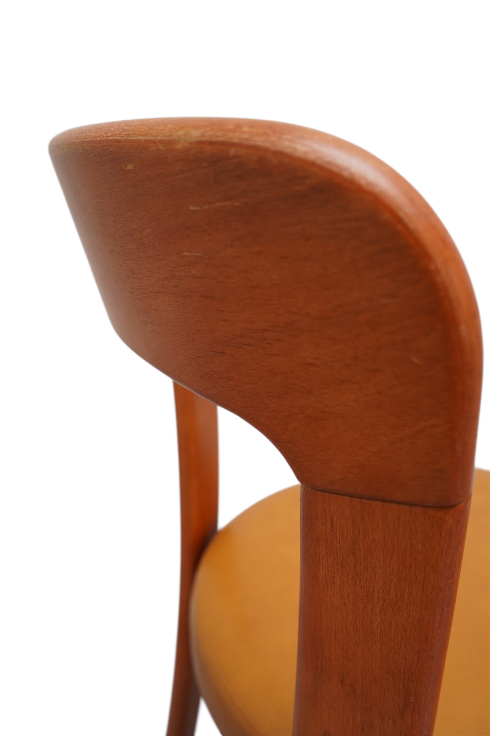 Ensemble de 8 chaises de Bruno Rey fabriquées par la maison Suisse « Dietiker » vers 1970’s. Les chaises sont en bois de hêtre de couleur brunes et habillées d’une assise en similicuir de haute qualité.