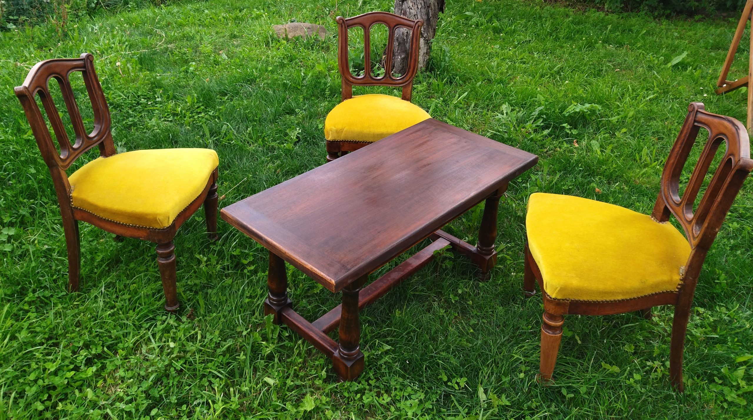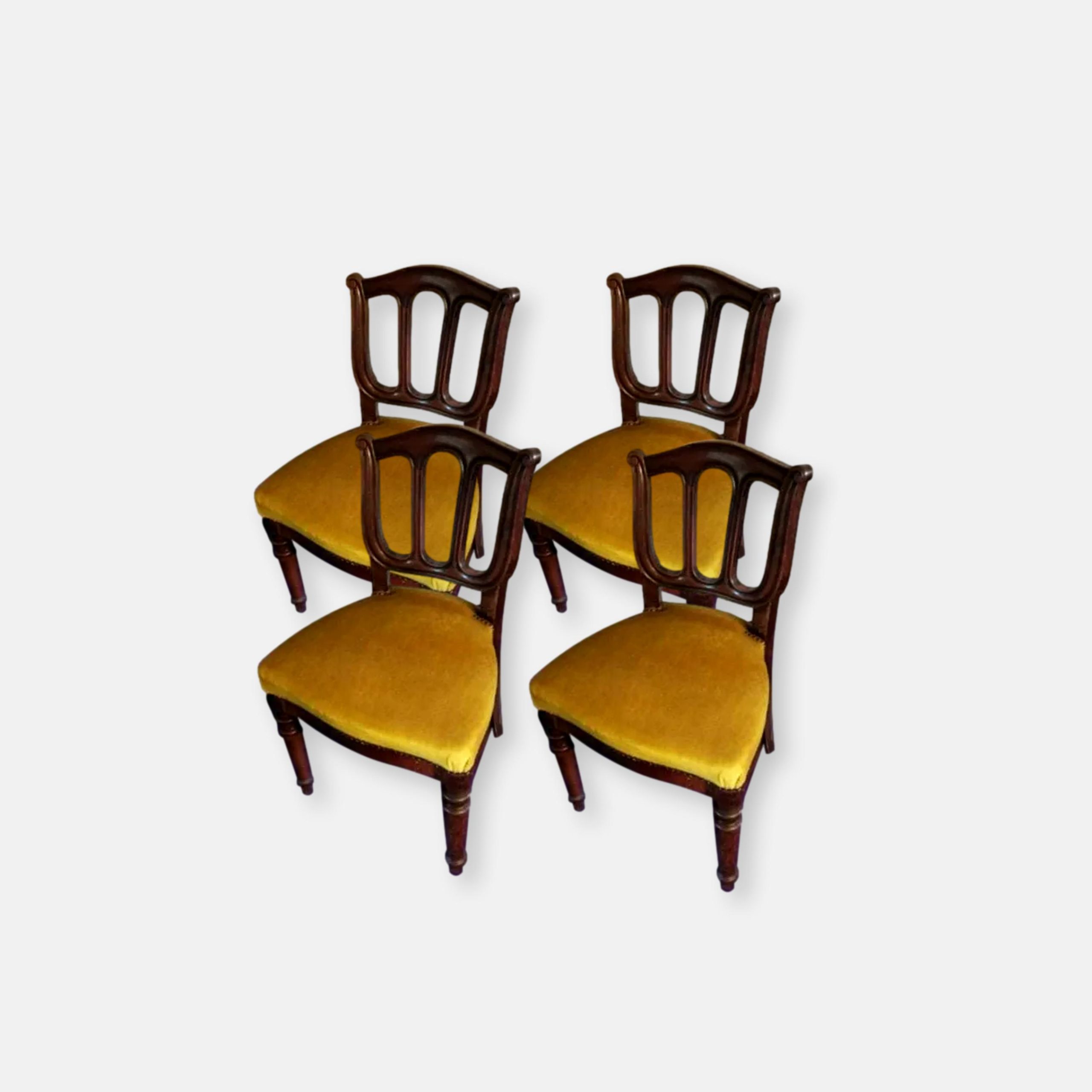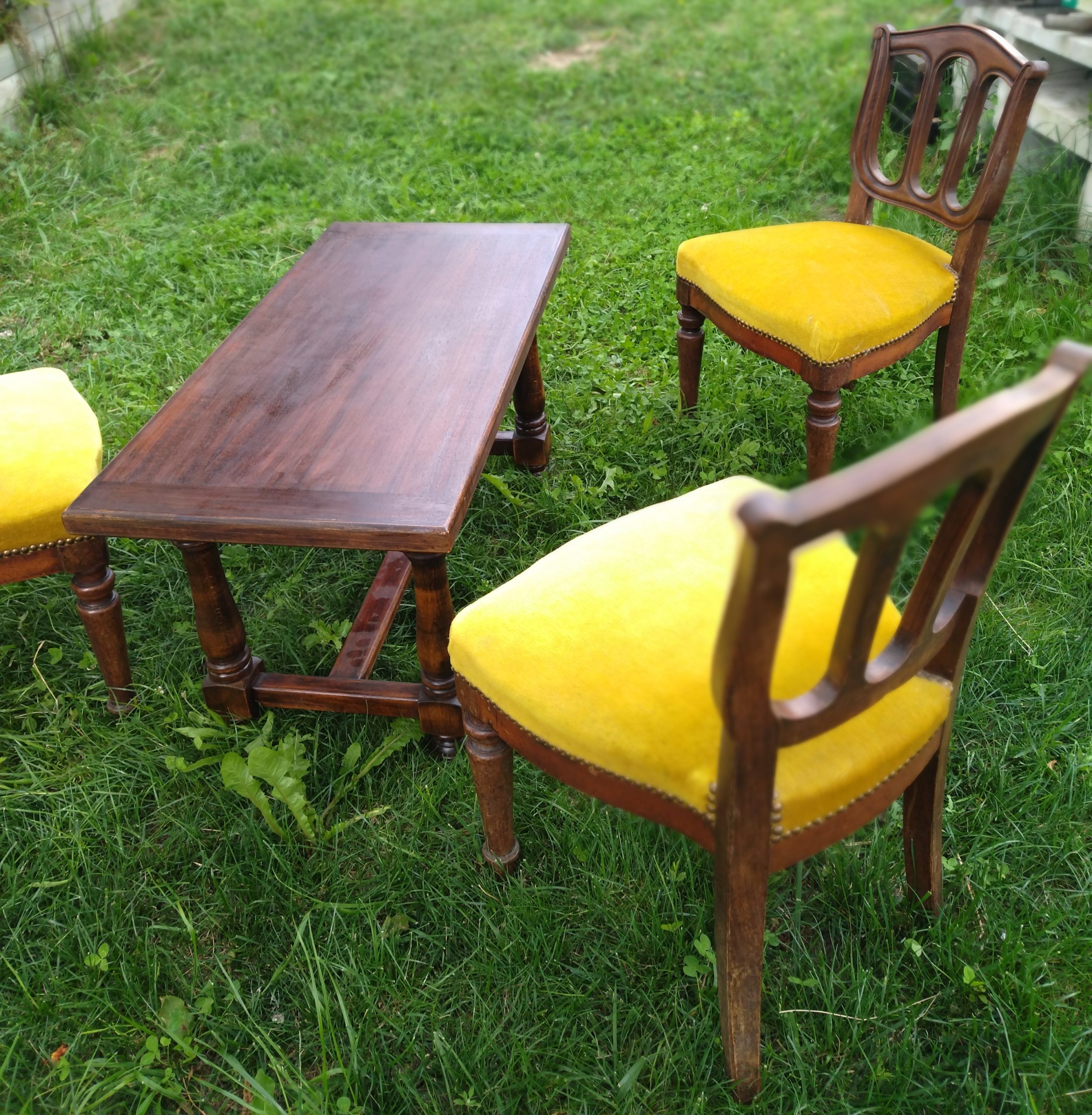 Produit venduLot de 4 chaises anciennes en bois avec assise de couleur vert jaune anis.