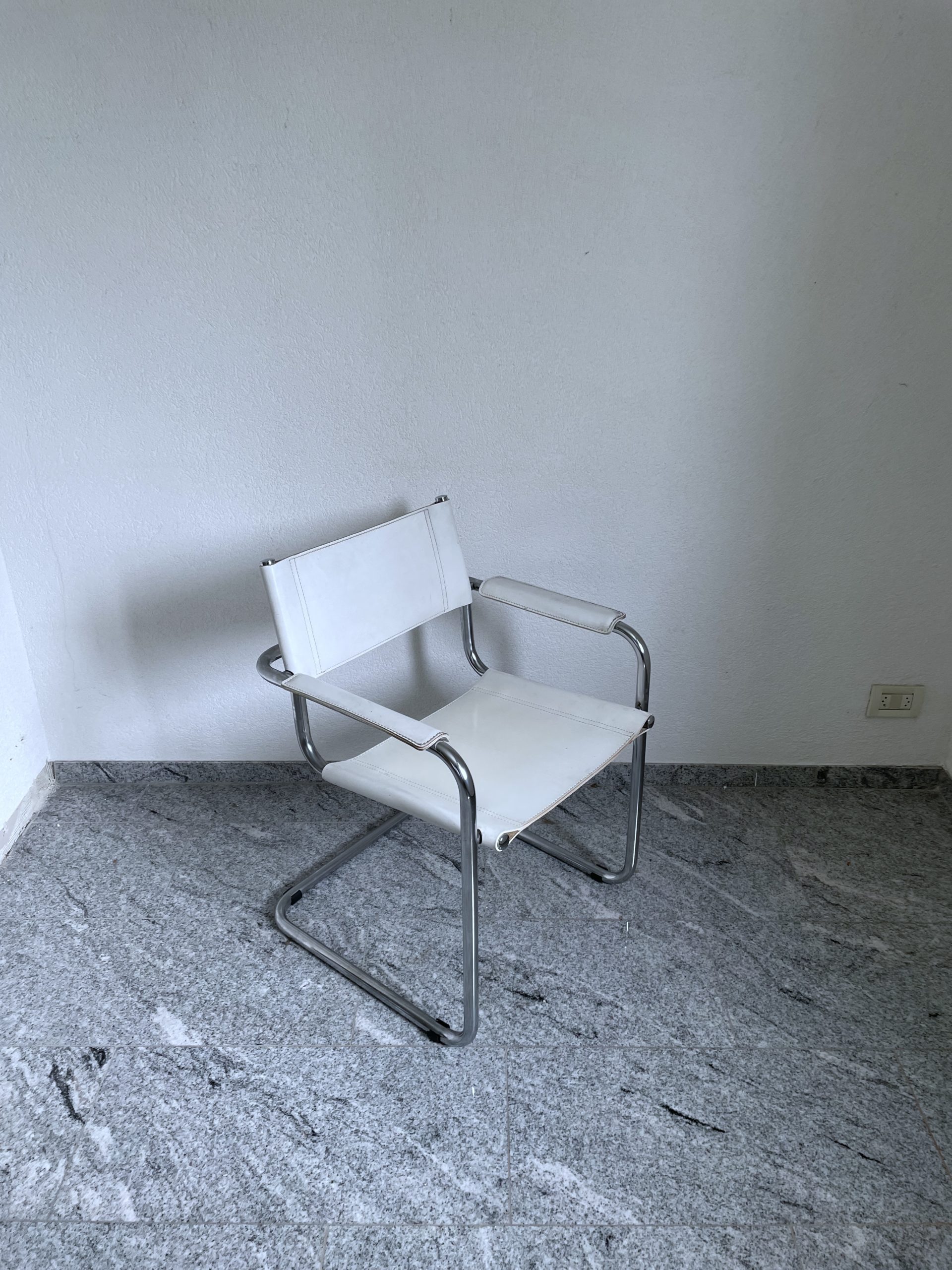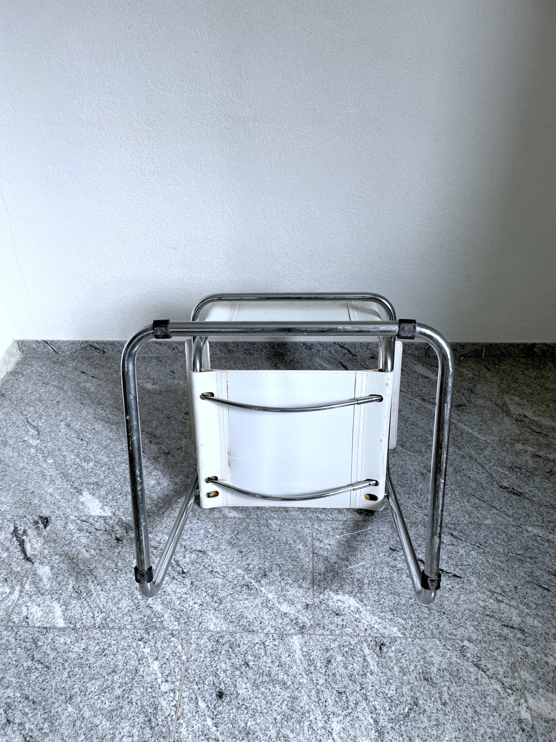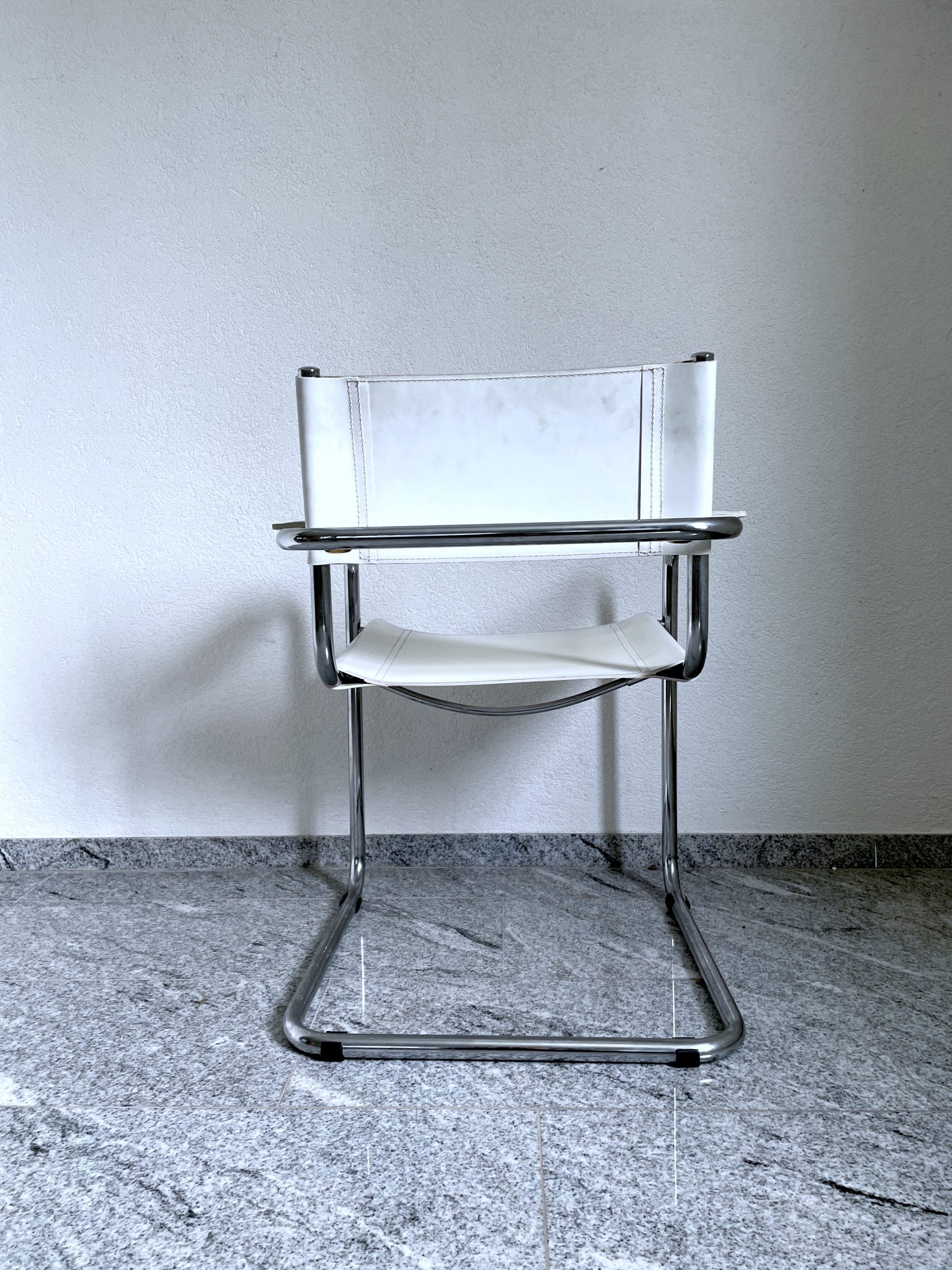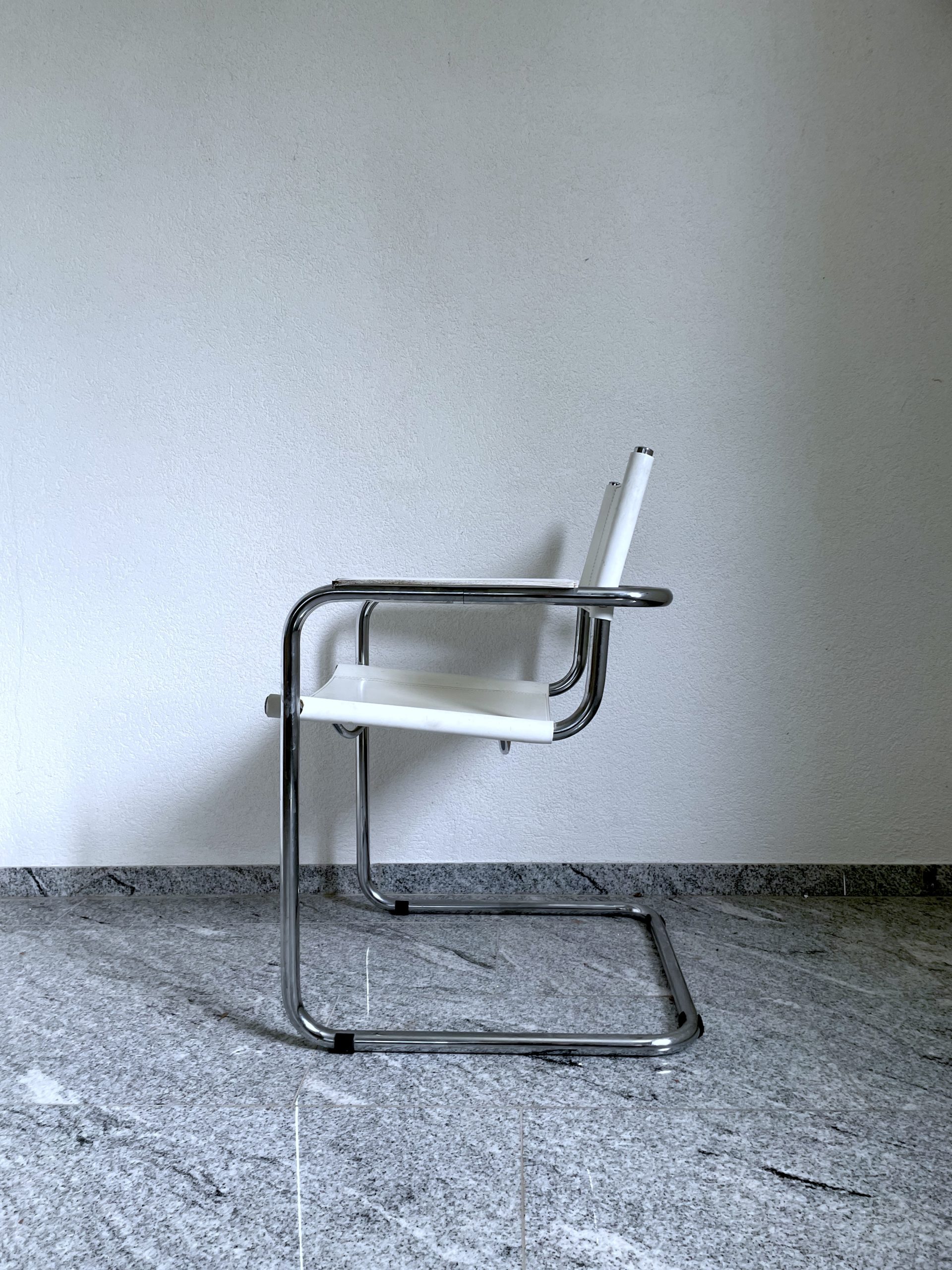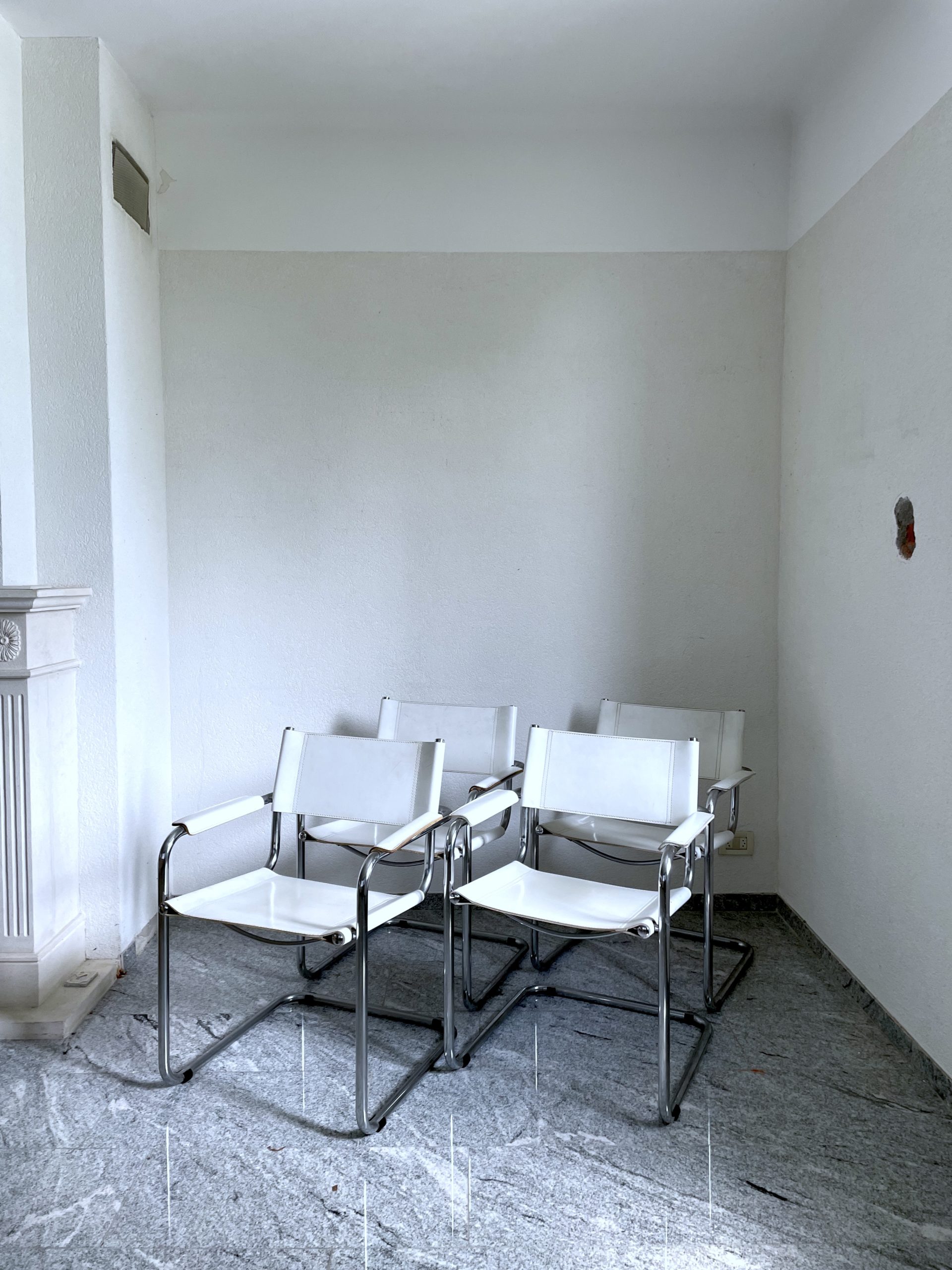 Lot de 4 chaises en acier chromé et cuir blanc