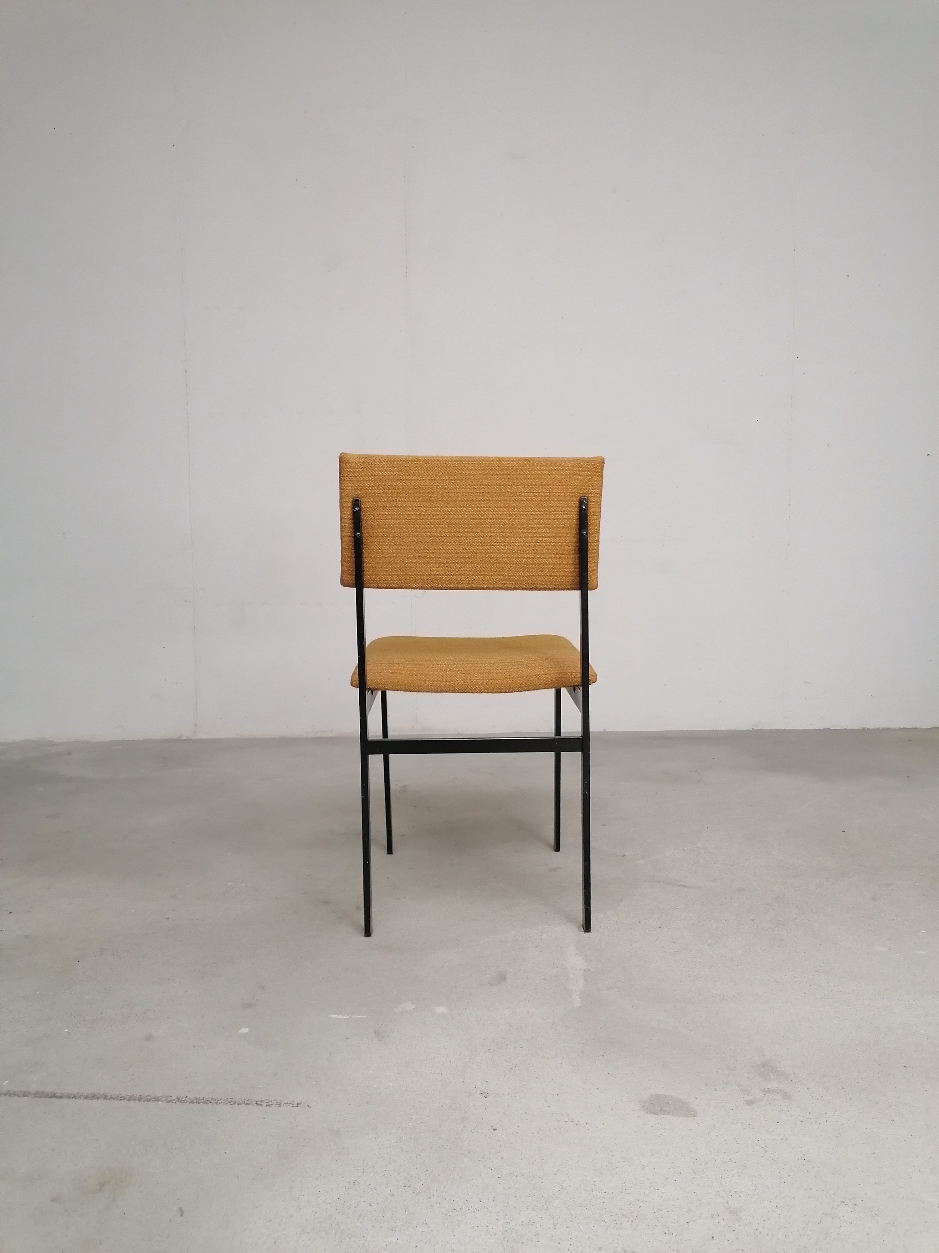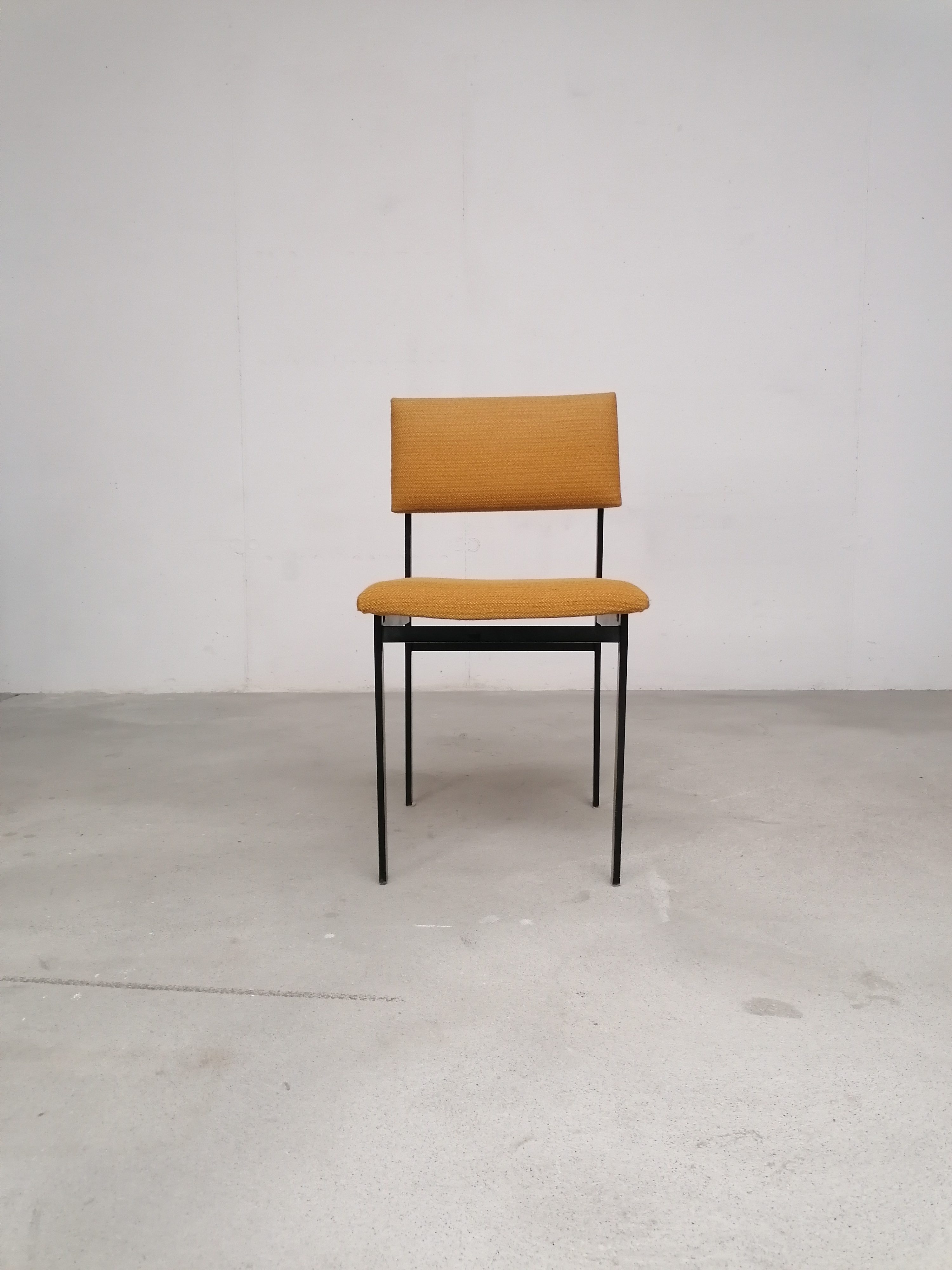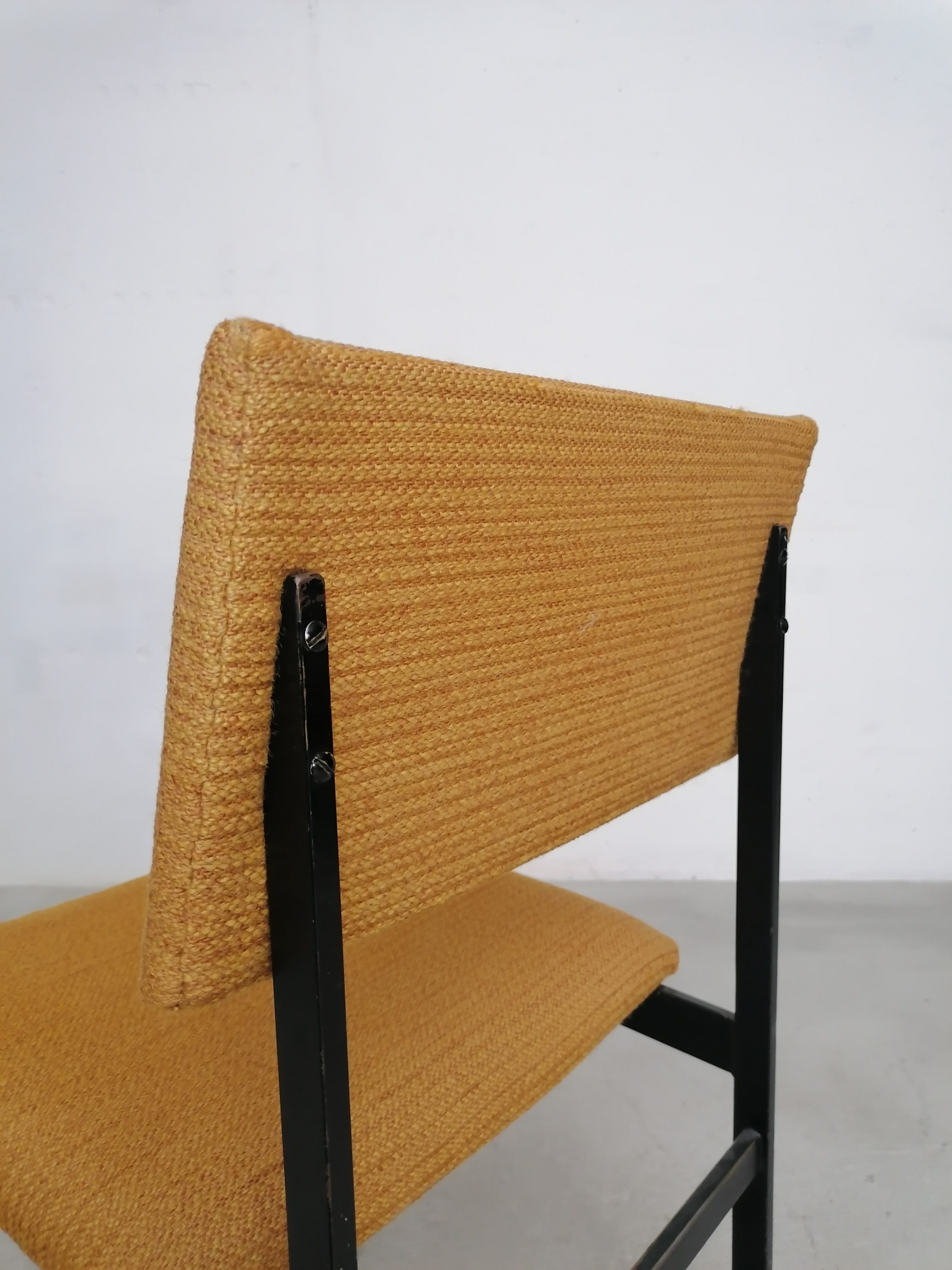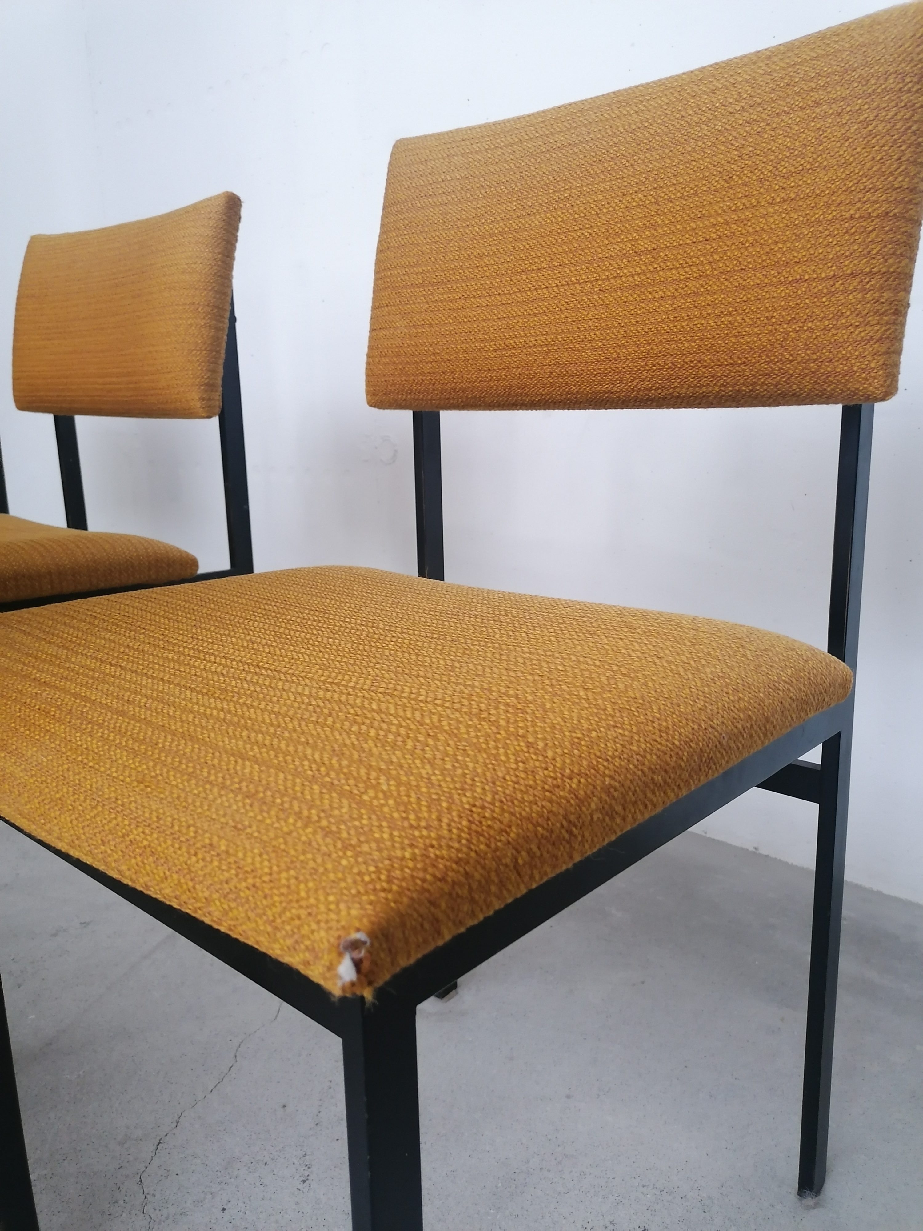 Lot de 6 chaises avec structure en métal et assise en mousse et tissu de couleur moutarde.