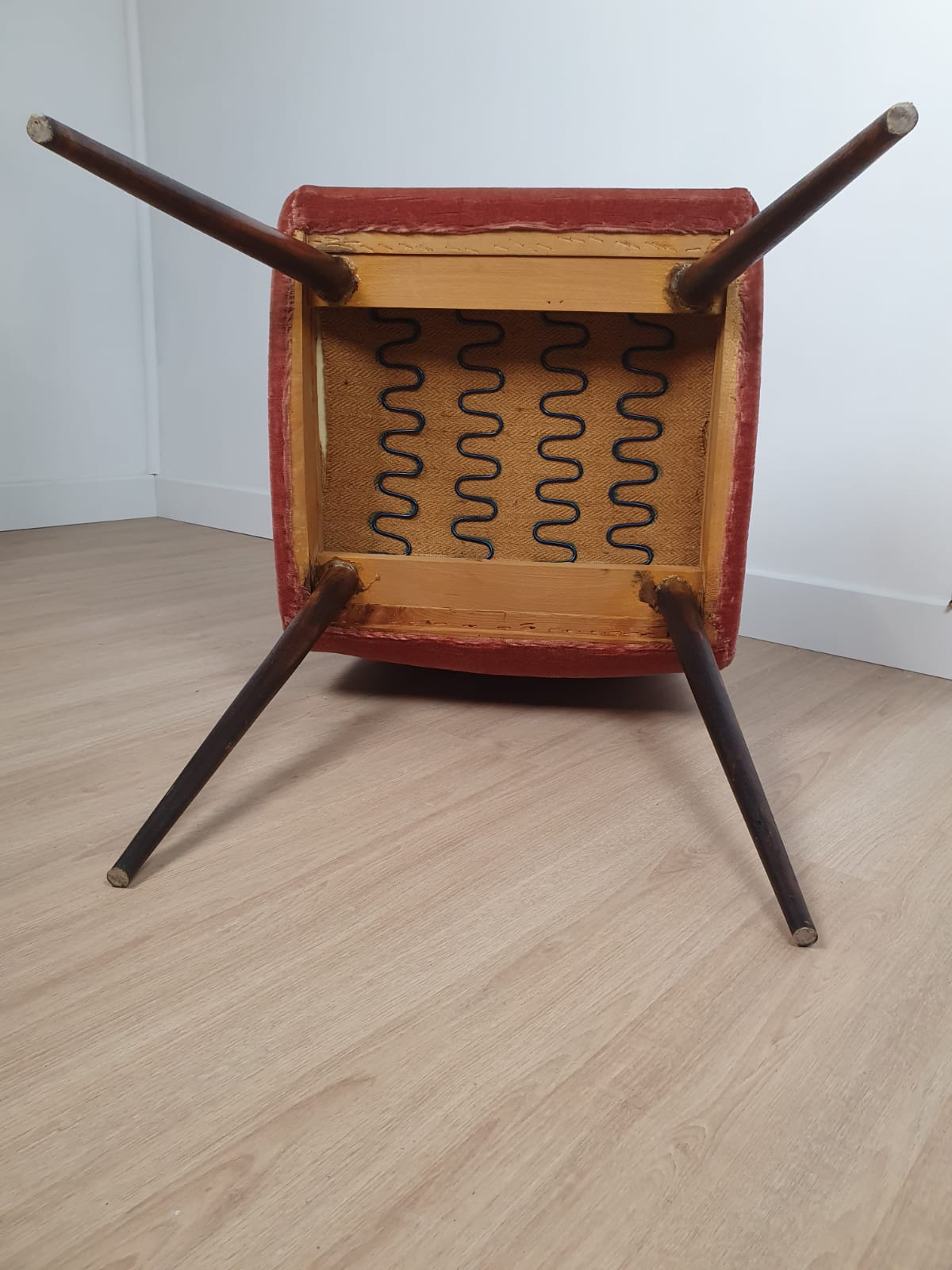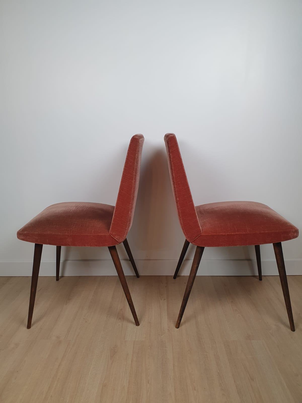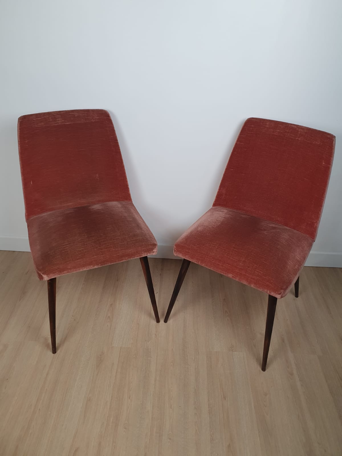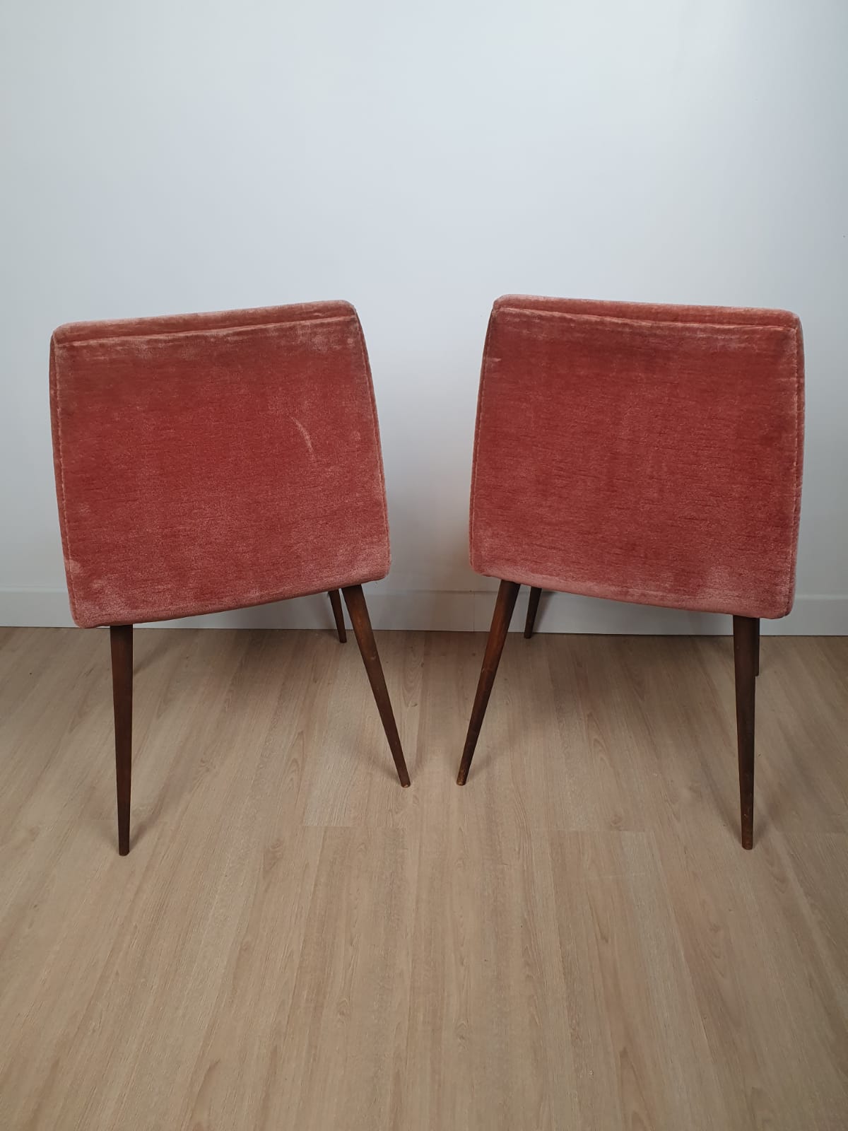 Produit venduPaire de chaises des années 60 en velours, couleur vieux rose.