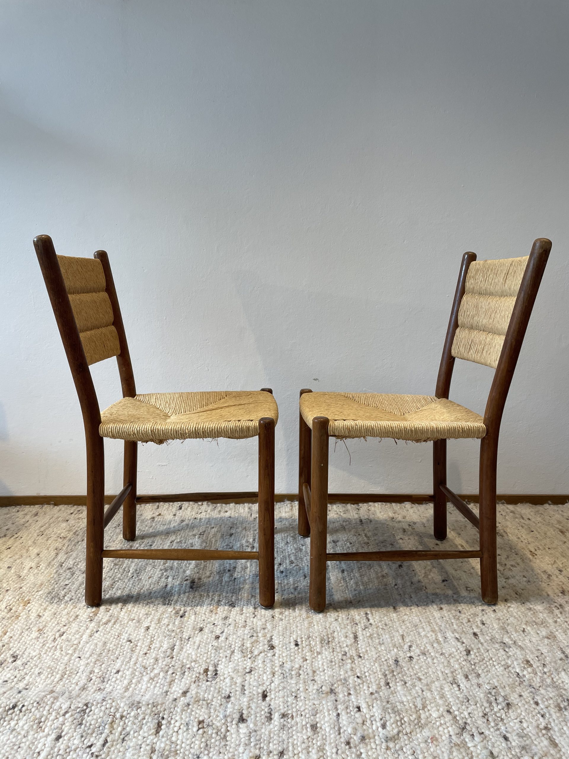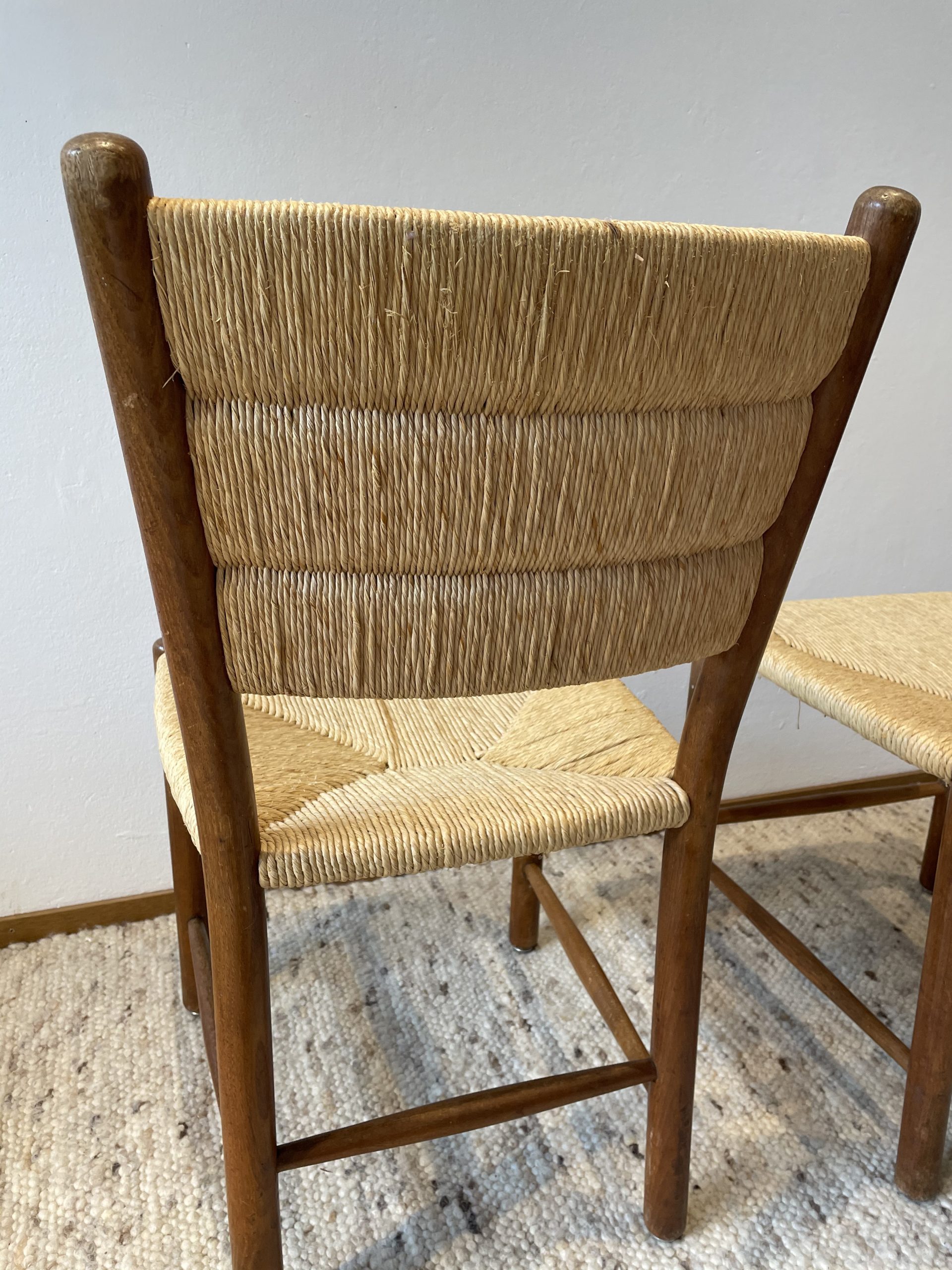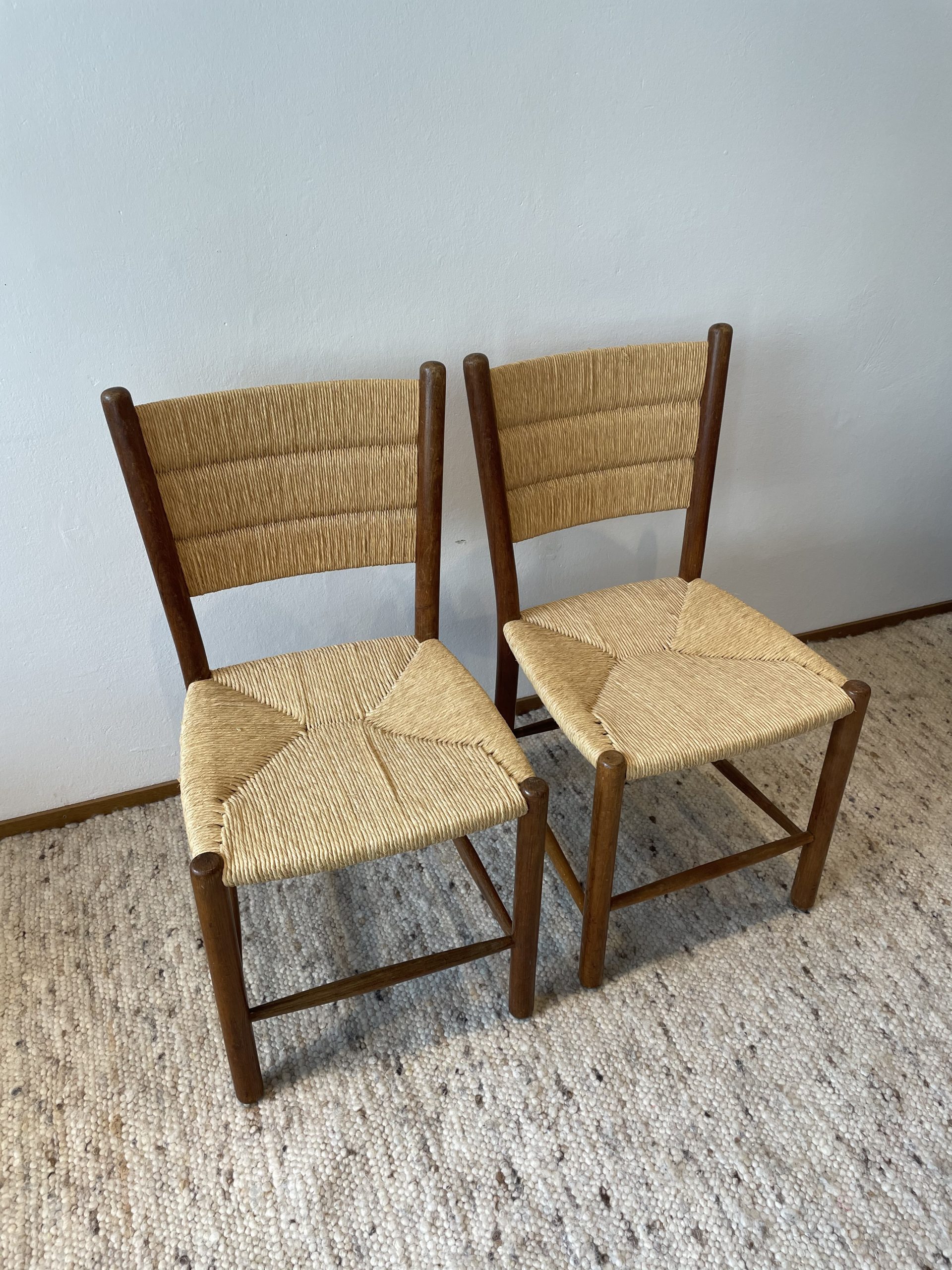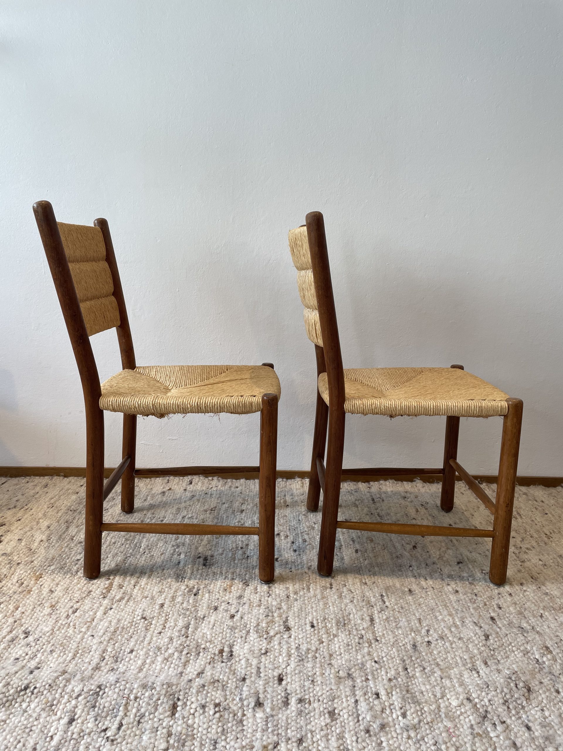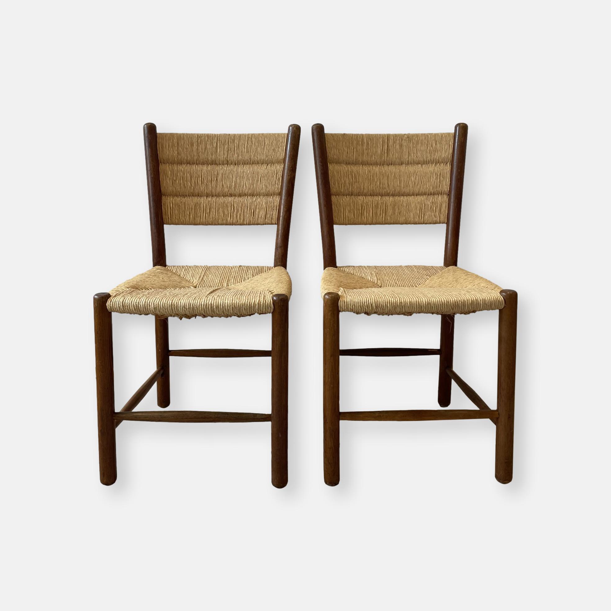Produit venduPaire de chaises en chêne et paille circa 1960.
