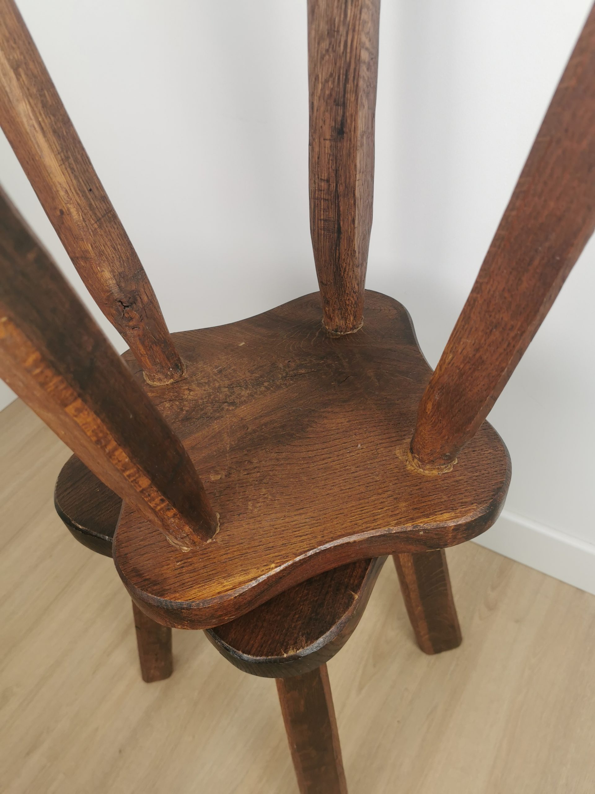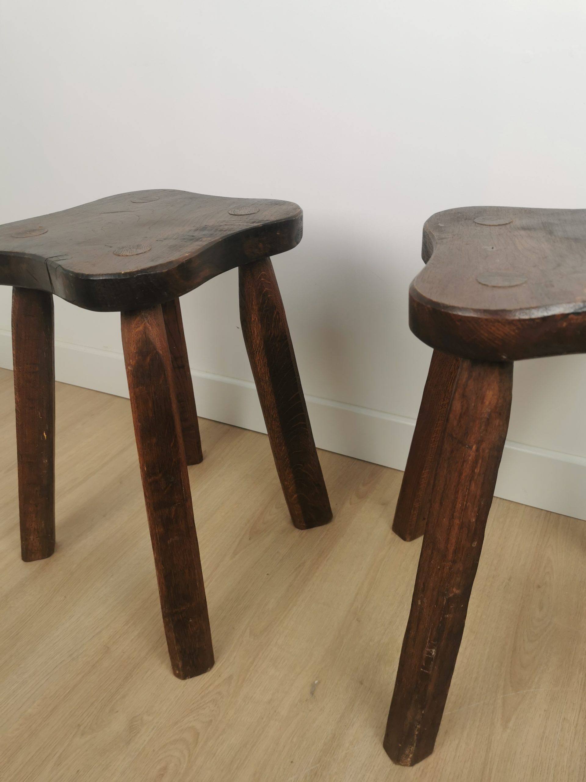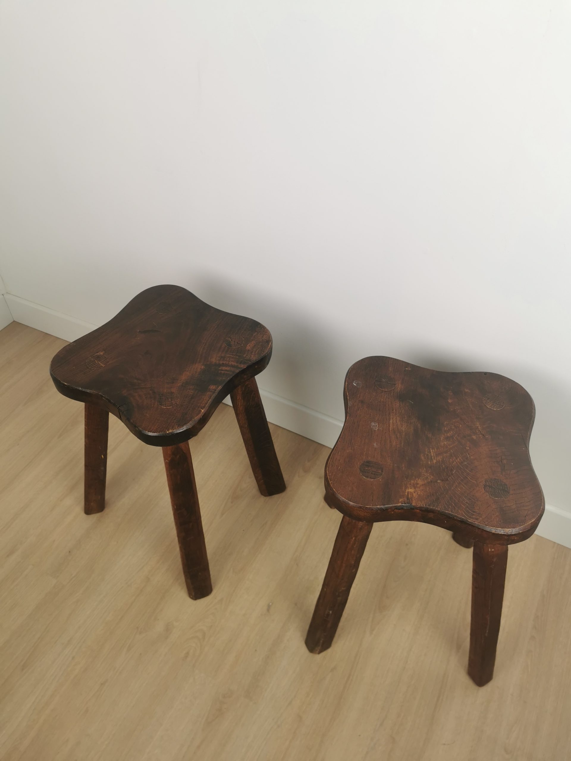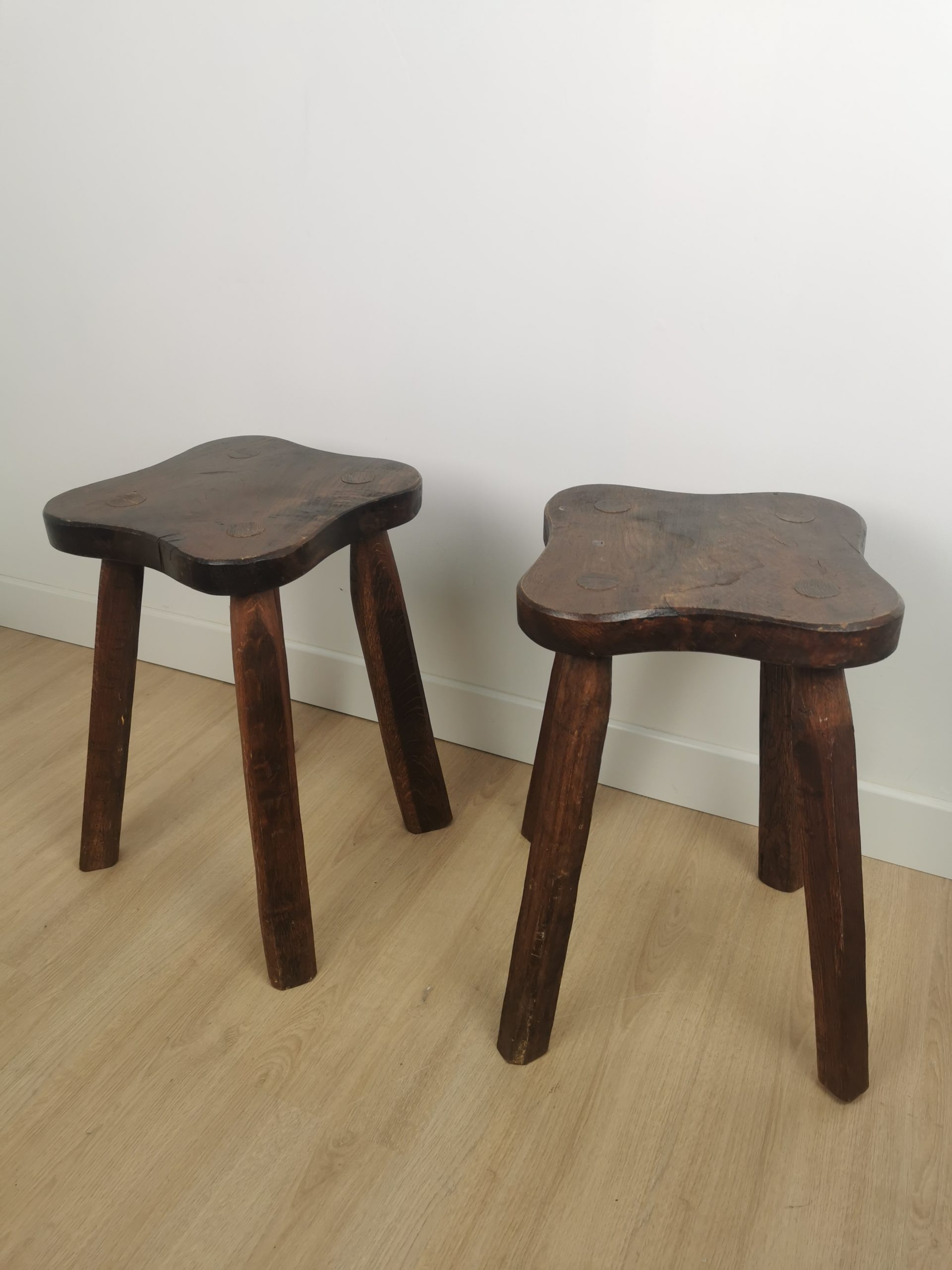 Produit venduPaire de tabourets anciens brutaliste en bois massif.