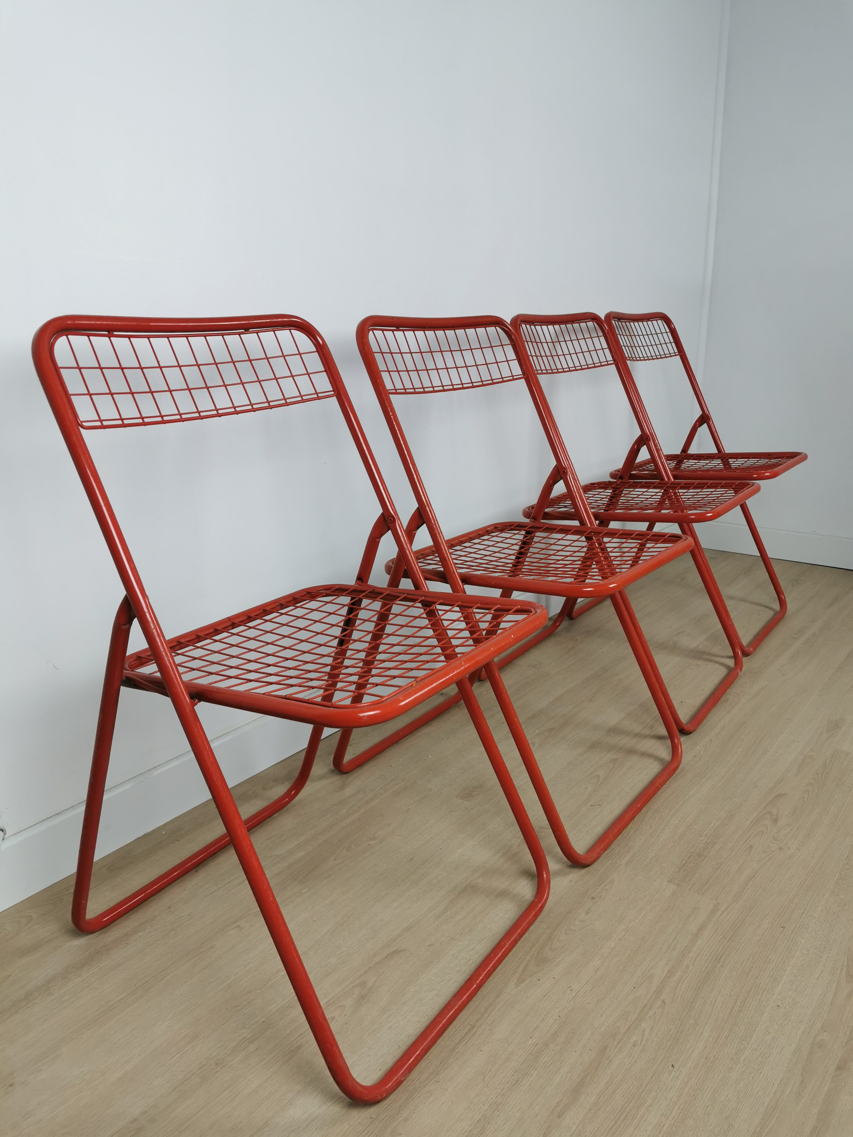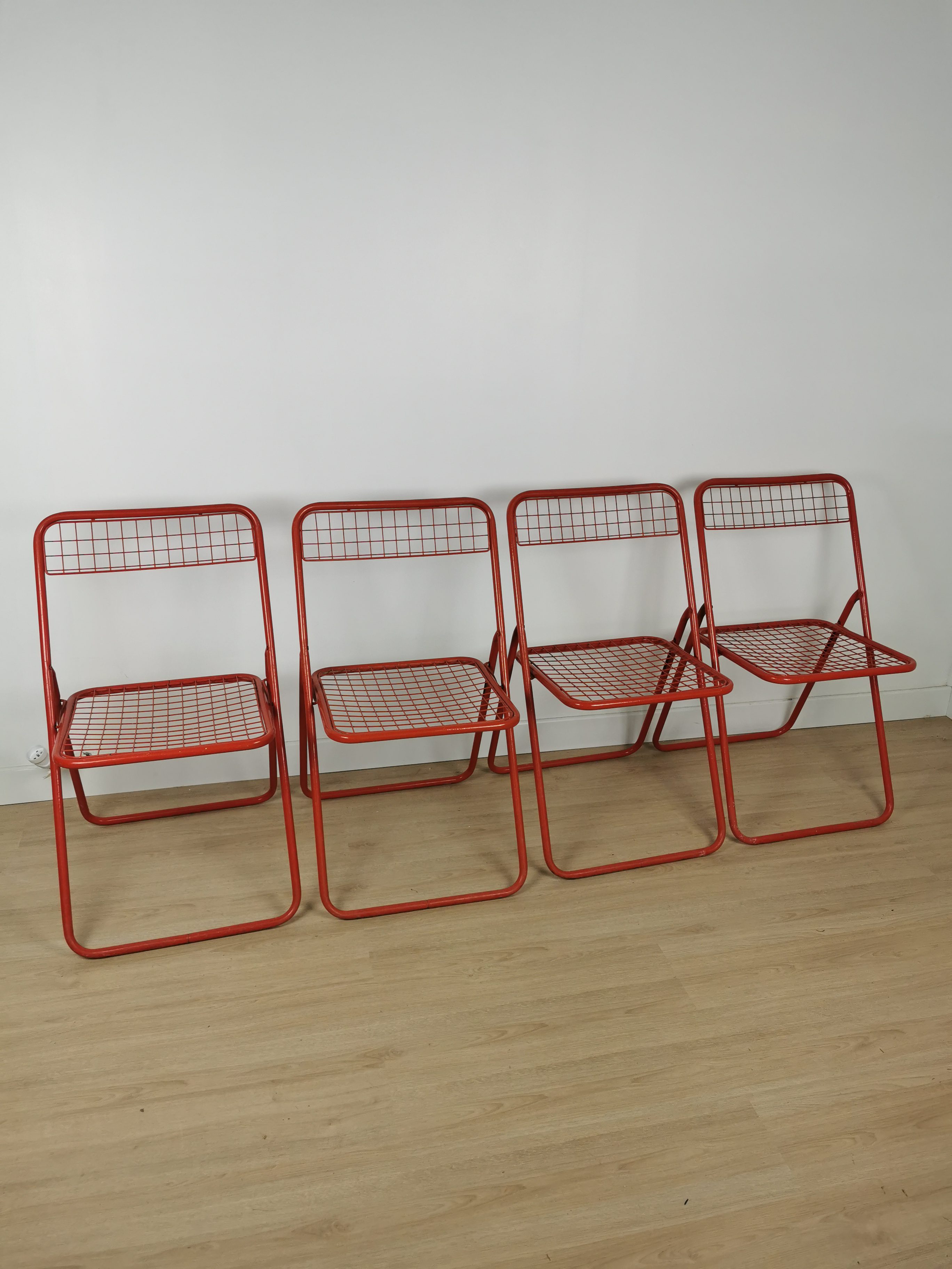 Produit venduSet de 4 chaises rouges modèle Ted Net conçues par Niels Gammelgaard dans les années 70 pour Ikea.