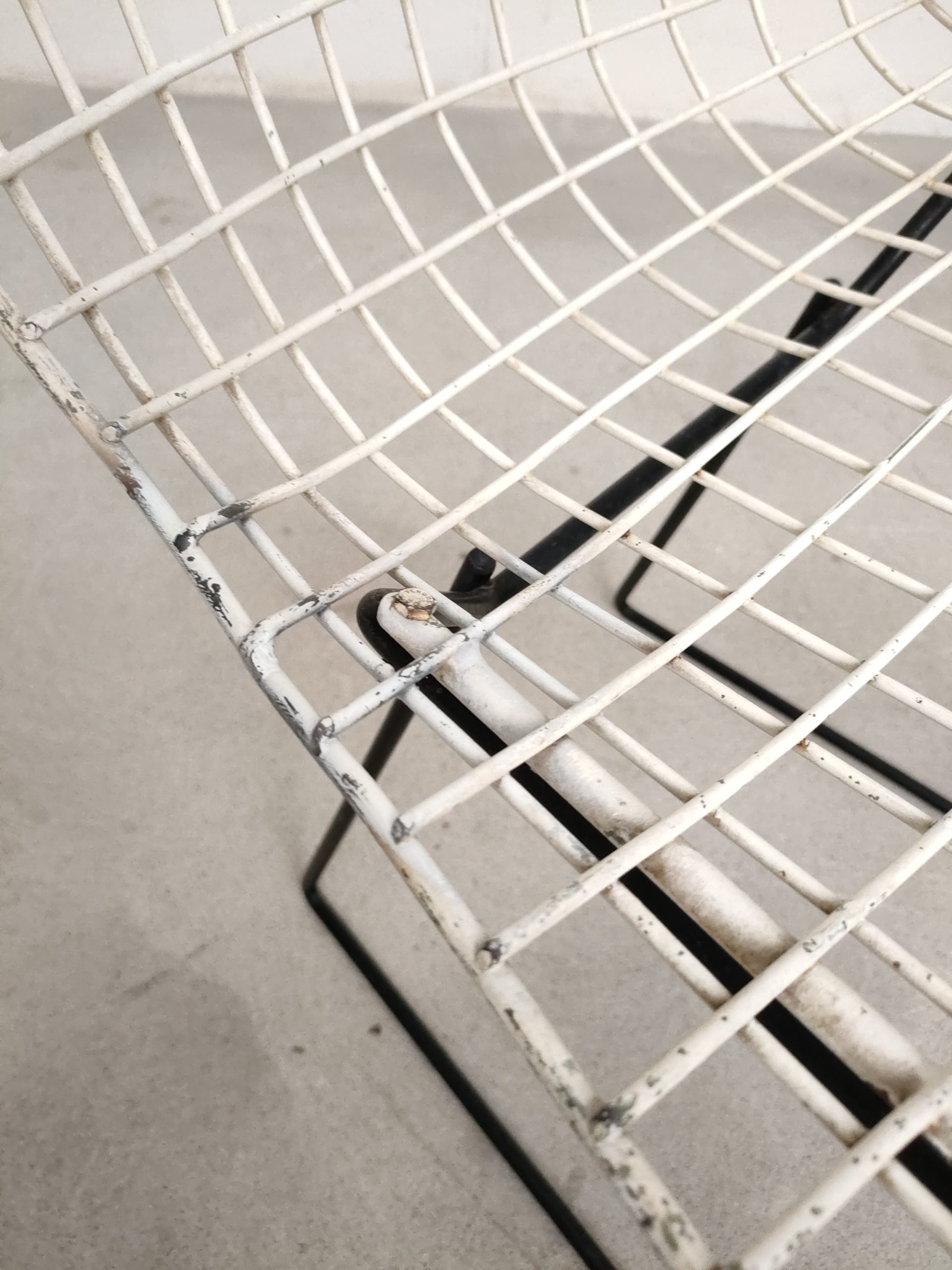 Produit venduChaise bicolore en tige d’acier, modèle Wire Chair conçu par le designer Harry Bertoia dans les années 50 pour le fabricant américain Knoll. Hauteur de l’assise: 44 cm.