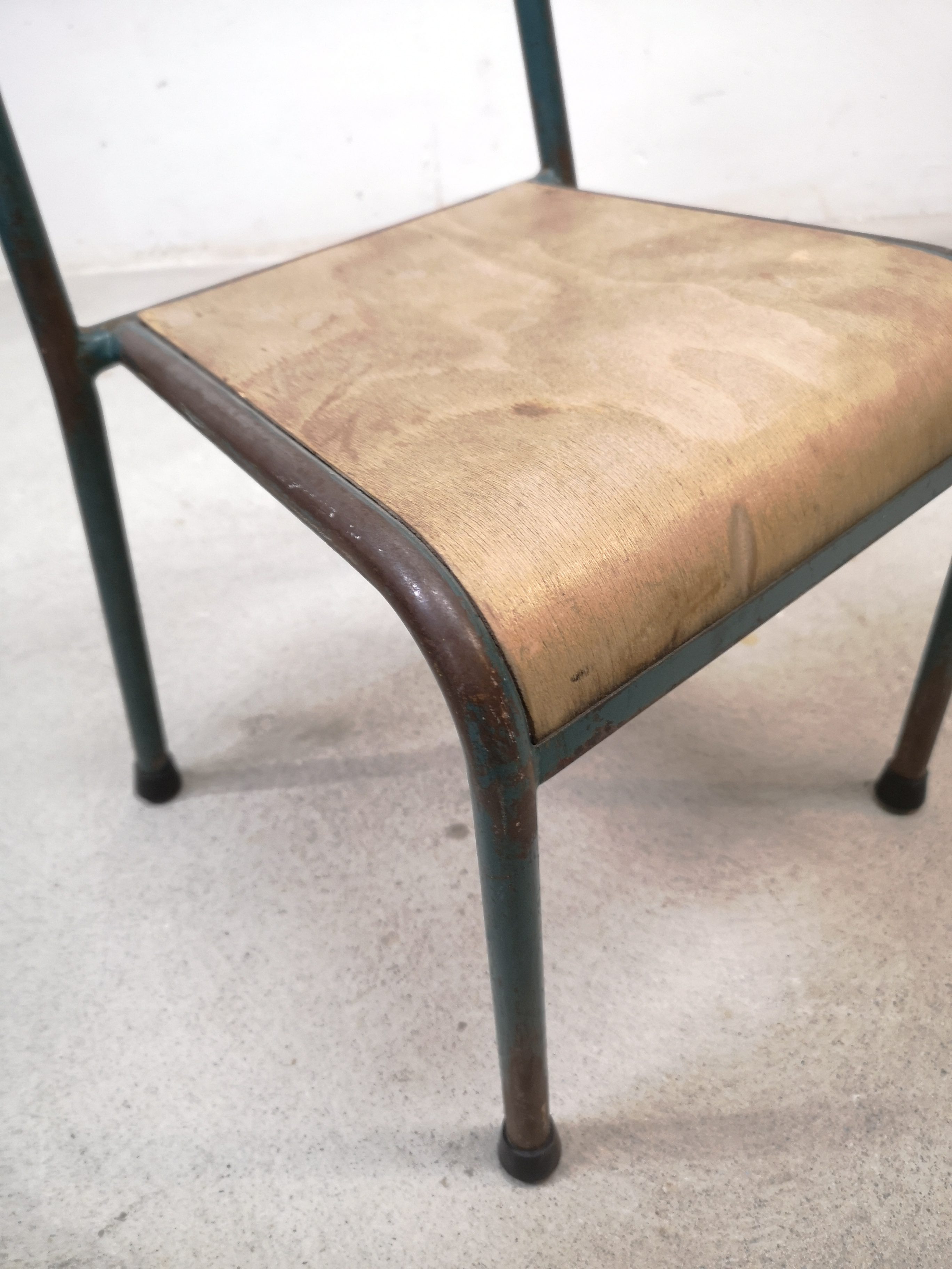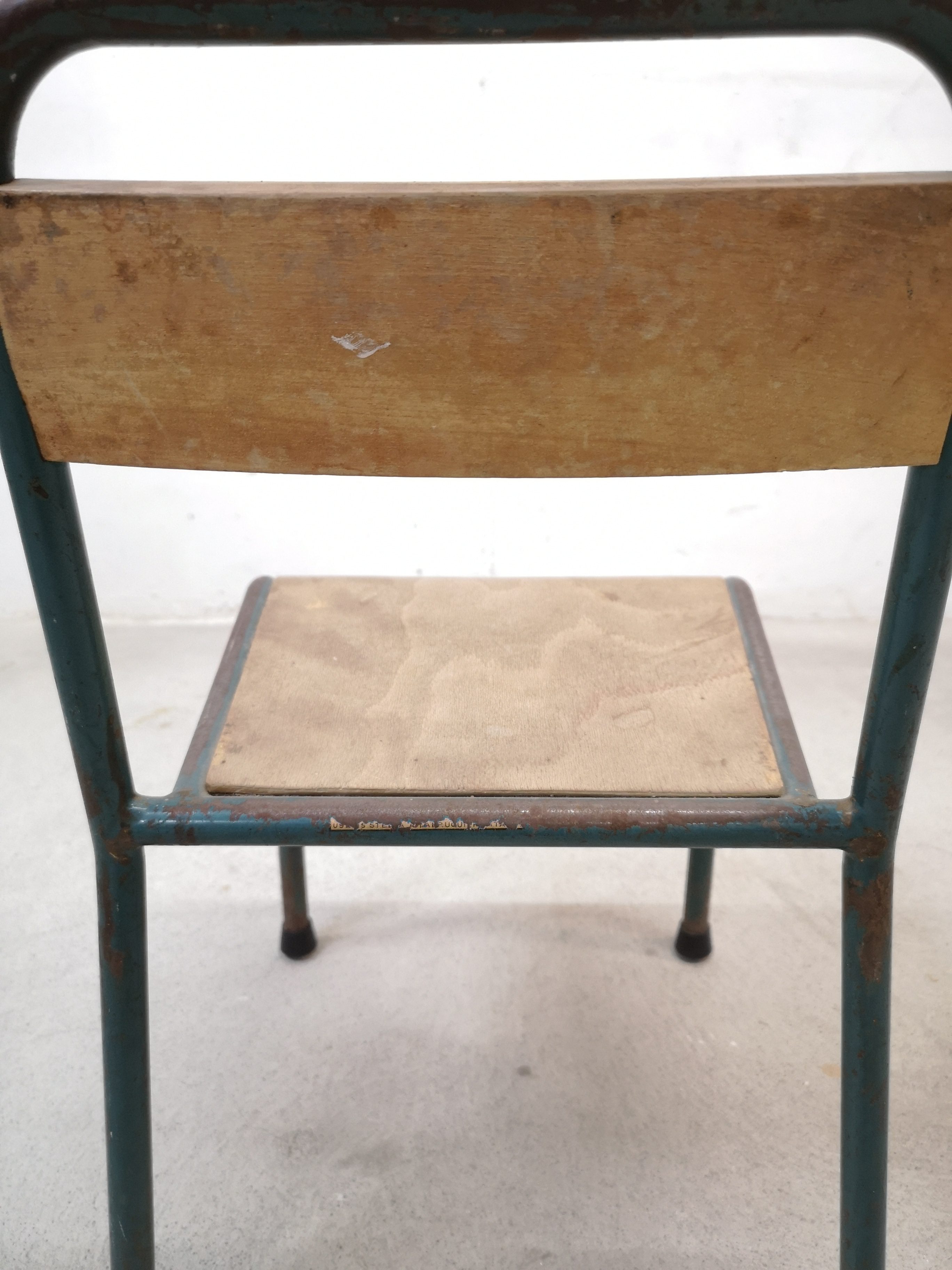 Produit venduRare chaise d’école pour enfant avec une superbe patine verte vintage.
